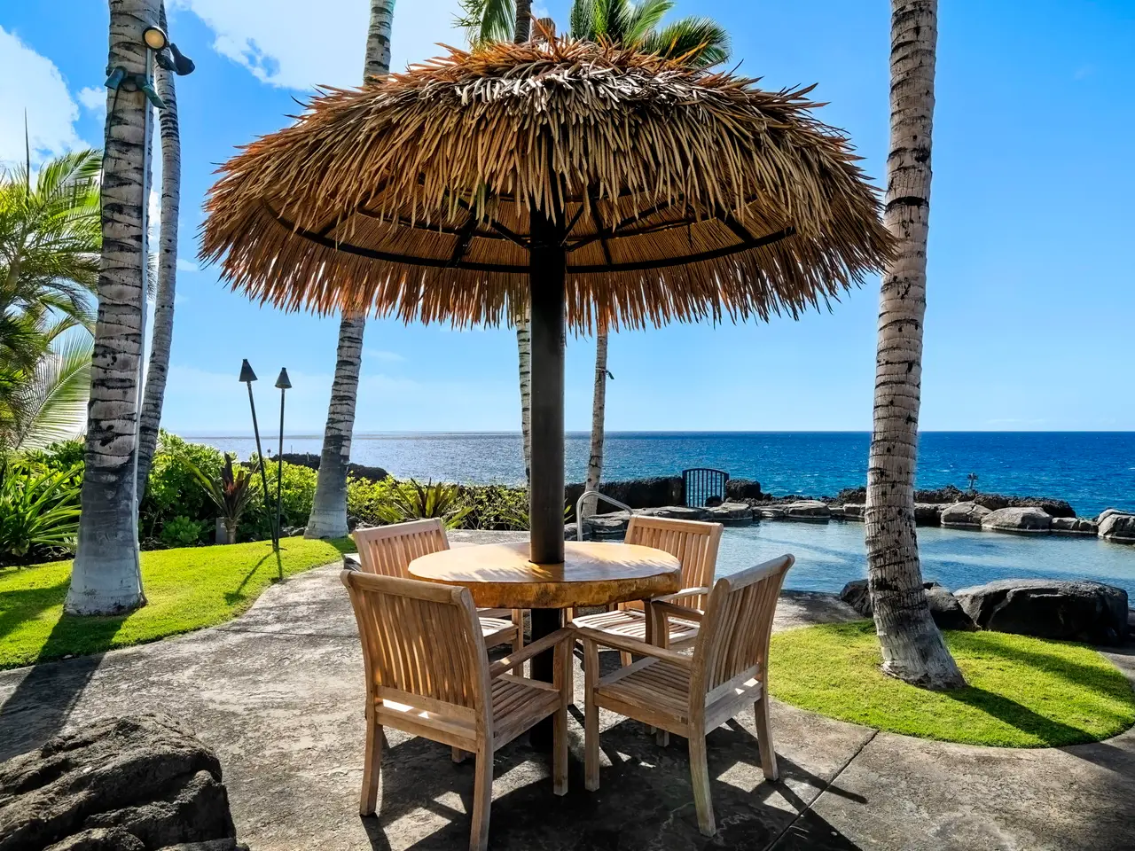 Nestled on the southern end of the legendary Mauna Lani Resort, One Ocean is a small private, gated community quite like no other. Imagine waking up to the breathtaking sight of Hawaiian lava landscapes, the lush “south” course, and the mesmerizing island waters. This is your chance to find your own private paradise on the Kohala Coast of the Big Island. One Ocean 19 is a dream come true, with everything you could ever want and more. From the moment you step inside, you’ll feel like you’ve found your paradise. Nothing was left to chance when this home was built. The pool, waterfalls, courtyard ponds, fire pits, and outdoor kitchen are all top-notch. The interior and exterior are covered in beautiful sapele wood ceilings, and the bathrooms and pool have custom mosaic tile. The stainless steel appliances are from the Thermador Professional Collection, and they all have home connect wifi. There are also built-in electric blinds in the living room and Emtek electronic wifi door mechanisms. Two separate solar water heating systems and four top-of-the-line Carrier A/C systems with six zones all use Carrier wifi are also included. If you’re looking for a home that truly wow’s you, you’ve found it. Located on the 4th hole of the famous Mauna Lani South course, the sunsets here are simply breathtaking. The pool and spa are amazing, and the outdoor kitchen has a Lynx grill and pizza oven. Don’t miss the hammock on the south side for a relaxing afternoon book or glass of wine. Entertaining here is a breeze. This home is a true gem with a 35-panel solar system that generates 14.35 kilowatts of power, powered by a 6-Enphase battery system. It also has one level two Enphase EV charging stations in the garage, LP gas tiki torches, a fire table, and fire pits. Plus, there’s a custom-designed electronic Ring-controlled driveway gate. Don’t miss out on this incredible chance to make this dream home yours at One Ocean.