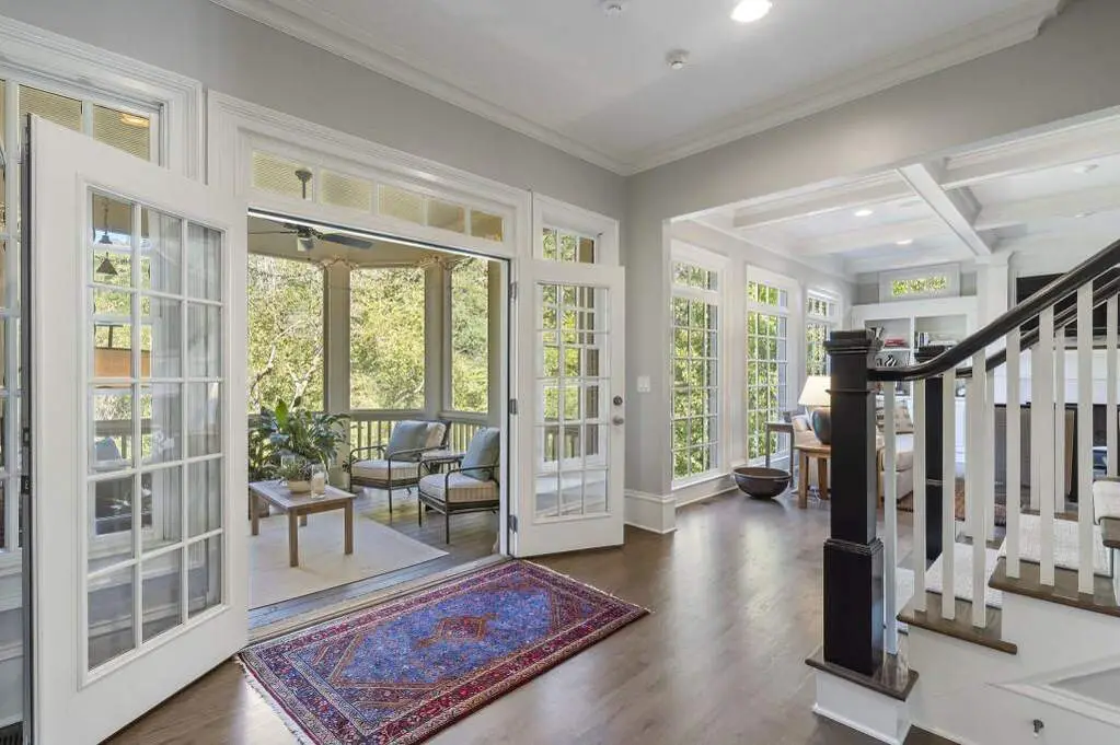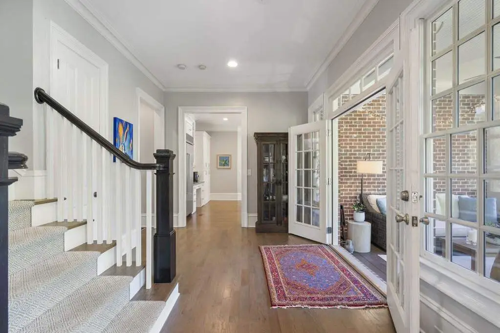 This exceptional Monte Hewett home is perfectly situated on a quiet cul-de-sac in the heart of North Buckhead, and offers a rare combination of architectural sophistication, timeless craftsmanship, and modern livability. Surrounded by beautifully landscaped grounds, this four-level residence is designed for both elegant entertaining and comfortable everyday living. A gracious front porch with gas lanterns welcomes guests into a light-filled interior with 10-foot ceilings on both the main and terrace levels. The stunning gourmet kitchen features walls of windows, quartz countertops, a large center island, new premium appliances, and a breakfast area with custom built-in banquette that opens to an outdoor dining area and kitchen, creating seamless indoor-outdoor flow. The kitchen flows into the keeping room with fireplace, the perfect spot for relaxed gatherings. The spacious family room showcases coffered ceilings, a fireplace, and custom built-ins, while the screened porch overlooks the manicured backyard and a peaceful nature preserve in the distance. A butler's pantry with ice maker connects to the formal dining room, easily accommodating twelve guests. A front living room offers flexible use as a music, game, or Mah Jongg room. Completing the main level are a mudroom with abundant storage and two stylish powder baths. Upstairs, the luxurious primary suite features a fireplace, private sitting room, and a spa-like bath with double vanities, soaking tub, separate shower, and an expansive walk-in closet. Three spacious secondary bedrooms, two full baths, and a landing area with a built-in reading nook complete this level. The fourth floor offers exceptional flexibility-ideal as a media room, home office, craft room, or play space. The terrace level is a true extension of the home, featuring a daylight media/family room with custom cabinetry, temperature-controlled wine cellar, game room, exercise room (optional 6th bedroom), guest suite, 1.5 baths, office, and French doors.