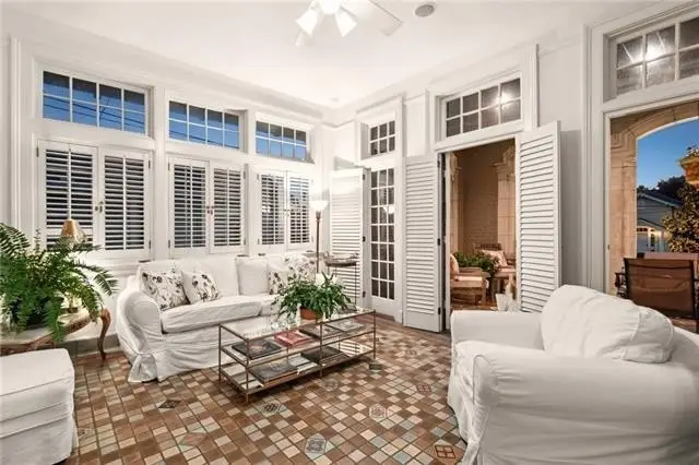 Spectacular Uptown Compound with Dream Guest House! Don't miss this rare opportunity to own a truly multi-generational home on a private, walled and gated compound in historic Uptown, New Orleans. Located on an impressive double corner lot, it includes this stately Mediterranean Revival Primary Residence, Guest House, Pool, and 2-car garage. A fully furnished 2 bedroom and 1 bath ground-floor apartment with private entrance (and separate utilities) is great for guests, live-in assistants, or extra income. The residence has 6 spacious bedrooms and 5 fully renovated stone/tile bathrooms. Original architectural elements, such as oak inlaid wood floors, mahogany inlaid doors, custom-milled inset kitchen cabinets, and wood-paneled Tudor-style library, have been maintained and blend seamlessly with the modern renovated amenities. Each of the upstairs rooms is light-filled, has vista views and custom shutters. The whole-home sound system makes entertaining effortless. The ground floor areas are spacious and well designed with family comfort and convenience in mind. Two family-room options with French doors and full bath access make gatherings a breeze. But the ultimate indulgence for a large family, caretaker, or sports enthusiast is the mud room with an adjacent full walk-in shower!! Sportsmen, athletes, and moms alike can offload equipment, gear, or groceries, steps from the car, through a private side entrance into the Mudroom. The outdoor oasis is thoughtfully landscaped with livability and convenience in mind. A grass side yard makes a wonderful dog-run, garden, or potential putting green! A covered breezeway connects the house to the outdoor bar/kitchen and guest house. The veranda overlooking the pool has alfresco dining for 20+, or dine inside and enjoy a movie night on your 75-inch TV. A private entrance from Valmont and an attached two-car garage give the guest house great optionality. Don't miss this rare opportunity!
