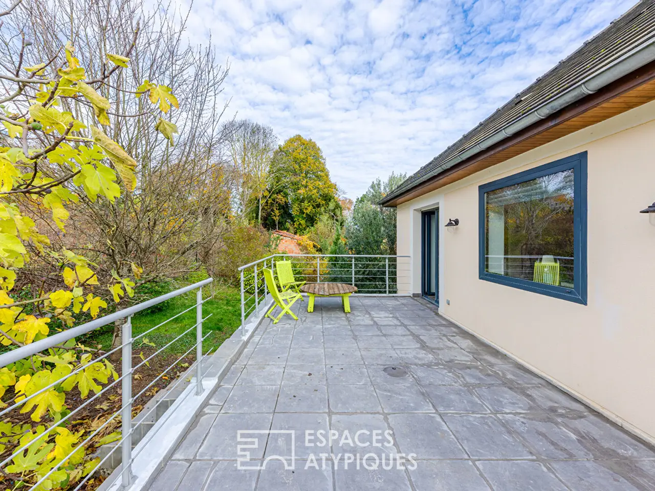 Located in Mareil-Marly, in a quiet residential area, this immaculate contemporary house, built in 2010 on a 530sqm plot, impresses with its spaciousness and decidedly family-friendly design.The entrance opens onto a spectacular 72sqm living area. This vast living and dining room, bathed in light thanks to large windows, is arranged around a fully equipped open-plan kitchen. The entire space extends seamlessly onto a magnificent south-facing terrace of over 100sqm, landscaped and completely private, creating an exceptional indoor-outdoor living space.The first floor is dedicated to relaxation. It comprises a large 18sqm master suite with its own shower room, opening onto a second 32sqm terrace.The children's section of the floor consists of two further bedrooms, designed as veritable private 'small apartments.' Each bedroom has its own shower room and a mezzanine, ideal for an office, playroom, or, as is currently the case, a gym. One of these bedrooms also has direct access to the upstairs terrace. A full 80sqm basement with a sauna and wellness area, three parking spaces, and a garden shed complete the amenities of this property. Comfort is ensured by natural gas underfloor heating, providing gentle and even warmth.Ideally located, the house combines absolute tranquility with excellent transport links: the bus to the center of Saint-Germain-en-Laye (RER A train station 8 minutes away) is right outside the house, and the T13 tram station (Gare de Mareil-Marly) is less than a 5-minute walk away.ENERGY RATING: D / CLIMATE RATING: D Average energy prices indexed to the years 2021, 2022, 2023 (including subscriptions): EUR2090 and EUR2880 Contact: Julie 33 7 77 84 74 57 RSAC Versailles 894 542 950REF. 13618Additional information* 5 rooms* 3 bedrooms* 3 shower rooms* Outdoor space : 530 SQM* Parking : 3 parking spaces* Property tax : 2 438 €Energy Performance CertificatePrimary energy consumptiond : 147 kWh/m2.yearHigh performance housing*A*B*C*147kWh/m2.year32*kg CO2/m2.yearD*E*F*GExtremely poor housing performance* Of which greenhouse gas emissionsd : 32 kg CO2/m2.yearLow CO2 emissions*A*B*C*32kg CO2/m2.yearD*E*F*GVery high CO2 emissionsEstimated average annual energy costs for standard use, indexed to specific years 2021, 2022, 2023 : between 2090 € and 2880 € Subscription IncludedAgency feesThe fees include VAT and are payable by the vendorMediatorMediation Franchise-Consommateurswww.mediation-franchise.com29 Boulevard de Courcelles 75008 ParisInformation on the risks to which this property is exposed is available on the Geohazards website : www.georisques.gouv.fr