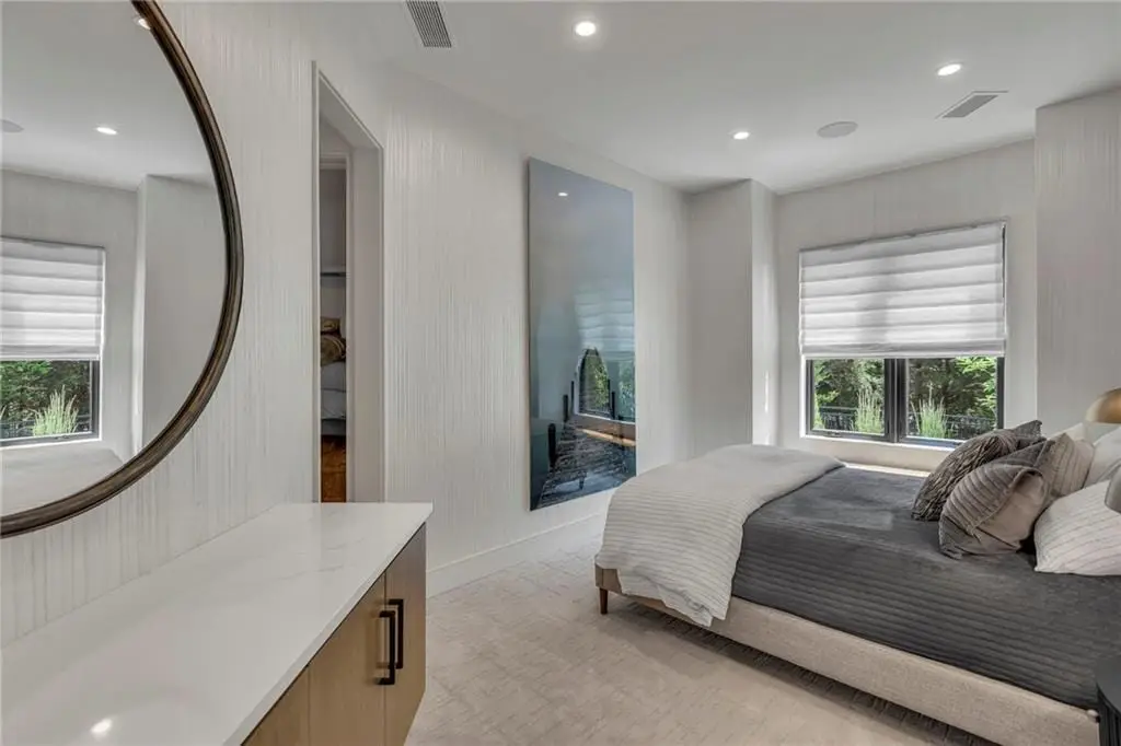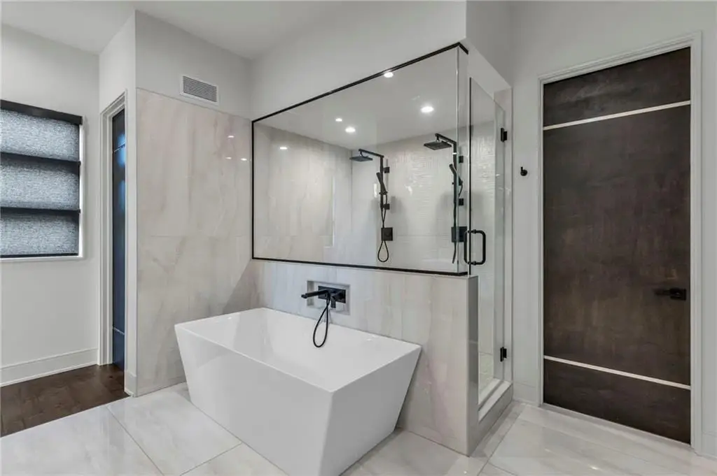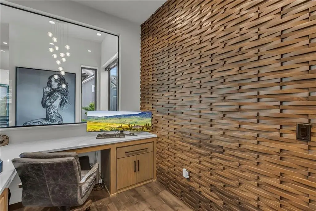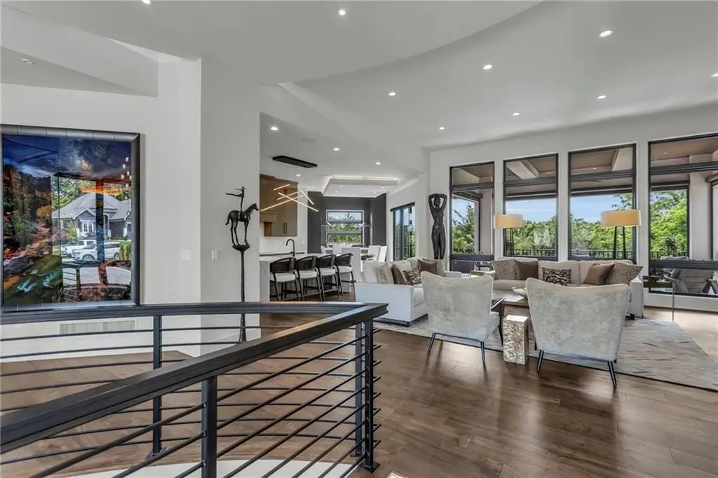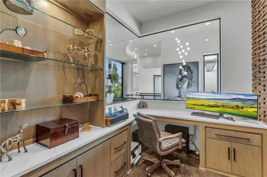 CONTEMPORARY AND LUXURY describes this Artisan designed home built by Casa Bella! A true masterpiece bringing in amazing architecture while touching all your senses! The 2 story water fall greets you at the entry along w/ dramatic ceiling, lighted walkway, leading to the great room w/ marble fireplace surround, back lit quartzite, floor to ceiling windows. The treed back drop is inviting & covered deck has new automatic screens. The Gourmet Kitchen has Carrera Marble island w/ waterfall edge, Frigidaire Refrigerator / Freezer, Cafe Induction Stove Top, Bosch Dishwasher, Cafe oven, Advantium microwace along w/ 2nd oven in the back pantry. Grill deck is a bonus feature right off the pantry. Perfectly positioned study w/ glass panels to bring in the light but nice and quiet for privacy. The Spa-like primary bath has marble floors, double headed shower w/ glass surround, soaking tub, large double vanity w/ plenty of cabinets. Primary bedroom includes built in headboard, king bed & side tables AND a beautiful view to the covered deck & backyard w/ fireplace for those chilly evenings. As you walk down the floating steel staircase w/ solid wood stairs, prepare to be WOW'd as the lower level is an Entertainer's Dream. Back wet bar w/ beverage frig & refrigerator drawer & ice/freezer drawer. The quartzite counter lit island is in perfect position for wine tastings next to the wine feature wall. The 3rd fireplace is the perfect conversation area while the media space is ample and comfortable. You can walk right out to the covered patio & enjoy the fire pit, lush fenced backyard and privacy. 3 bedrooms w/ 2 1/2 baths on the LL. The home gym is amazing space with storage tucked away. Pet Lovers will enjoy the Dog House. 8' deep chocolate modern interior solid wood doors w/ metal inlays, paved stone driveway, Fire & Water feature front and back, epoxy'd garage floor, remote blinds on front entry & sliding back door!