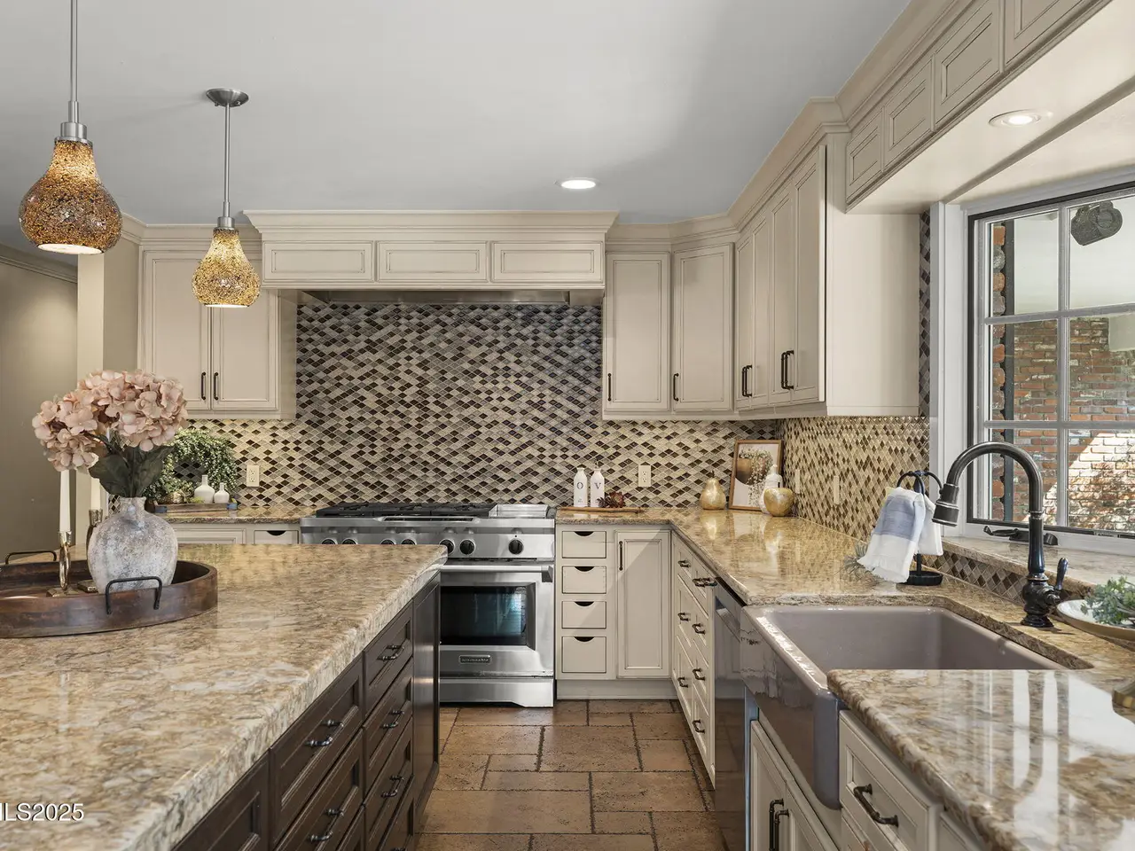 • Oversized granite island in gourmet kitchen