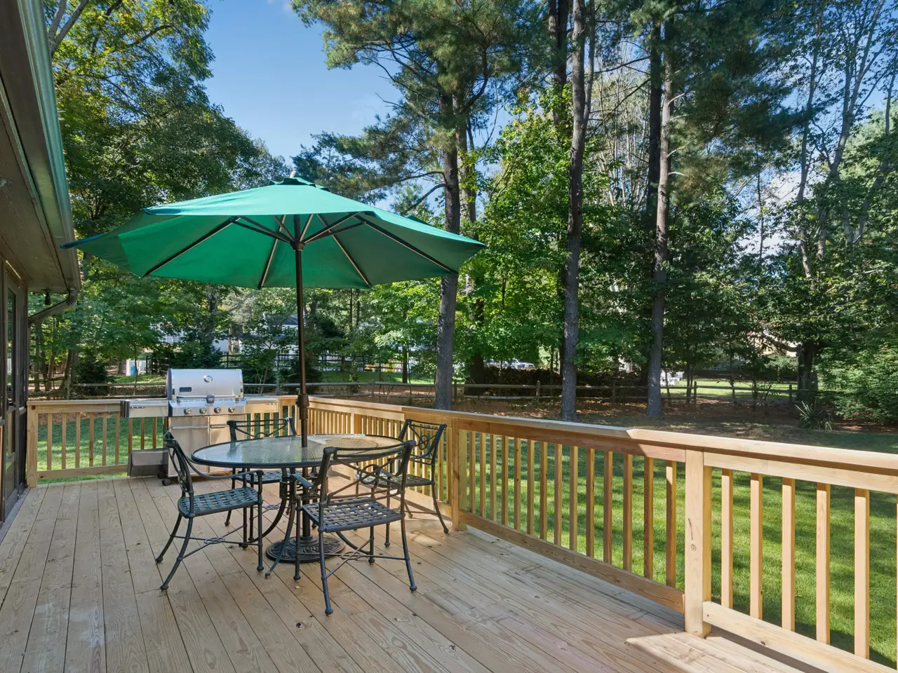 Expansive deck overlooking pond
