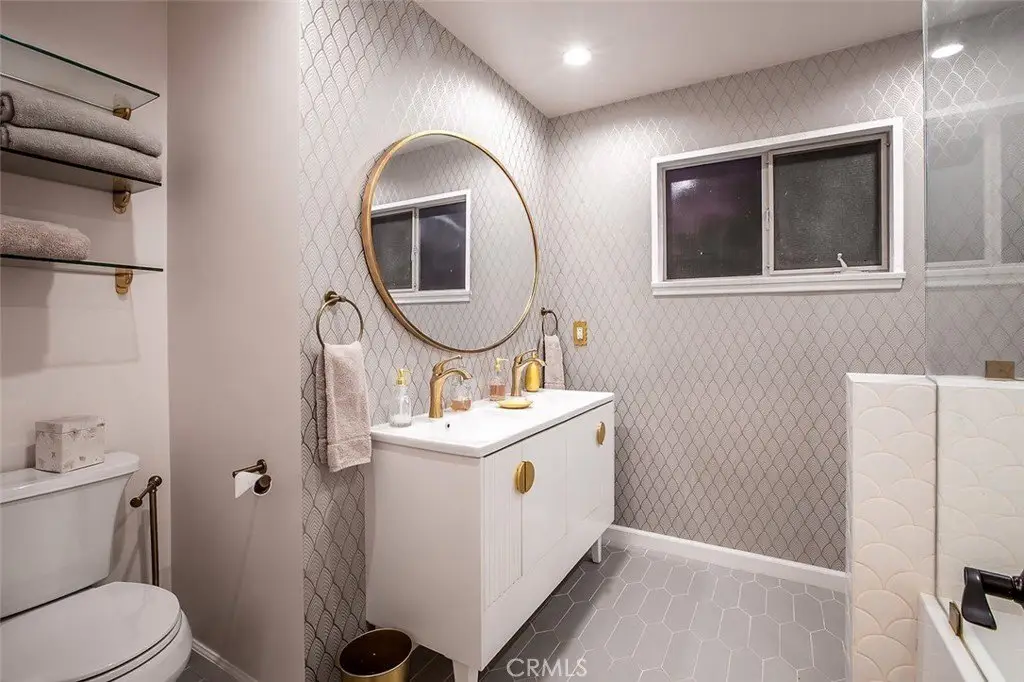 Welcome to 5938 Aldea Avenue, a stylishly updated residence that blends modern comfort with an effortless California lifestyle. Situated in the highly desired Encino Park neighborhood, this three-bedroom home offers a beautifully curated interior, thoughtful updates, and an inviting outdoor setting ideal for relaxation and entertaining. Natural light fills the open-concept living space, where refinished hardwood floors, smooth ceilings, and French doors create a warm and seamless flow. A stunning floor-to-ceiling custom tile fireplace serves as a sophisticated focal point in the living room, complementing the home’s contemporary aesthetic. The remodeled kitchen is both refined and functional, featuring Silestone quartz countertops, designer tile backsplash, and custom white cabinetry, all opening to the dining area for easy hosting and daily convenience. Three well-appointed bedrooms provide comfort and flexibility, including one currently used as an office. The recently renovated bathroom combines clean modern lines with stylish finishes, including a seamless glass tub and shower, chic wallpaper accents, and a designer vanity. Step outside to the private backyard oasis surrounded by block walls. A sparkling swimmer’s pool, above-ground spa, and spacious concrete decking create an ideal setting for outdoor leisure and al fresco living. This home also features recent system updates, including a new HVAC condenser and ducting, updated composite roof, and a laundry area with newer washer and gas dryer. Perfectly positioned on a flat street close to parks, restaurants, shopping, and commuter routes, this home offers the best of comfort, style, and location.