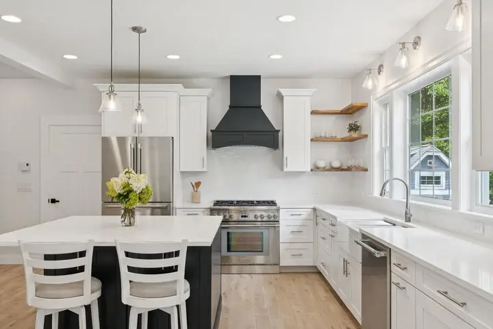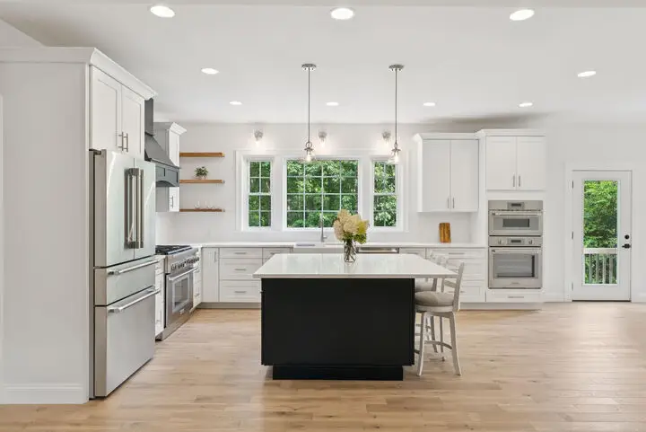 Welcome to 28 River Locks Road, where timeless craftsmanship meets modern comfort. This thoughtfully designed 4,128 sq ft home offers an inviting open-concept first floor with 9' ceilings, French oak hardwoods, and abundant natural light. The gourmet kitchen features quartz counters, an oversized navy island, white cabinetry, a farmhouse sink, walk-in pantry, and high-end appliances, seamlessly connecting to the dining and living areas. Enjoy a cozy electric fireplace (propane ready), a sun-filled sitting area with deck access, and a family room perfect for gatherings. Upstairs, 10' ceilings enhance the spacious feel. The luxurious primary suite boasts hidden walk-ins behind custom bookshelves, a spa-like bath with tiled shower, soaking tub, double quartz vanity, and a private water closet. A bonus room offers custom closet storage, laundry, and beautiful natural light. Two additional ensuite bedrooms, each with private baths, provide comfort for guests or family. The oversized heated/cooled garage offers painted finishes and storage, while the finished lower level expands your living space. Outdoor living shines with a deck, fire pit, and charming ''she shed'' with shiplap, cathedral ceilings, and its own deck. Nestled in a serene setting yet close to town, this is a home to be lived in and loved.