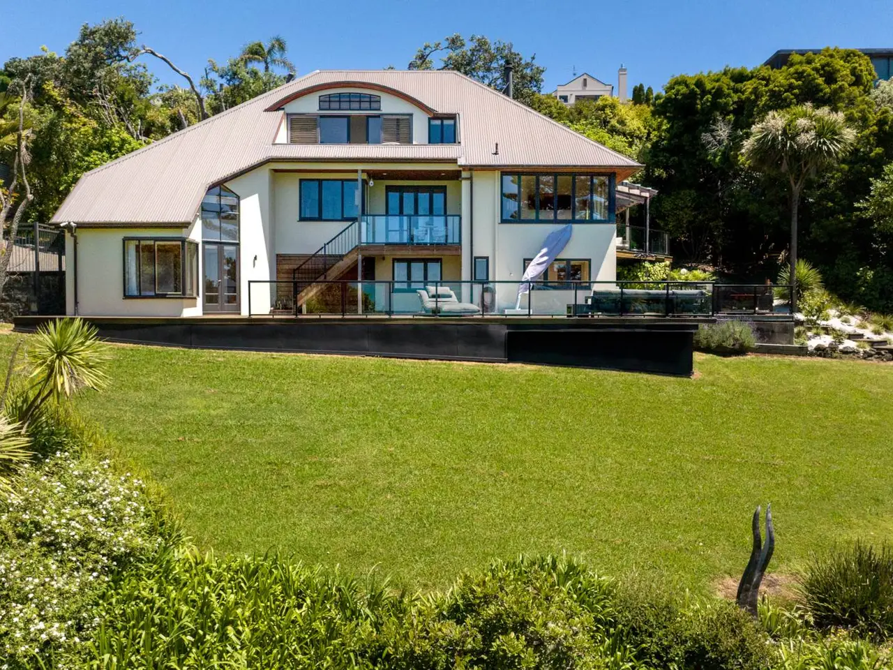Boasting mesmerising Gulf vistas and access to Karaka Bay beach below, this parklike property is an awesome harbourside retreat in a peaceful world of its own. The 4-bedroom home designed by Michael Thomson of Architectus - one of New Zealand's foremost, award-winning architectural practices - was built in a traditional crafted style in the 1980s. Although embraced by native bush, sunshine pours inside across large north-east and north-west-facing decks and terraces that spill onto an expansive lawn.With several staircases, the character-filled home is configured for separation between 4 bedrooms, 2 large offices and 3 living areas (plus 3 bathrooms). In summer, enjoy the fantastic indoor-outdoor flow. In winter, a spacious sitting room invites you to cosy up to the warmth of an open fire and a log burner keeps the large dining room snug.A fitted wine cellar on the lower-level links 2 substantial bedrooms and a bathroom. From the adjacent sunroom, you can sit and soak up the sounds of birdsong and water lapping on the shore below. The primary suite is a generous sanctuary on high complete with dressing room and en suite plus a huge home office and ample storage. Practicalities include double internal garaging, a full laundry and internal wood storage.Providing scope to improve or develop, this is an enticing rare opportunity. Escape the hubbub to embrace the relaxed coastal lifestyle with all city amenities handy including top schools - zoned for Churchill Park School and Glendowie College.