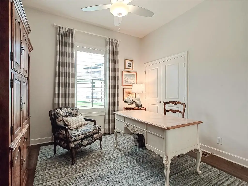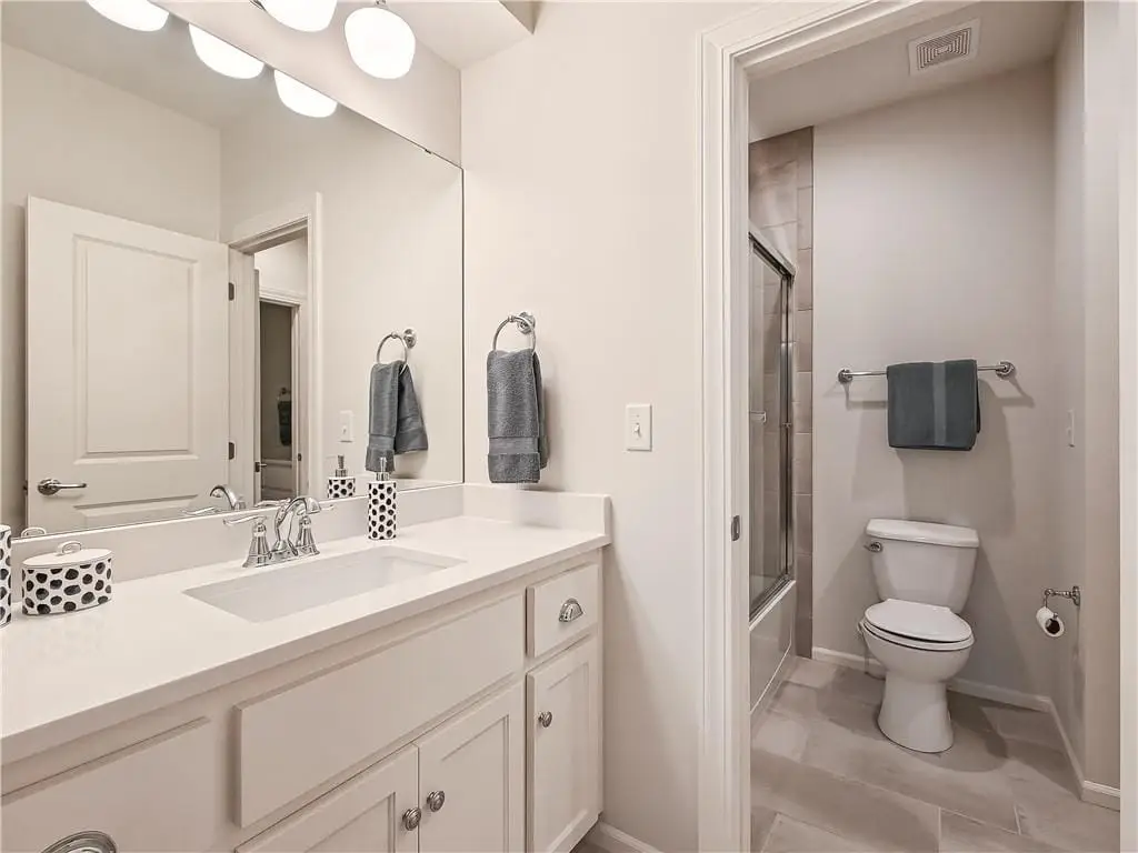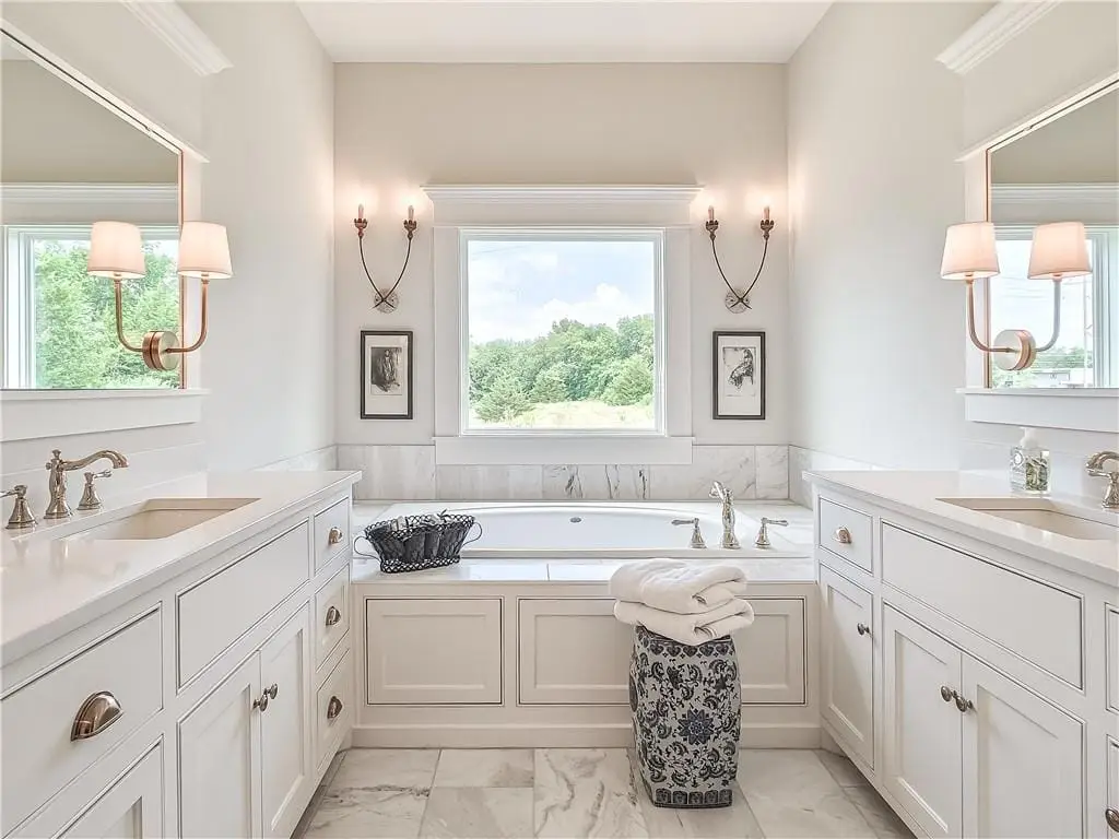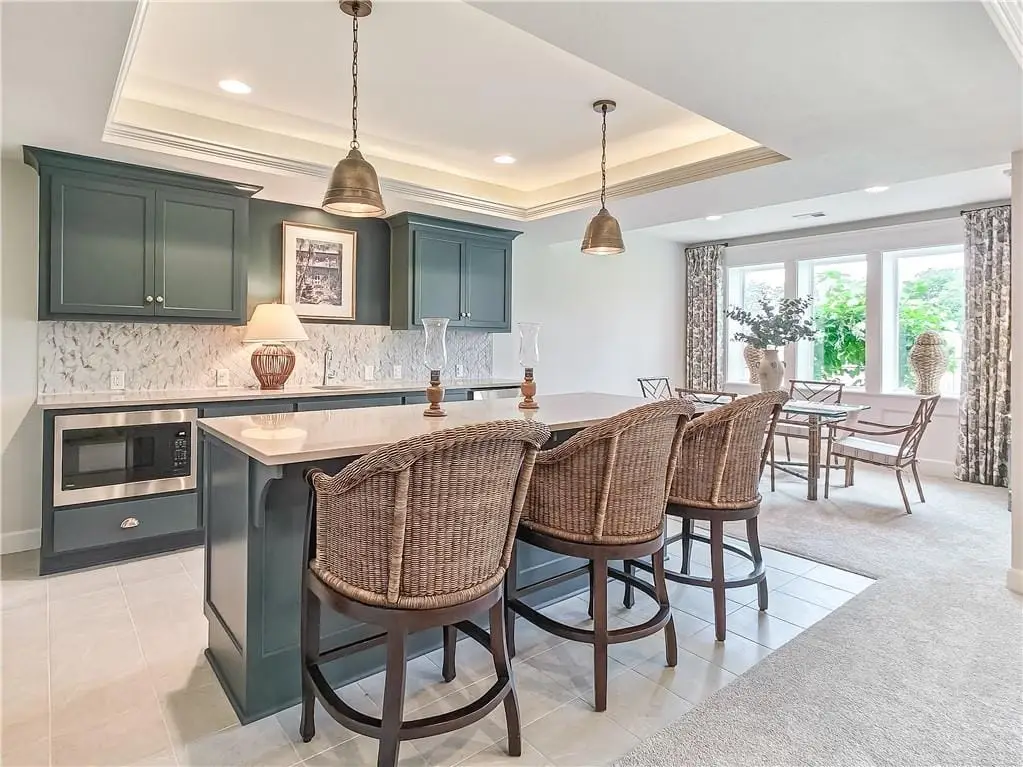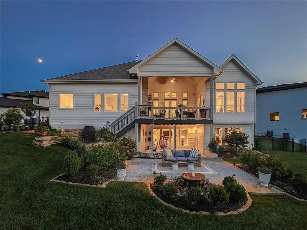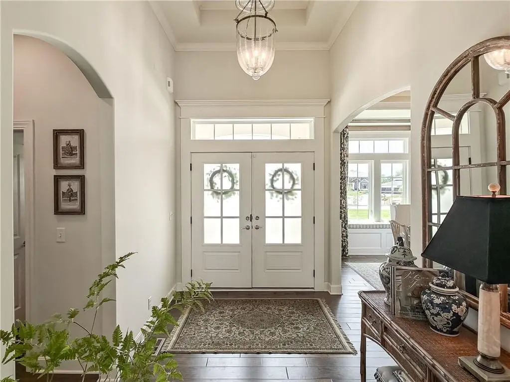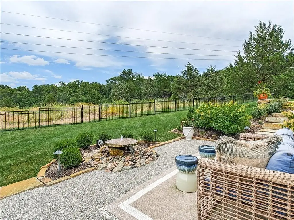 Avoid the uncertainty of new construction with its unforeseen delays and expenses. This nearly new, two-year-old beauty is better than new construction with established landscaping, fenced back yard and premium upgrades throughout. This four bedroom James Engle Stoneybrook Expanded Reverse 1.5-story home delivers all the features you want, without the wait. Nestled on what many call the most coveted lot in Wilshire Hills, this home backs to lush, wooded green space with no neighbors in sight, offering unmatched privacy and tranquility. Expansive windows create a seamless transition from indoors to outdoors. French doors take you to a covered deck and fireplace. From there, stairs lead to the lower level patio with fountain, extending your living space and entertainment options. The kitchen, with custom inset cabinetry, is extra special with a large breakfast area, a prep kitchen, and large pantry. Every appliance is top-of-the line. The marble island contains a large farm sink. A formal dining room is conveniently located directly off of the prep kitchen. The open-concept main level features a great room with stone fireplace, a powder room with wall mount faucets above the sink and two bedrooms, each with ensuite. The large primary bathroom has custom inset cabinets, custom makeup area, heated marble floors, shower and spa tub. The bright, lower level living area has a fireplace for cozy evenings in front of the TV, or entertain in the bar area with its abundant cabinets, sink, microwave, beverage fridge and large island. There are two bedrooms with Jack and Jill bathroom as well as a half bath that complete the walk-out lower level. Enjoy the perfect blend of thoughtful design, luxury finishes, and a move-in ready experience all in one remarkable home. Wilshire Hills is conveniently close to 69 HWY, and the Bluhawk shopping center with grocery, retail, dining and soon a theater.