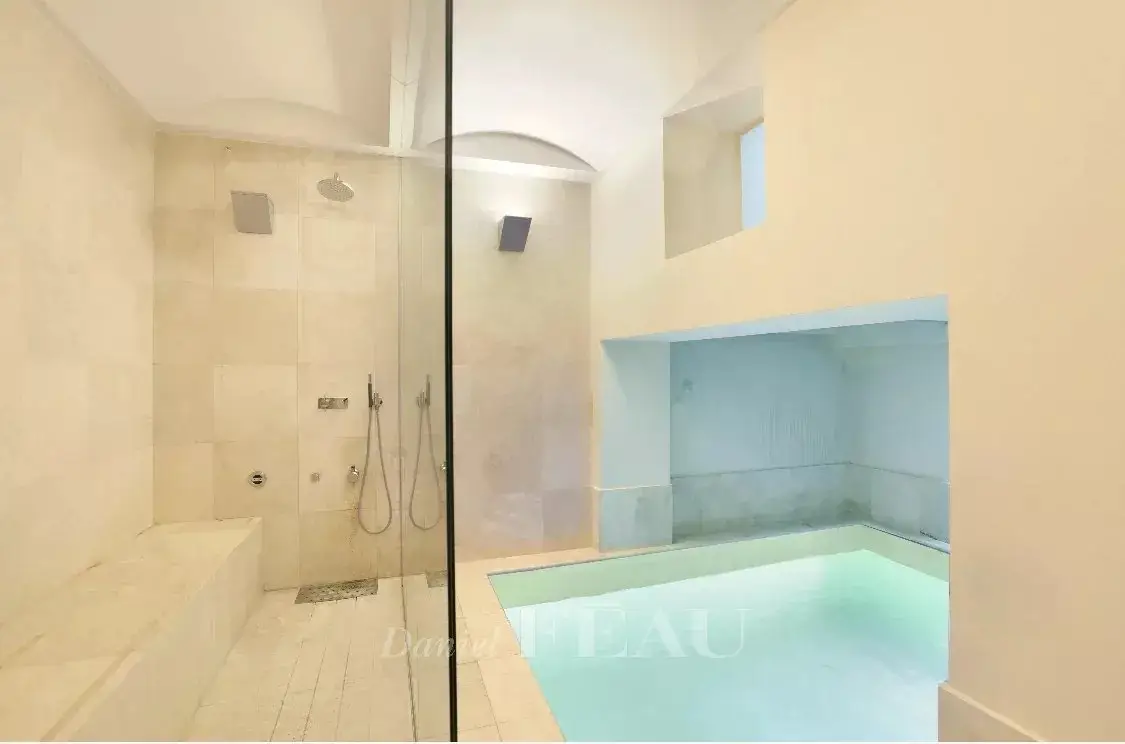 This superb private mansion benefiting from a near 200 sqm south-facing garden is accessed from a private street. The raised ground floor includes a triple living/reception room opening onto a balcony accessing the garden, with a spacious kitchen with dining facilities, a relaxation area with a swimming pool and a steam shower, a staff bedroom with a shower room, and a utility room on the half-basement floor. The upper floors comprise five bedrooms including a master suite with a bath/shower room and dressing room, a bathroom and two shower rooms. With two parking spaces in the private street. A superb property on the north-western edge of the capital.