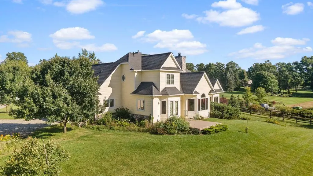 Beautiful country home on 55 acres for sale near historic Chelsea, MI. Custom built in 2007, this stunning house is situated atop a hill overlooking a 1/4 acre spring fed pond and hundreds of acres of high quality nature preserves. Scenic views throughout the home advertise the true beauty of this incredible property. With peaceful areas of woodland, pastures, marsh, fen and field, this is a nature lover's paradise! Step inside this small country estate and you will be enamored by the craftsmanship and attention to detail. Complete with 4 bedrooms and 3 full baths, this home boasts nearly 3,400sq/ft of finished living space. Walking through the front entry, there is a tiled foyer with storage closet, as well as a small family room/den with gas fireplace. The spacious primary level master suite offers comfort and convenience, with 2 walk in closets and a master bath complete with bubble tub and walk-in shower. The living room has cathedral ceilings, large bay windows, a marble-tiled wood burning fireplace, and an open floor plan that flows seamlessly into the kitchen and dining area. The charming kitchen has granite counter tops, cherry stained wood cabinets, stainless steel appliances and double French doors leading out to the 1,200sqft composite deck. Just around the corner is an elegant "butler style" room with utility sink, laundry closet, and full bathroom. This leads out to the 2-1/2 car garage that is fully insulated and heated/cooled. The cherry wood staircase takes you up to the second floor complete with the remaining 3 bedrooms and full bath. The walkout basement with french doors offers another whole living area. This finished space has 9' ceilings, a large family room, library, office space, and 2 storage closets. The utility room houses a 3 zone furnace, large hot water heater, full house vacuum, and is plumbed for additional bathroom. The property also comes with a large tobacco style pole barn that features a workshop, horse stalls, and a partially finished studio apartment with full kitchenette, bathroom, stacked laundry and pantry. Additionally, there is a garden shed and chicken coop with fenced in run. Conveniently located just 4 miles from downtown Chelsea, 16 miles from Ann Arbor, and just minutes away from the Waterloo Recreational area, this unique property offers the perfect blend of country living and accessibility. Exceptional location and incomparable views truly make this home one of a kind. Property sale includes 2 parcels. F-06-28-100-027 & F-06-28-100-028. 50 acre parcel is under conservation easement with the Washtenaw County Parks and Recreation Department.