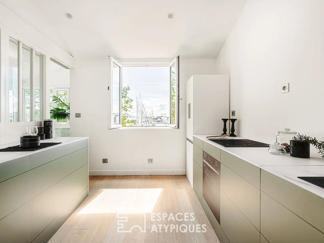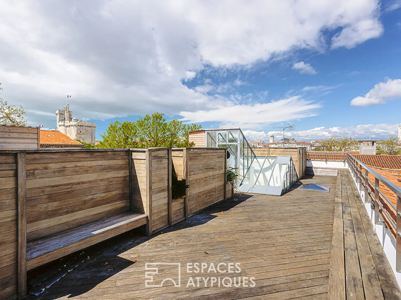 Located in the heart of Gabut, one of the most emblematic districts of La Rochelle, between the train station and the old port, this renovated apartment offers the most beautiful views of the city with a remarkable level of finish.In a recent building with elevator, with Scandinavian architecture with its colorful cladding facades and within a small secure condominium of three lots, the apartment shares the top floor with two other penthouses. The sleeping area is at the forefront of this spacious apartment designed like a yacht. Four suites each have their own shower room or bathroom and benefit from large windows to enjoy emblematic views, sometimes over the trawlers' basin, sometimes over the old port.Past this space, a vast and bright living room with multiple bays reveals sumptuous panoramas and various exhibitions. At the end of this perspective, a kitchen nestled in its marine woodwork with a workshop bay to separate without partitioning. Back towards the entrance, the glass and steel stairwell which forms the interface between the lower deck and the cockpit is hidden.This 360-degree roof terrace overlooks the city center. This apartment, with Premium finishes and an exceptional view, provides an ideal location to fully live a La Rochelle life and take advantage of all these assets, in the heart of the city without forgetting its seaside and maritime side. This comfortable place can be enjoyed on foot or at home, with the same pleasure, all year round. Co-ownership of three lots, annual charges of 3,800 euros in 2023.ENERGY CLASS: C / CLIMATE CLASS: A, Estimated average amount of annual energy expenditure for standard use, established from energy prices for the year 2021: between EUR2090 and EUR2900.REF. EALR2037Additional information* 5 rooms* 4 bedrooms* Floor : 3* 3 floors in the building* 3 co-ownership lots* Annual co-ownership fees : 3 800 €Energy Performance CertificatePrimary energy consumptionc : 168 kWh/m2.yearHigh performance housing*A*B*168kWh/m2.year5*kg CO2/m2.yearC*D*E*F*GExtremely poor housing performance* Of which greenhouse gas emissionsa : 5 kg CO2/m2.yearLow CO2 emissions*5kg CO2/m2.yearA*B*C*D*E*F*GVery high CO2 emissionsEstimated average amount of annual energy expenditure for standard use, established from energy prices for the year 2021 : between 2090 € and 2900 €Agency feesThe fees include VAT and are payable by the vendorMediatorMediation Franchise-Consommateurswww.mediation-franchise.com29 Boulevard de Courcelles 75008 ParisInformation on the risks to which this property is exposed is available on the Geohazards website : www.georisques.gouv.fr