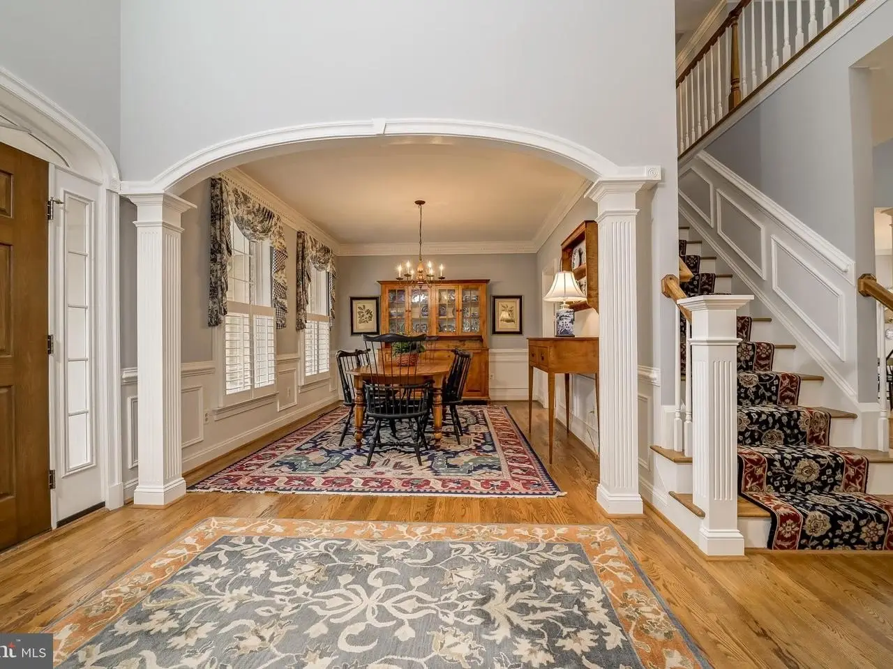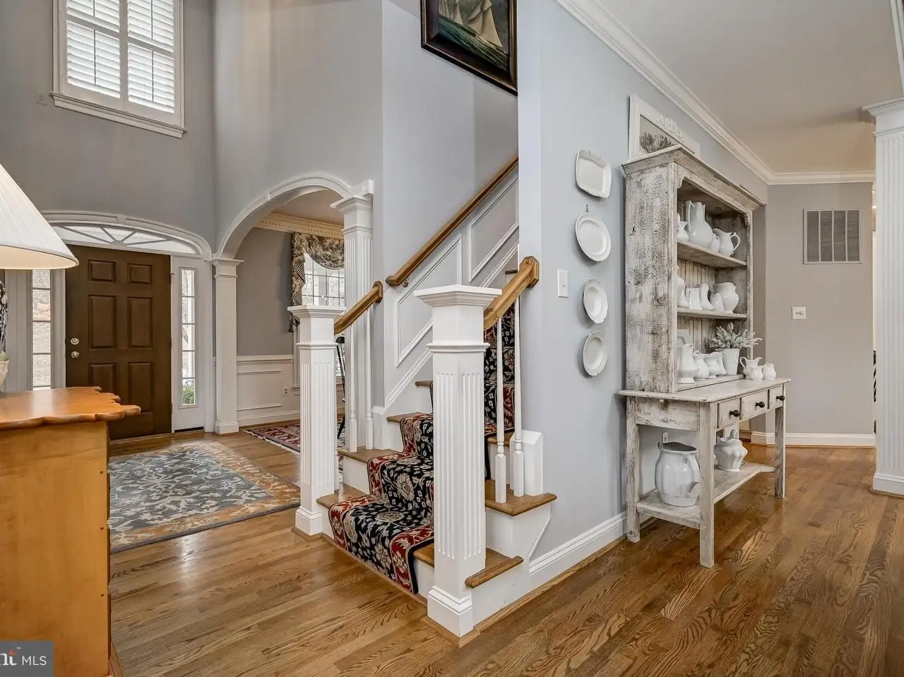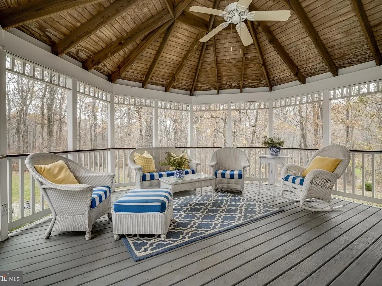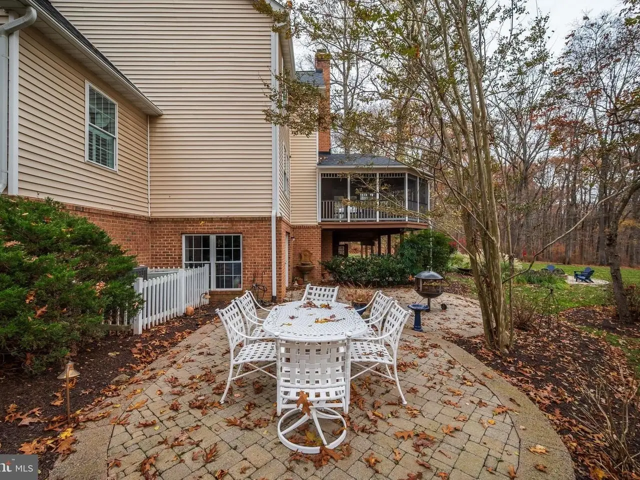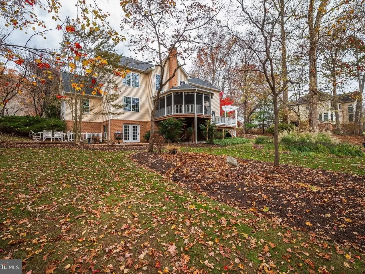 Beautifully sighted on a lovely lot backing to protected woods. Custom built and loved by original owners with artful craftsmanship throughout. Hardwood flooring on the main level, primary bedroom and upper hall. Extensive wood moldings, trim and custom arched entries will impress. Welcomed by the peaceful full front porch, enter the 2-story foyer flanked by formal dining room w/butlers' pantry; formal living room with access to substantial sun room offering seasonal views and separate opportunities for gathering spaces. Onward to the central stair, 2-story family room with centered fireplace and formal mantle, office/library with built-in cabinetry and wall to wall shelving made private by French doors, screened porch open to deck and pergola. Recently renovated kitchen with island, breakfast bar and table space, walk-in bay window, desk, pantry, white cabinetry with Glass display doors, cooktop, built-in microwave/convection wall oven, dishwasher, stainless French door refrigerator with ice/water through the door and freezer drawer; beautiful quartz counters with beveled edge. Embrace the over-sized garage with entry to the mud room and main level laundry room with service sink. Upper level boasts generous primary suite with vaulted ceilings, 2 walk-in closets and recently renovated ensuite bath with soaking tub, shower with rain glass doors, double bowl vanity, cathedral ceilings and wainscoting. Three secondary bedrooms surround the impressive catwalk hall over-looking the family room, open magnificent view of the rear spaces and spectacular view of the rear property. Elegant plantation shutters throughout create that gentle feeling of a Southern living lifestyle. The lower level is finished for additional enjoyment....rec room, dining space, serving bar w/mini-fridge, guest space with ensuite full bath, a secondary finished space for your workout, hobbies or additional office. Additional expansive shelved storage room will house and preserve your treasures. Walkout to a breath-taking rear level yard, plenty of space for yard games, plus 3 separate paver patios, one with fire-pit for your year-round enjoyment or every season beverage and smores!! Roof replaced 2017. HVAC replaced 2018. Kitchen/primary bath remodeled 2017. A perfect opportunity to embrace life in Wellington, one of Western Howard County's first and most prestigious custom neighborhoods, so conveniently located within minutes to Howard County's outstanding schools, Western Regional park and library complex, Cattail Country Club, shopping, restaurants nearby. Welcome Home!
