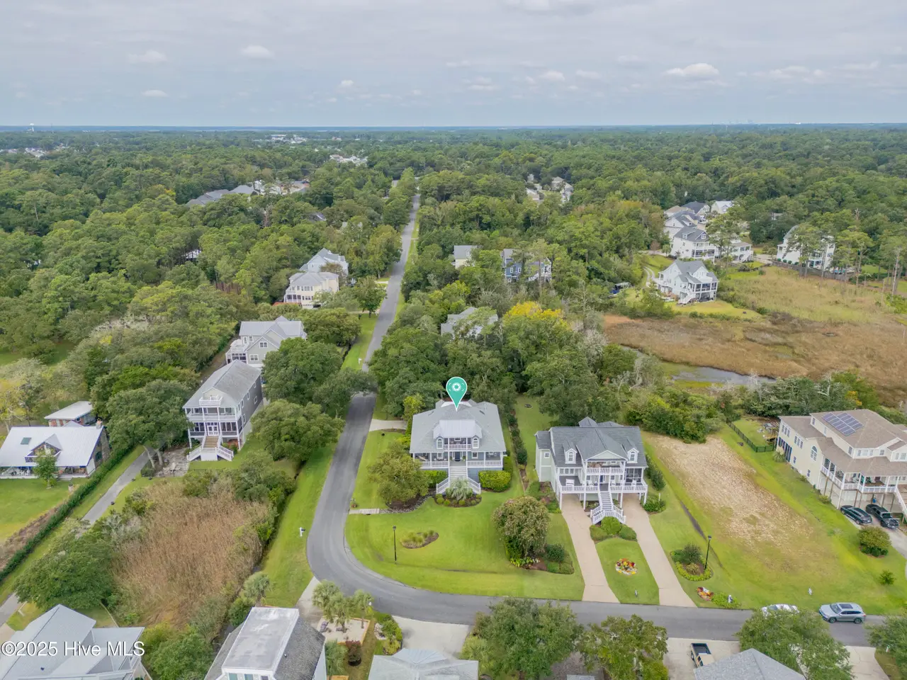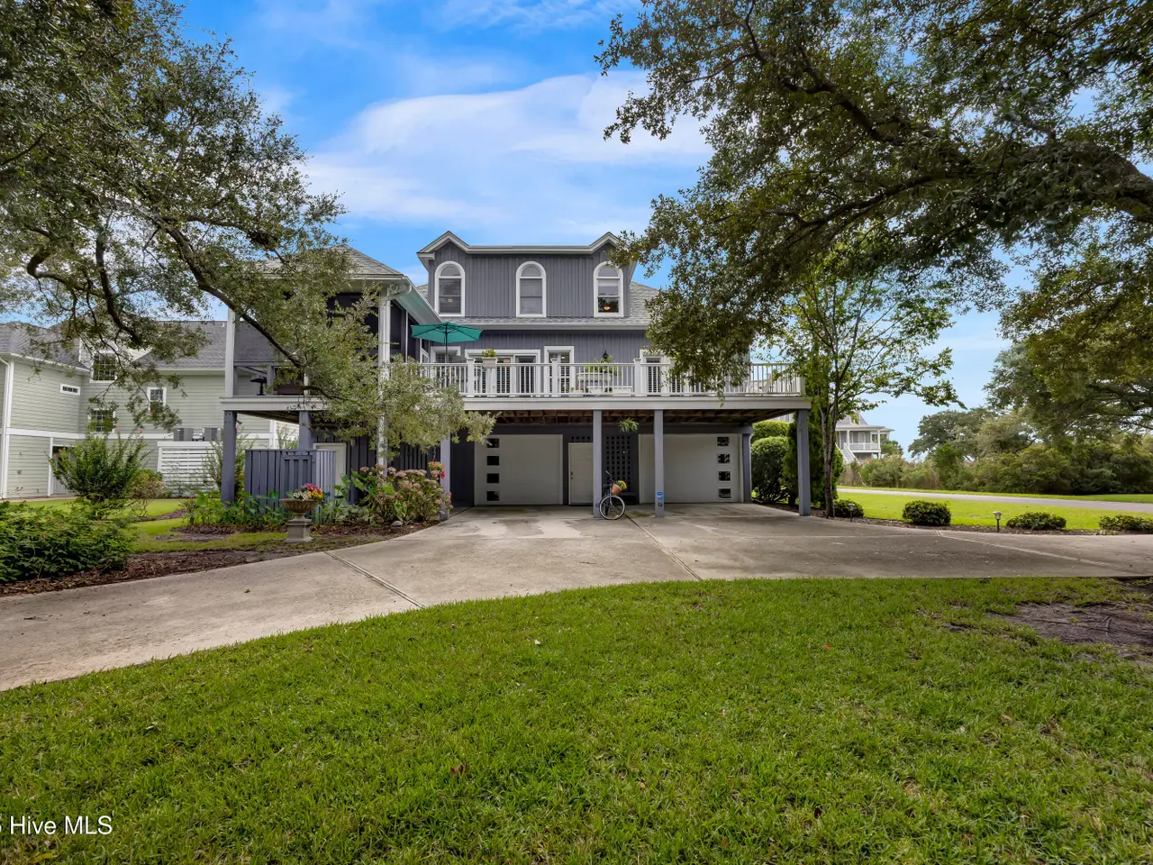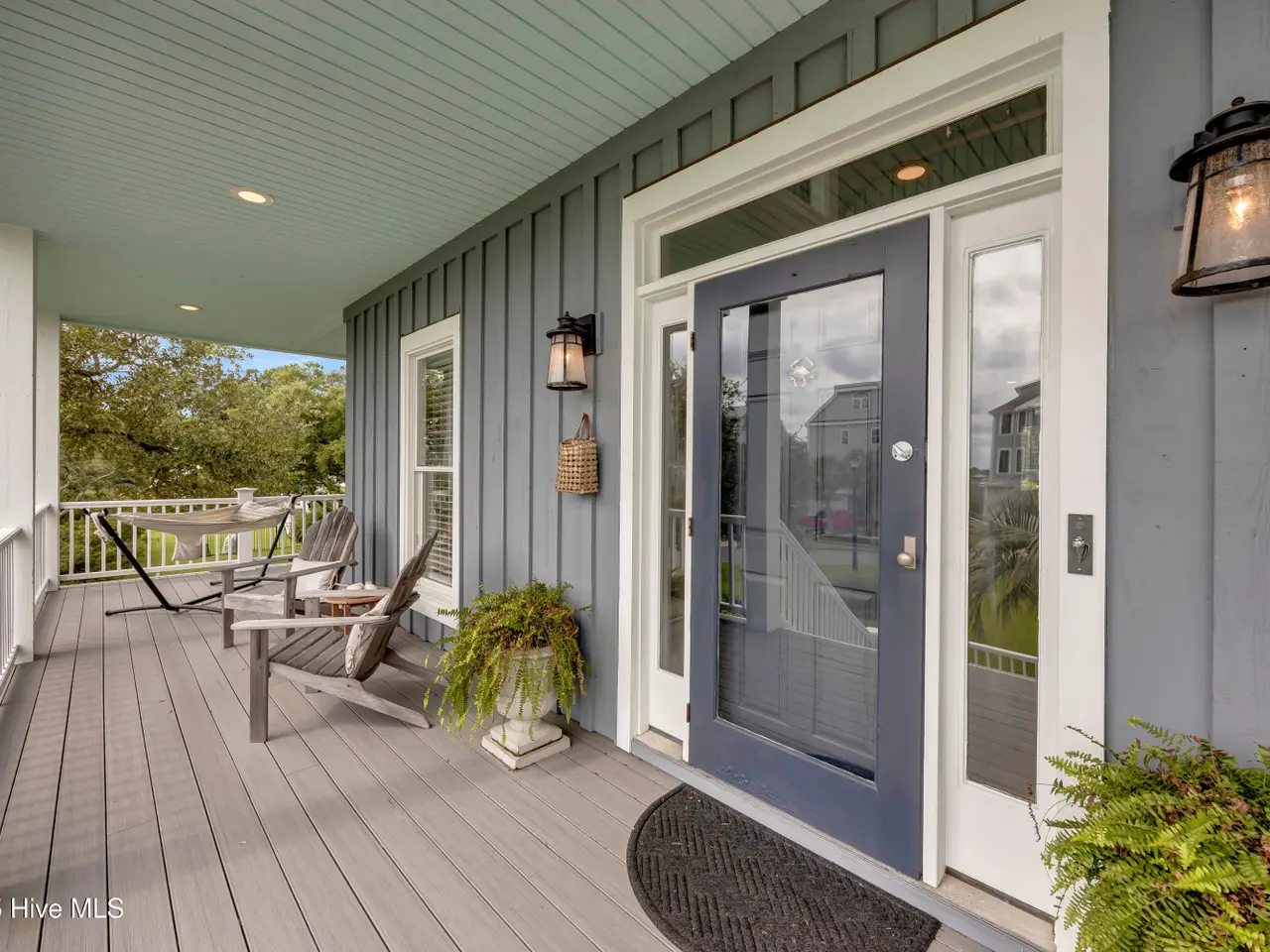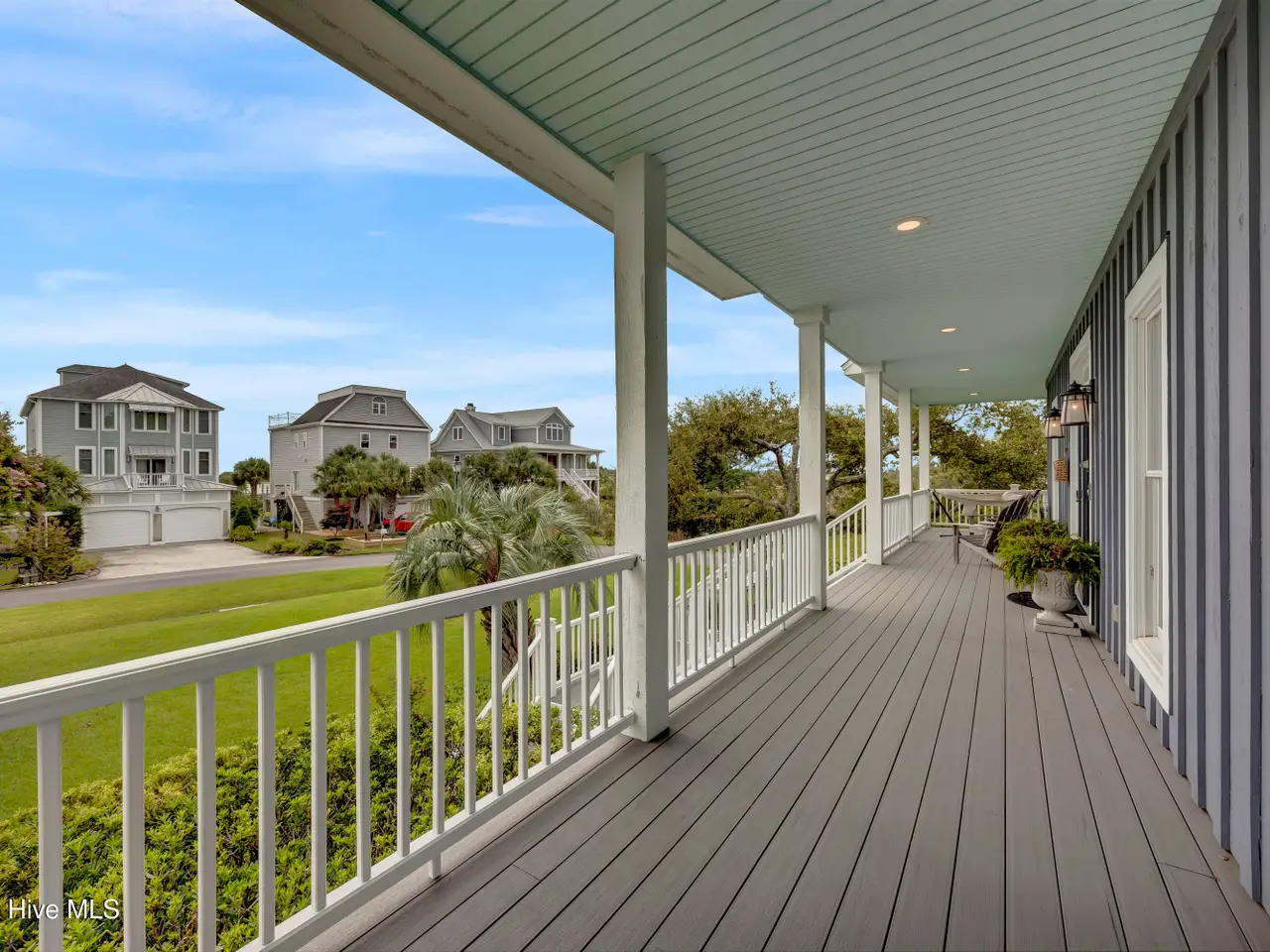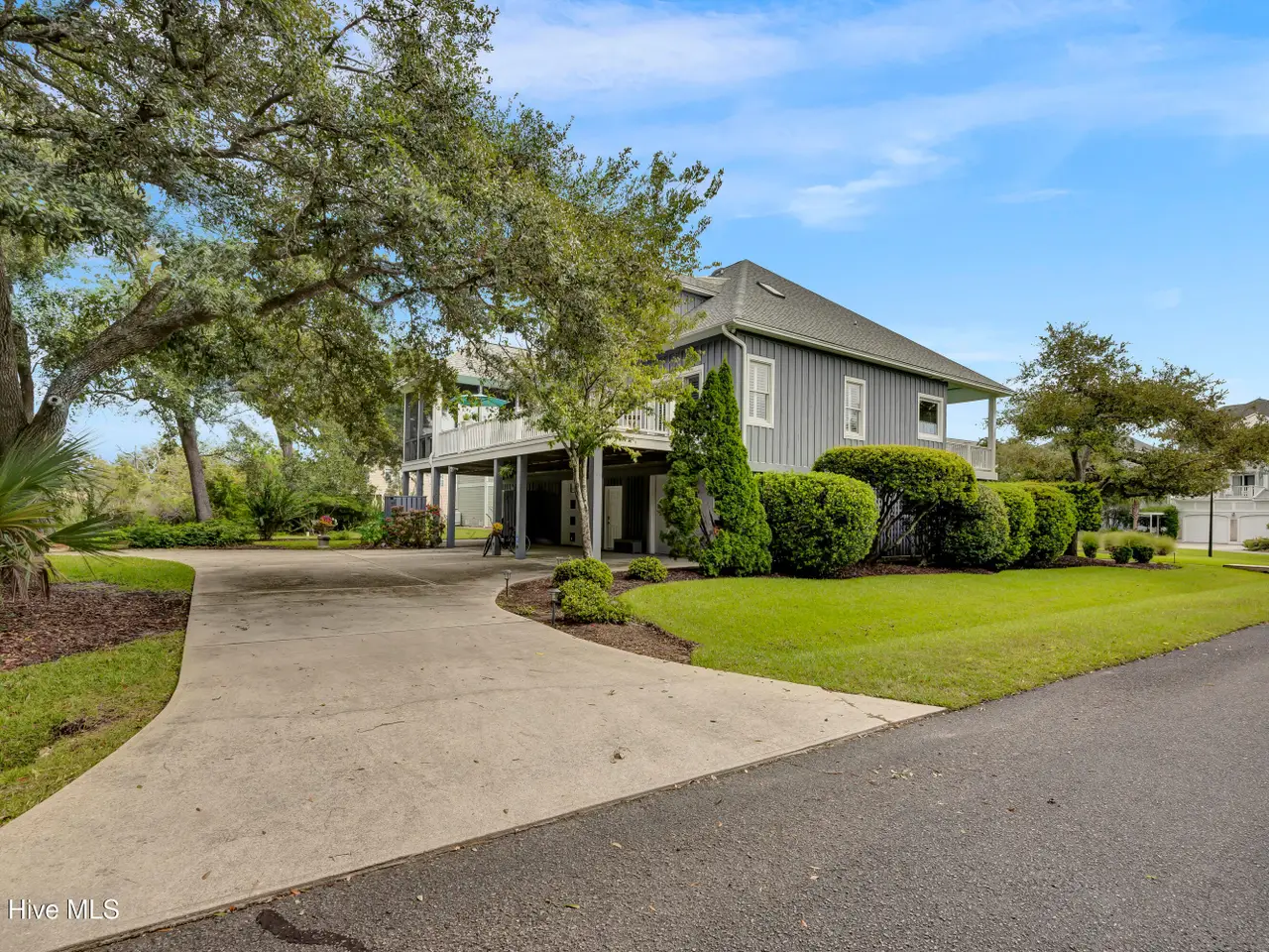 Beautiful custom-built home with a spacious workshop situated on a corner lot in the waterfront community of Charleston Landing in the desirable Myrtle Grove area. The small quiet neighborhood offers access to the community pier located on the Intracoastal Waterway and includes a day dock, gazebo, and kayak launch providing easy access to a secluded part of Masonboro Island and the perfect spot for dolphin watching. Sip your morning coffee while enjoying the sunrise from the welcoming front porch on this second-row home. To maximize views of Masonboro Island and the ocean, a recently added upper-level covered porch is perfectly situated. This 3 bedroom, 3 1/2 bath light filled residence has a wonderful floor plan and has been meticulously maintained and updated. A gorgeous new kitchen was added in 2022 offering an abundance of cabinets, Piracema granite countertops, stainless steel appliances, coffee station, breakfast area with built ins, beverage refrigerator and the perfect elevated book shelf over the door leading to the screened in back porch. The living room has custom-built in cabinets which were added in 2023, flanking the new electric fireplace and mantle. Refinished oak hardwood floors can be found throughout the main level in all living areas and the spacious primary bedroom, located just off the living room. The generous sized primary bedroom has plantation blinds, a walk-in closet, and convenient access to the expansive back deck. The primary bathroom offers a double vanity, tile floors with a separate garden tub and shower with dual shower heads. At the front of the home, is the perfectly updated powder room and a formal dining room with direct access to the kitchen. Upstairs you will find 2 guest bedrooms, 2 full bathrooms, a family room, and 2 additional spaces currently used as music alcove and an office space. Just through the office area at the front of the home you will find the newly added covered porch.