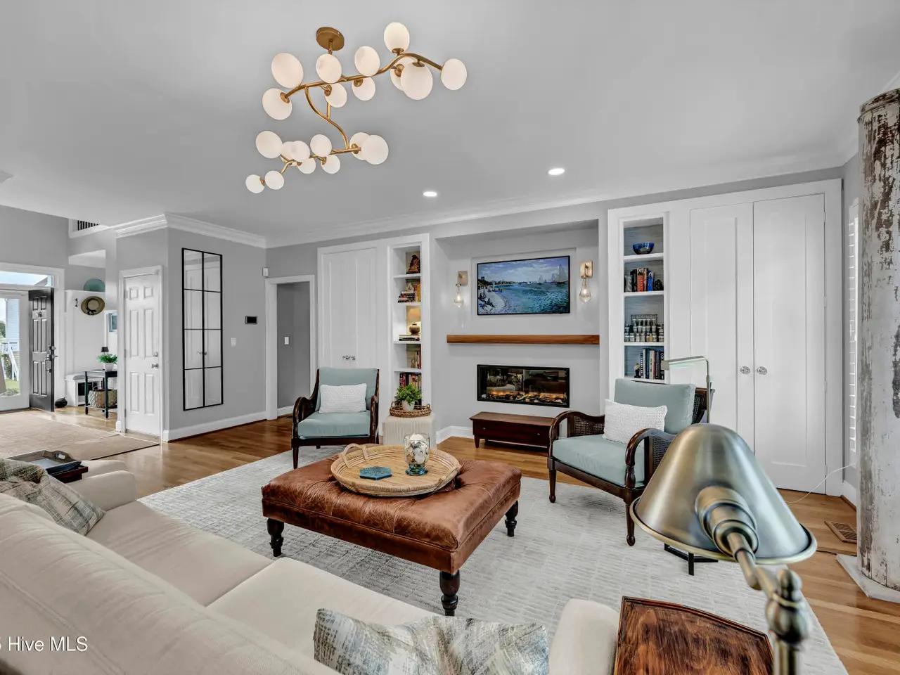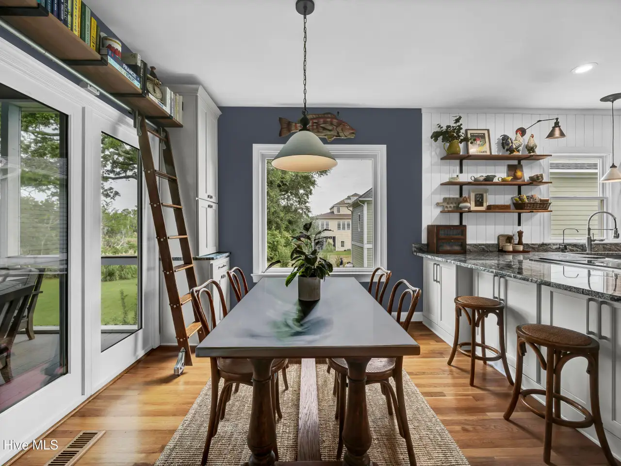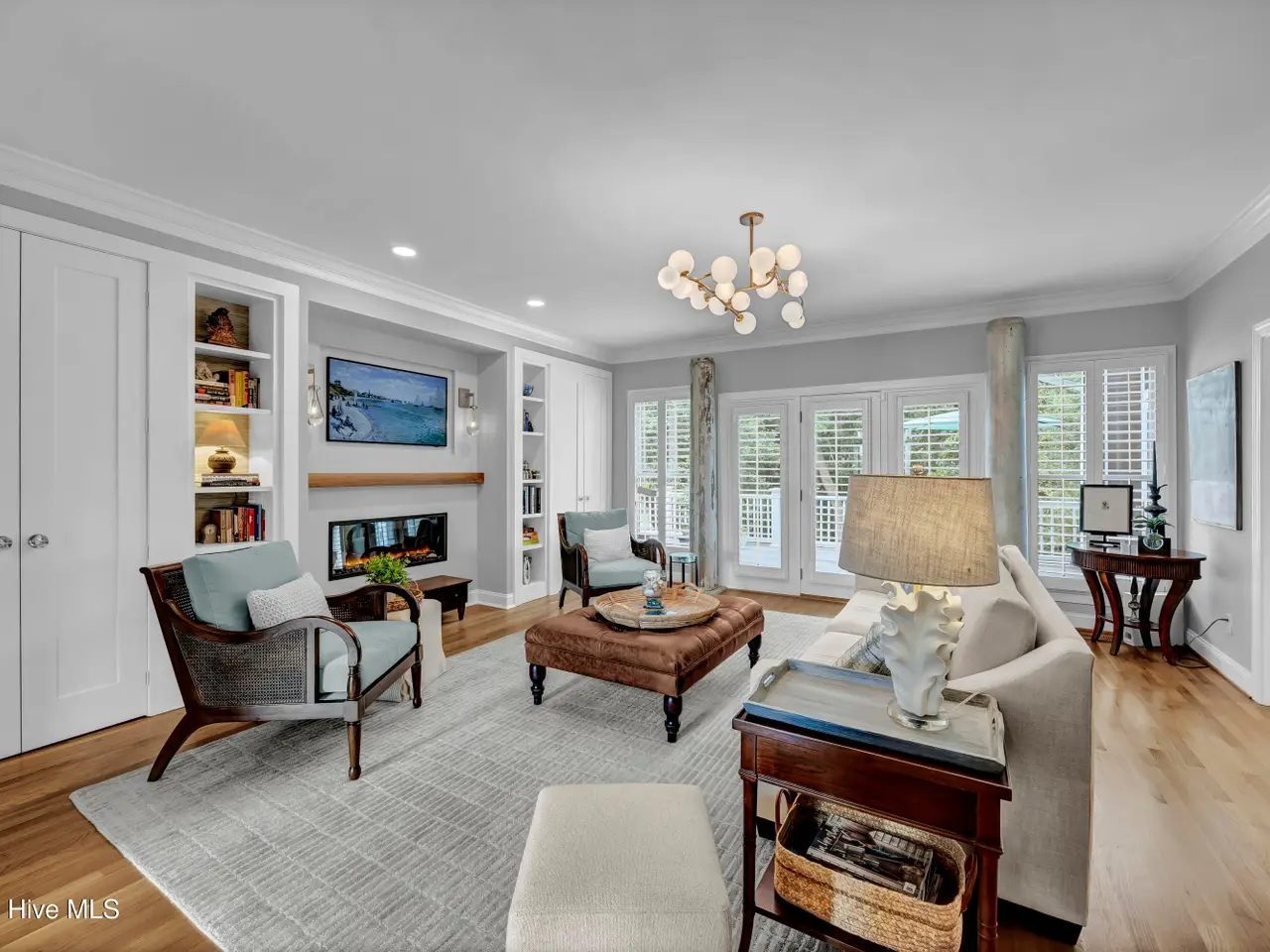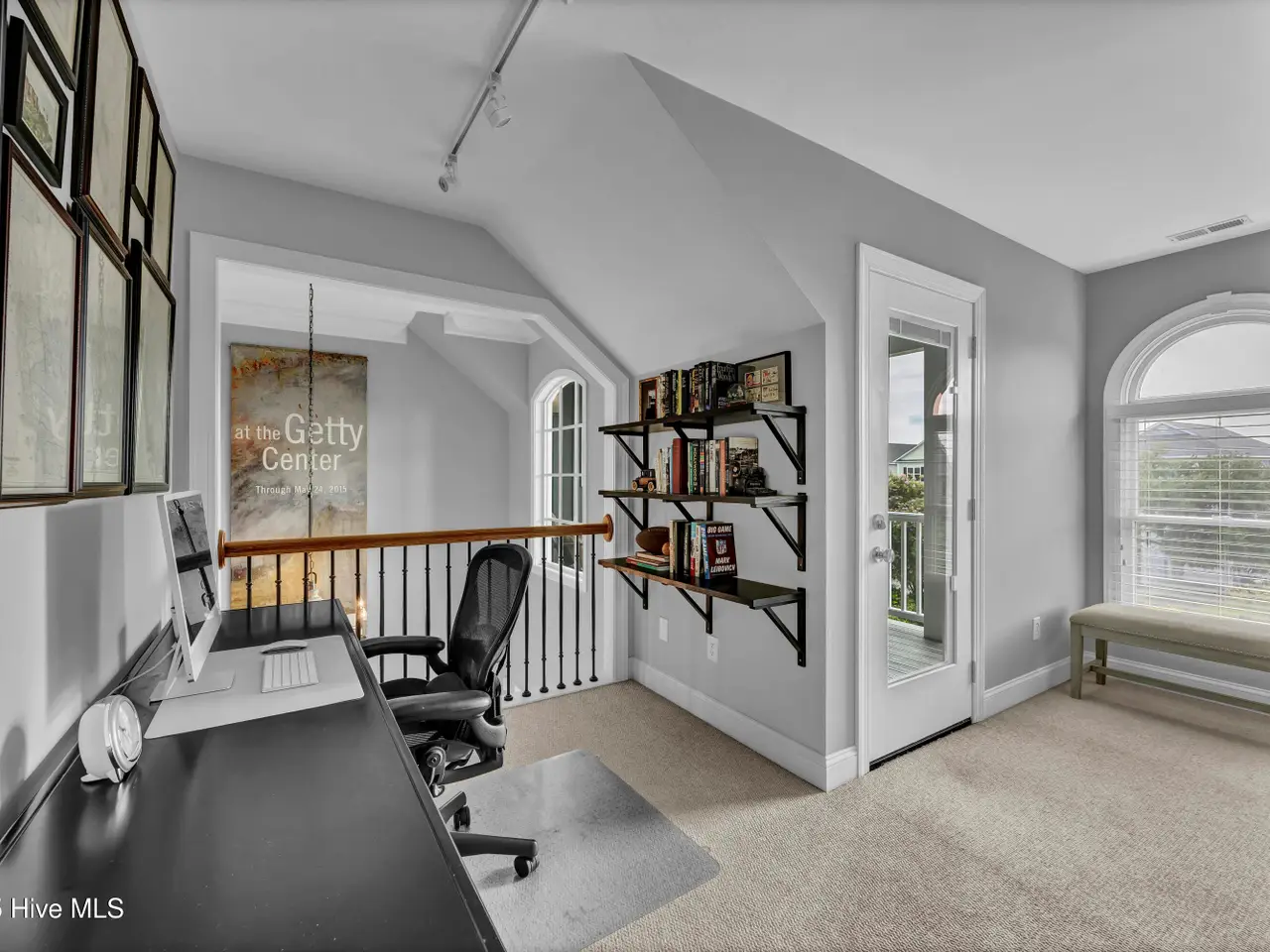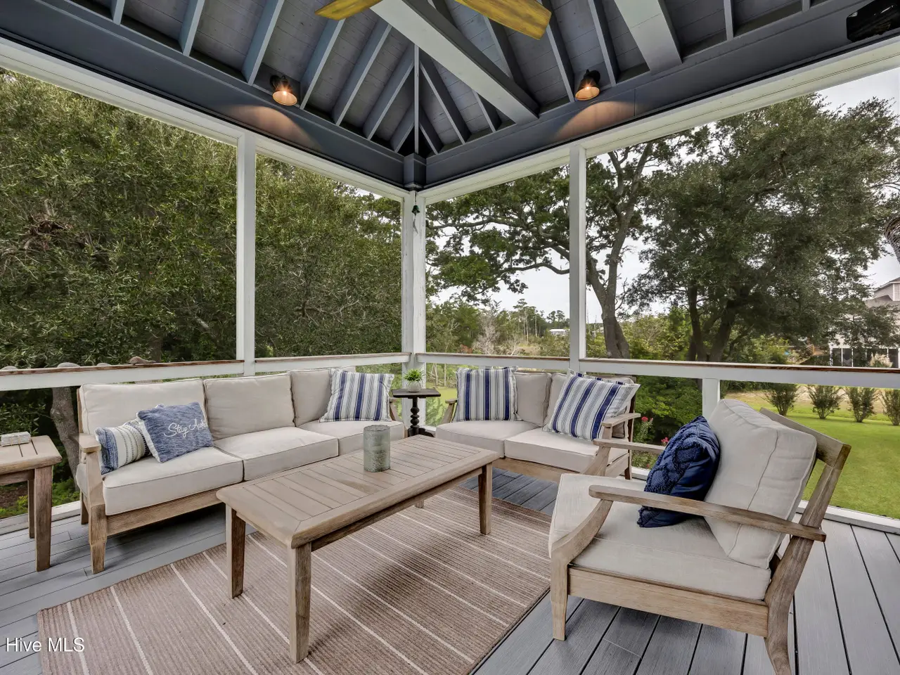 Beautiful custom-built home with a spacious workshop situated on a corner lot in the waterfront community of Charleston Landing in the desirable Myrtle Grove area. The small quiet neighborhood offers access to the community pier located on the Intracoastal Waterway and includes a day dock, gazebo, and kayak launch providing easy access to a secluded part of Masonboro Island and the perfect spot for dolphin watching. Sip your morning coffee while enjoying the sunrise from the welcoming front porch on this second-row home. To maximize views of Masonboro Island and the ocean, a recently added upper-level covered porch is perfectly situated. This 3 bedroom, 3 1/2 bath light filled residence has a wonderful floor plan and has been meticulously maintained and updated. A gorgeous new kitchen was added in 2022 offering an abundance of cabinets, Piracema granite countertops, stainless steel appliances, coffee station, breakfast area with built ins, beverage refrigerator and the perfect elevated book shelf over the door leading to the screened in back porch. The living room has custom-built in cabinets which were added in 2023, flanking the new electric fireplace and mantle. Refinished oak hardwood floors can be found throughout the main level in all living areas and the spacious primary bedroom, located just off the living room. The generous sized primary bedroom has plantation blinds, a walk-in closet, and convenient access to the expansive back deck. The primary bathroom offers a double vanity, tile floors with a separate garden tub and shower with dual shower heads. At the front of the home, is the perfectly updated powder room and a formal dining room with direct access to the kitchen. Upstairs you will find 2 guest bedrooms, 2 full bathrooms, a family room, and 2 additional spaces currently used as music alcove and an office space. Just through the office area at the front of the home you will find the newly added covered porch.