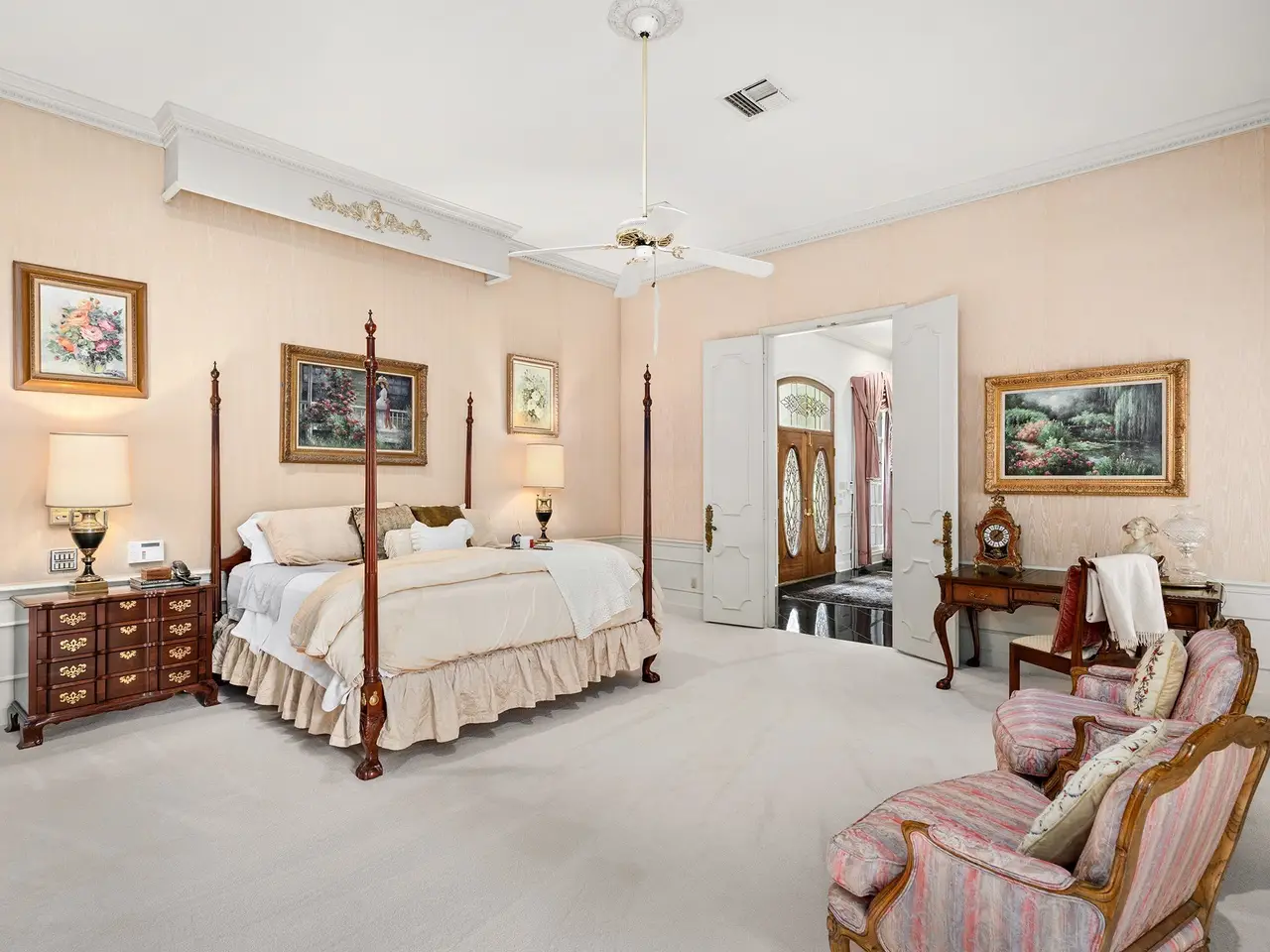 Stately, two story traditional home on a large 26,350 sqft(per HCAD) lot, ready for transformation. Expansive primary bedroom down with dual bathroom and closets. Formals, den, wet bar/butler's pantry, wine room with storage closet. Kitchen area has a large walk-in pantry, utility room, desk area and room for a dining table. Two staircases. Three bedrooms up, all with ensuite baths. Large game room(4th bedroom) up. Extra room up, could be home office/study. Swimming pool. Two driveways, enter and exit on Rocky River or Sage Rd. Parking court, 2 car garage, 2 car carport, extra parking. Private courtyards. Being sold in present condition. No repairs will be done. This is an opportunity to customize or create your dream home. All info per seller