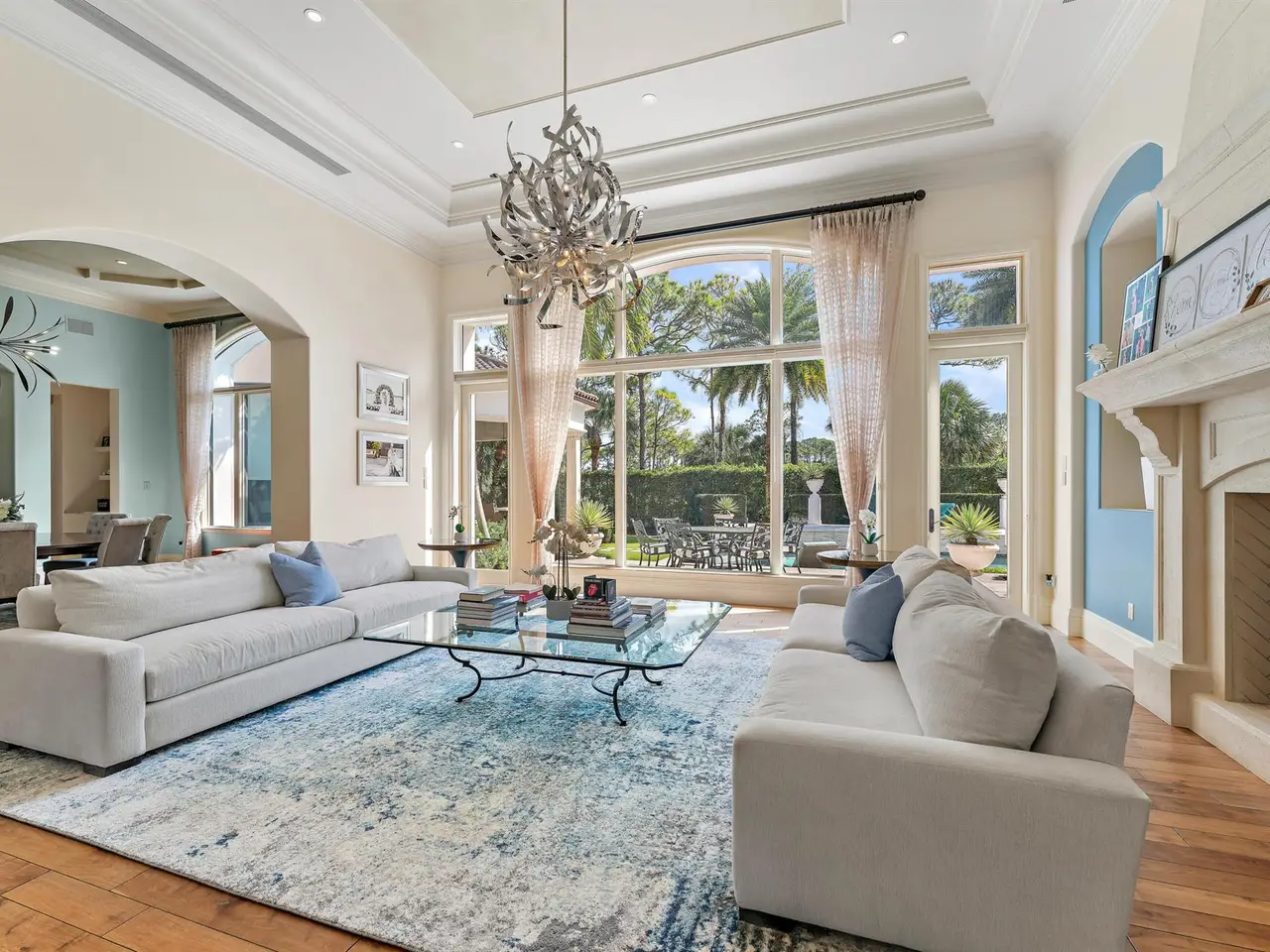 Enjoy the elegance of this custom, over 9,000 square ft estate located in the exclusive Bears Club in Palm Beach Gardens. Featuring five bedrooms, 7.2 bathrooms, 2 - 2 car garages. This spectacular home is situated on a beautiful lot with privacy and a resort-style backyard with outdoor loggia and a fireplace. Recently renovated and new roof. Additional luxuries include a first-floor master suite, 2 magnificent marble master bathrooms, a guest suite, a media room, a club room, a chef's kitchen, a wine bar with a built-in wine fridge, soaring ceilings, impact glass, an elevator, and much more! Beautifully appointed with amenities too numerous to list and ready for the most discerning buyer