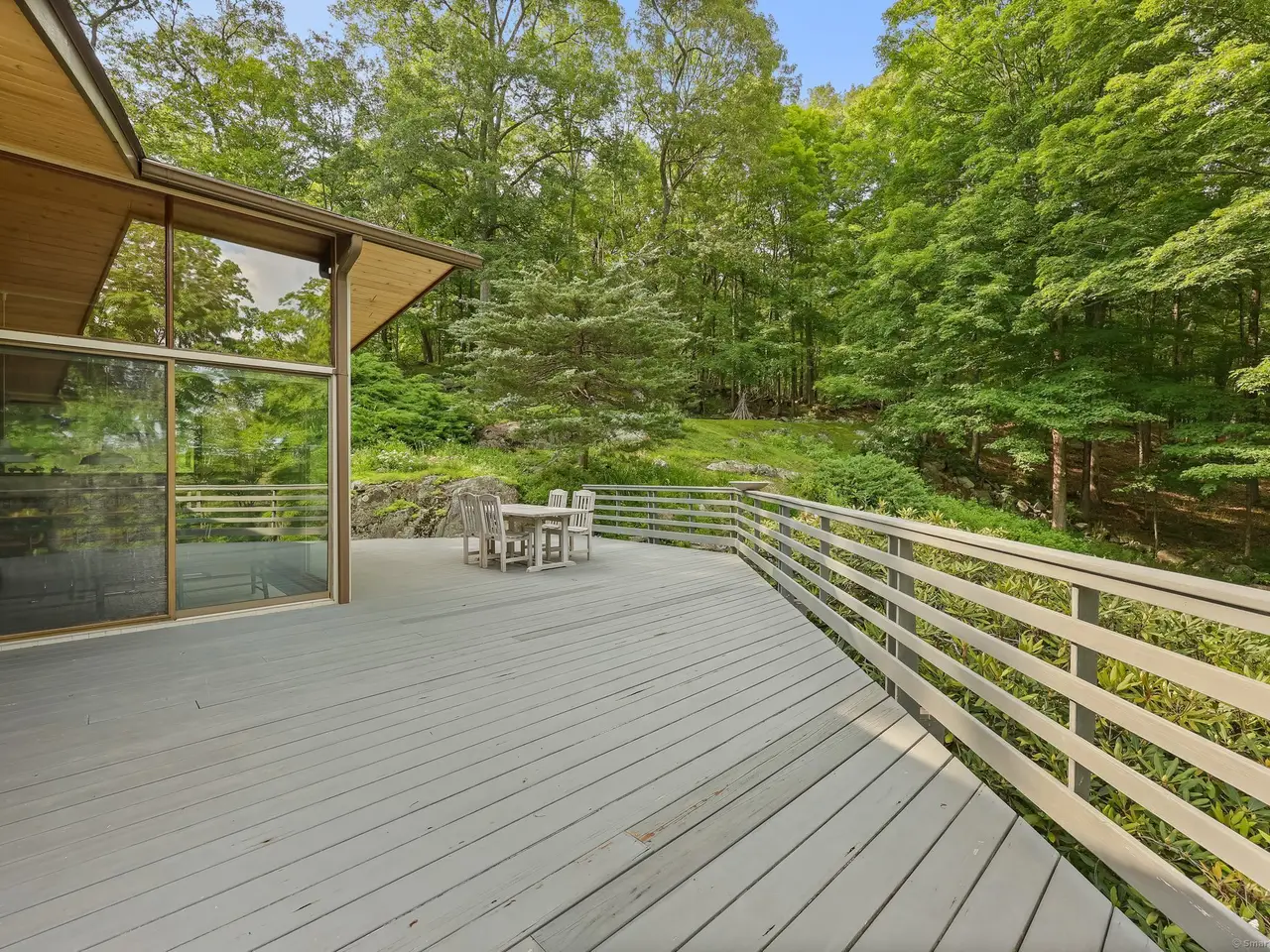 Never before on the market! A true once-in-a lifetime opportunity to own an architectural gem! This custom mid-century deck house, built and lovingly maintained by its original owners, has been thoughtfully expanded and updated over the years to meet the evolving needs of modern living-all while preserving its timeless design. Flooded withnatural light and offering unmatched privacy, this home is perfectly sited on a stunning 2.48 -acre parcel. Mature trees, lush rhododendrons and sweeping views of surrounding open space create an idyllic retreat just 6 minutes from Georgetown Center, Carluccio's market and the Redding Metro North train station. Key Features include: **A 15x50 Gunite heated lap pool with bluestone patio and outdoor lighting, **A separate 160SF pool cabana with bath and its own dedicated septic system, **A 600SF Heated and Cooled Artist/Yoga studio- Featuring Vaulted ceilings, skylights, beams, and designer lighting. **A 720SF Detached Two-Car Garage with additional storage and attached workshop/potting room, ** two large wooden framed detached sheds for wood and tool storage, **Multiple outdoor entertaining areas including a partially covered, expansive and elevated wrap-around-deck overlooking the stunning grounds and pool area. With nature views from every room and abutting acres of preserved open space, this property offers peace, inspiration and the rare chance to own a truly iconic and magical piece of West Redding history! This is your needle in a haystack The one you've been waiting for. Do not miss!!