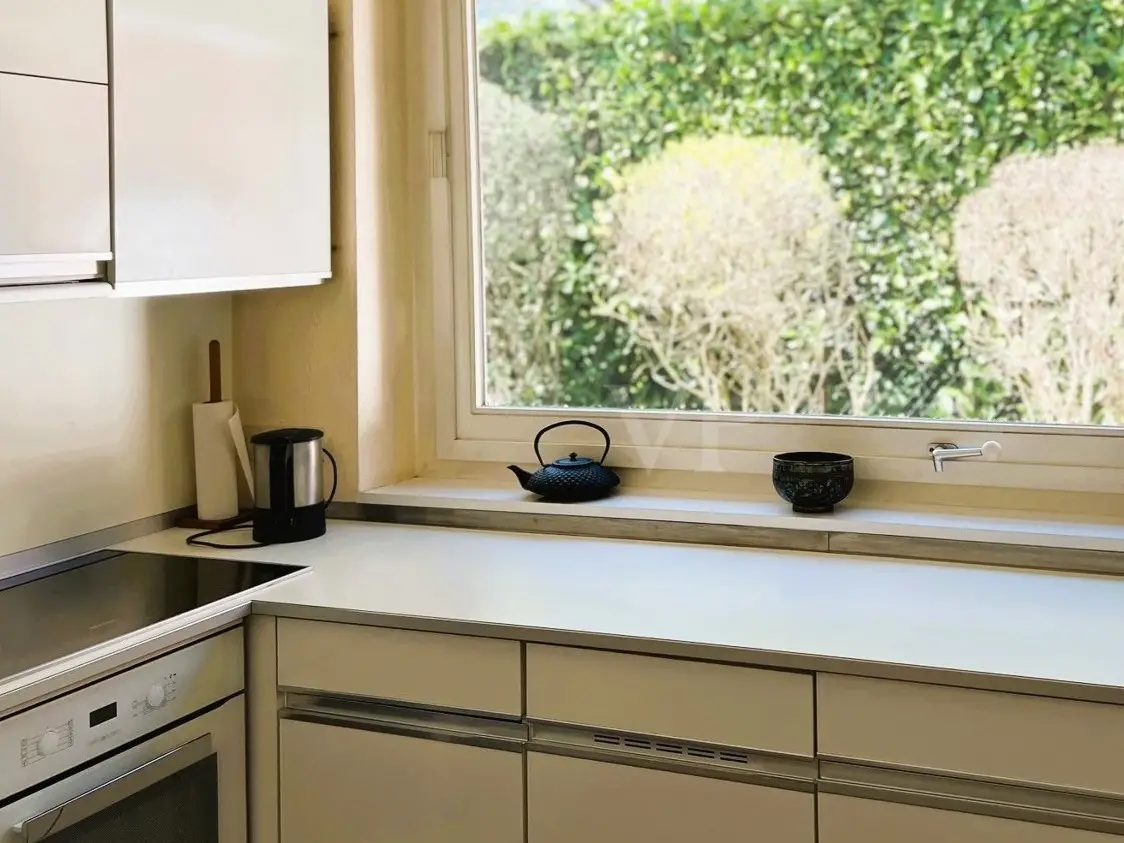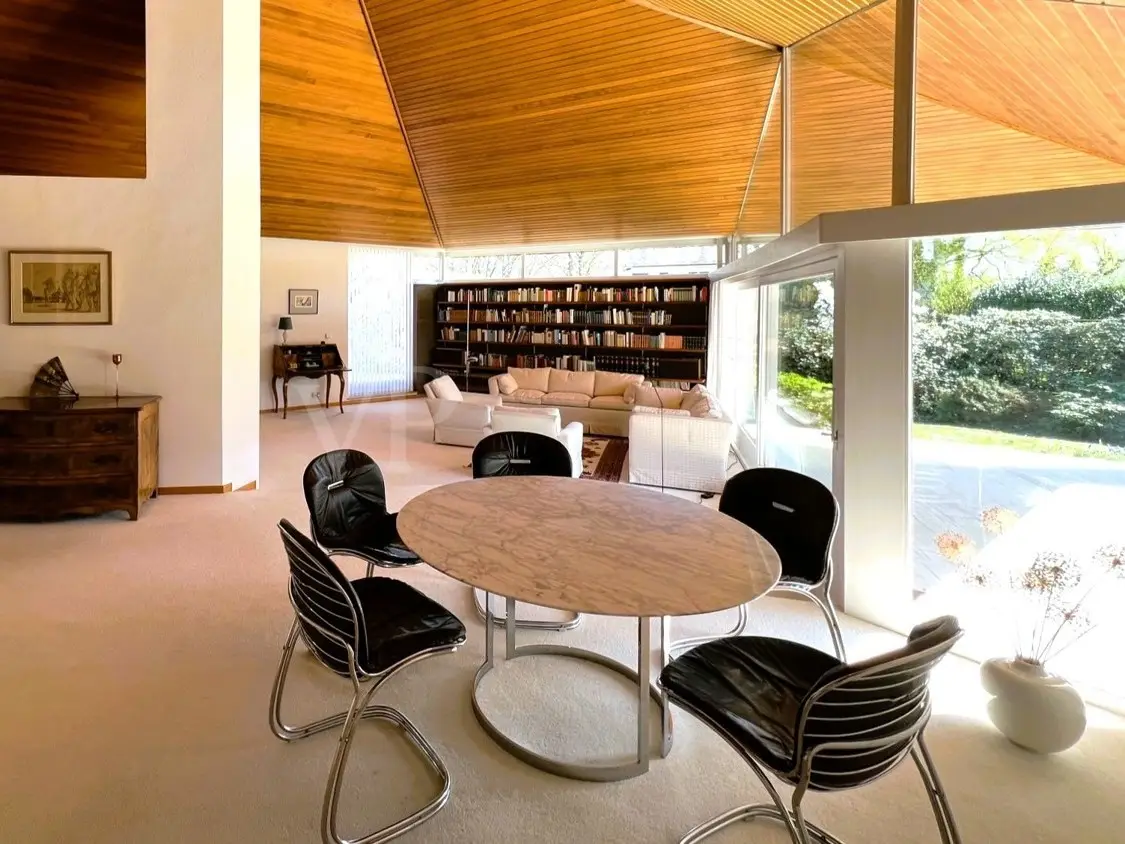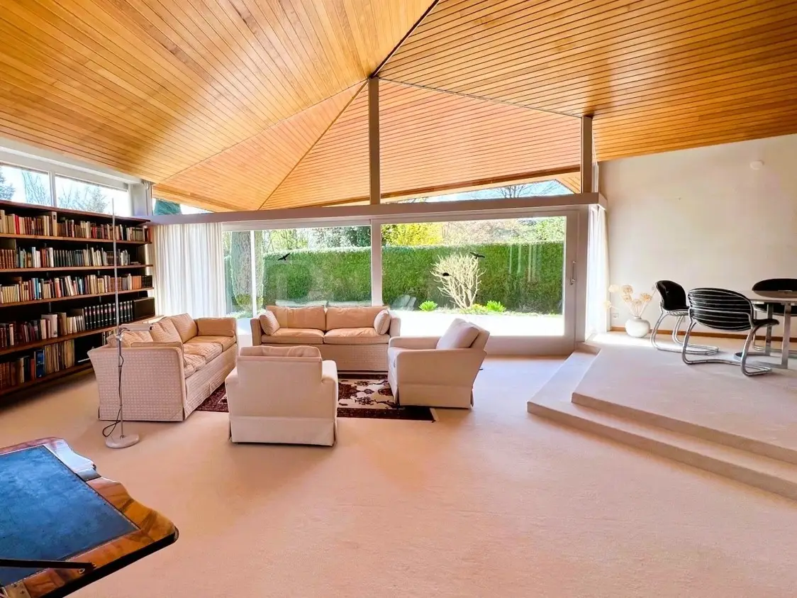 Welcome to your new home! In one of the most sought-after locations in Bad Homburg, the picturesque Ellerhöhe, a unique architect's villa awaits you, which impresses with its sophisticated functionality and stylish design (similar to Bauhaus). The generously proportioned plot is located within walking distance of one of the city's most beautiful recreational areas, surrounded by extensive meadows and idyllic horse pastures. The city center, train station and spa gardens are just a few minutes' walk away, while schools and grammar schools are just a short bike ride away. Here you can enjoy the perfect combination of urban life and natural recreation! As you enter the house, you are greeted by a bright, inviting entrance area designed with elegant, light-colored natural stone. Practical, ceiling-high built-in units for your wardrobe ensure order and style. The hallway leads you into a functional kitchen, while the fantastic living and dining area forms the heart of the house. With ceilings opening up to the ridge, floor-to-ceiling windows offering views of the terrace and garden on all sides and a cozy fireplace area, a unique ambience is created. The living and dining areas flow seamlessly into one another and offer a wonderful view of the park-like garden - a little paradise for families. The spacious terrace invites you to enjoy the sun. The balcony in front of the bedrooms is like a box seat above the garden and forms a relaxing retreat. An outdoor seating area under a fruit tree in the lawn offers both sun and light shade! In the basement you will find a spacious, homely guest room and a bathroom, ideal for overnight guests. The house has a full basement and offers plenty of space for domestic uses, technology and heating (electric heating, underfloor heating), as a workshop, wine cellar or storage space - a particularly large room with natural light is ideal as a playroom, hobby room or fitness room. The property is in a very well-kept condition. Contemporary design options (built in 1971) would be ideal for restoring the villa to its former glory. You can bring in your own personal taste and realize your own ideas. Alternatively, a new development could also be considered. The legally valid development plan 102 1V indicates the following utilization: purely residential area, open construction with a maximum of two residential units, one full storey and roof, the floor area ratio is 0.2. This special real estate offer is aimed at families and couples who have a penchant for unusual design and appreciate functionality. Take advantage of this rare opportunity to be inspired by this magnificent villa on Ellerhöhe and discover your new home!