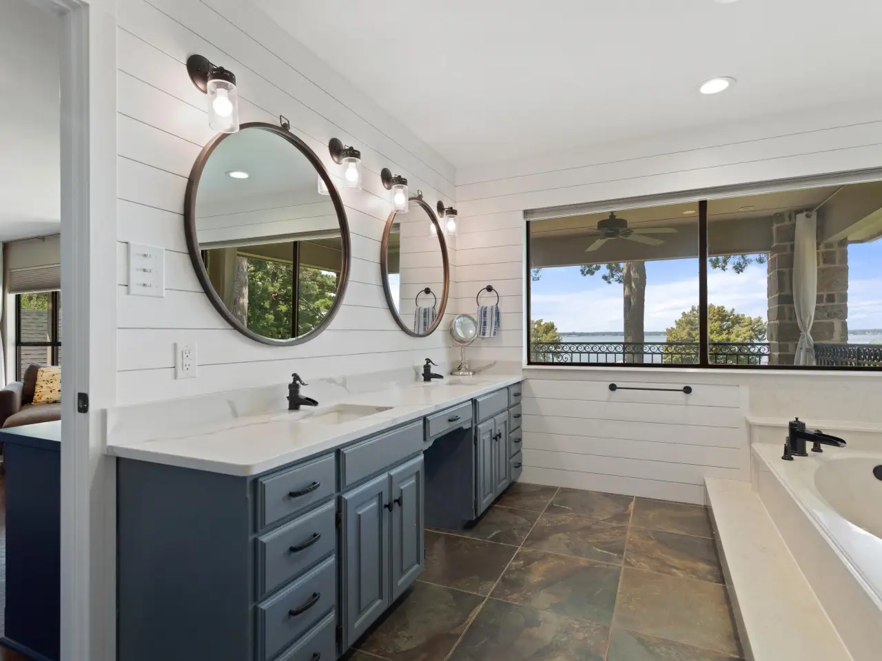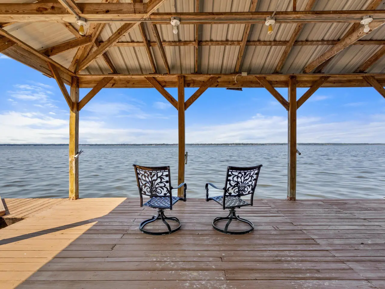 This stunning 3,850 sq. ft. home is beautifully situated on a half-acre lot along the shores of Lake Palestine. Offering four bedrooms and three and a half baths, this property is designed for both comfort and entertainment. The home features a massive two-level outdoor entertaining space with a see-through fireplace enjoyed from both levels, perfect for gathering year-round. The private third-floor primary suite includes a spacious ensuite and its own balcony with sweeping lake views. Out on the water, the property boasts a fully equipped boat dock with a covered boat lift, double jet ski lift, and a shaded patio area for lakeside relaxation. Recent updates include a new roof 2023, replaced entire entertaining deck on main level 2023, ensuring peace of mind and long-term enjoyment. Replaced seawall 2022, Three HVAC units one replaced in 2022, new water heater 2025. This is truly a one-of-a-kind property and an absolute must see for anyone seeking luxury lakeside living on Lake Palestine.