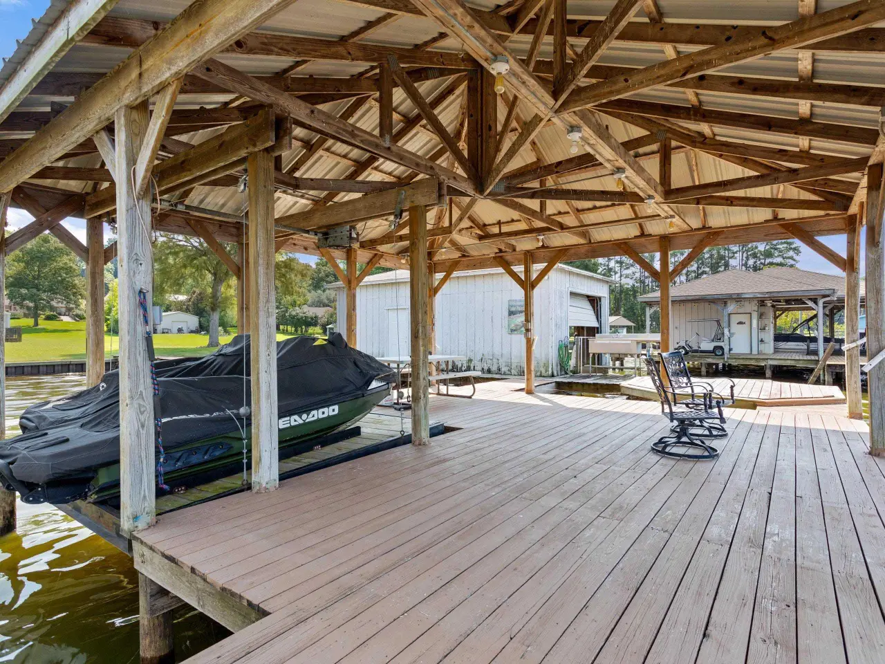 Fully equipped boat dock with covered boat lift and jet ski lift