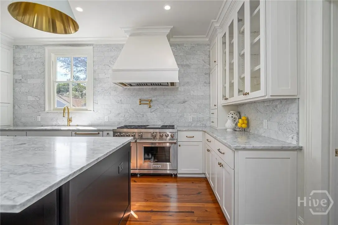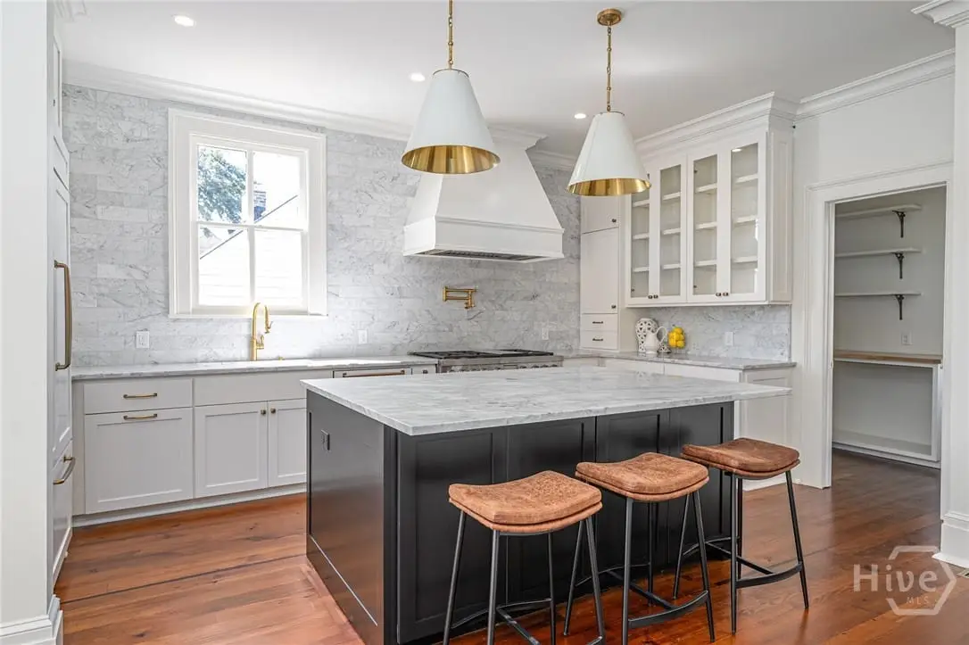 An architectural jewel in the heart of Savannah’s Historic District, 501 E. Huntingdon Street is a masterful blend of 19th-century design and modern craftsmanship. With its mansard slate roof, ornate brackets and twin front entries framed by gas lanterns, this home's façade is nothing short of breathtaking and commands attention from every angle. The result of a multi-year collaboration between Sottile & Sottile Architects and JAK Homes, the residence spans over 4,000 square feet with original heart pine floors, soaring ceilings, and refined millwork throughout. The marble kitchen showcases custom cabinetry, high-end appliances and a spacious pantry, while the home also includes an elevator for effortless living. The primary suite encompasses the entire second floor, complete with a spa-like bath, clawfoot tub, and expansive dressing room. Multiple porches, lush outdoor spaces, and a rare two-car garage complete this one-of-a-kind Savannah landmark.