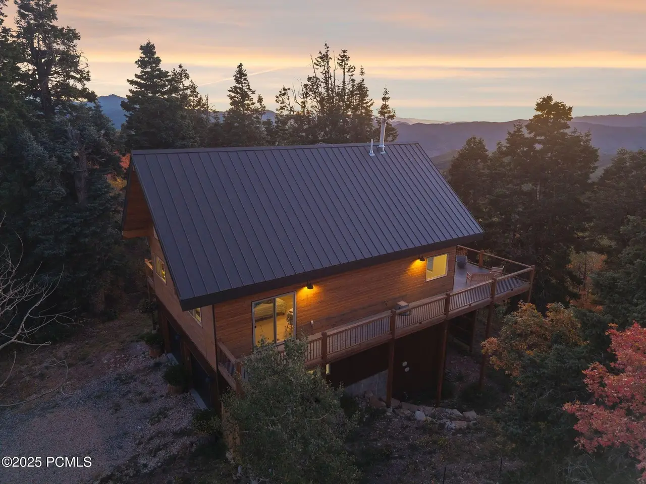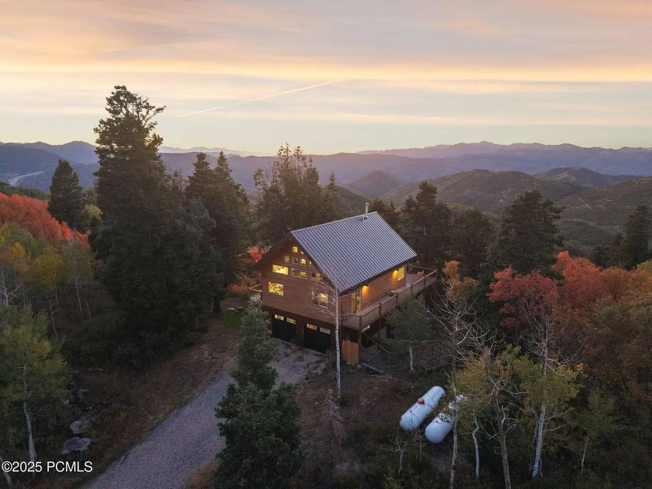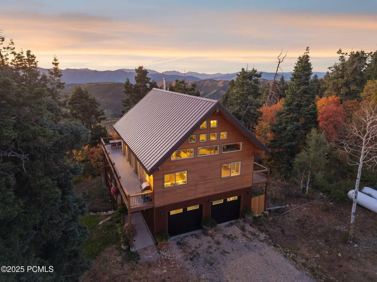 Custom built in 2019 and framed by 100 year old Fir Trees, perched atop a mountain is what the locals call Skyfall. Rustic and modern living seamlessly merge to create a peaceful private retreat in this turnkey property, which was meticulously designed by the owner with no details overlooked. A once-in-a-lifetime opportunity to own 12.54 acres in the pristine Wasatch Mountains backing up to thousands of acres of open space. The property is surrounded by mature Aspen, Maple and Fir Trees with breathtaking views of every major ski resort in northern Utah, the Wasatch, Oquirrh and Uinta Mountain Ranges. Enjoy evenings spent on the expansive deck as the sunset reflects off The Great Salt Lake. Oversized windows and cathedral ceilings allow light to pour into the main living area throughout the year. The open floor plan allows for effortless indoor/outdoor living and is perfect for hosting. A cook's dream kitchen boasts bar seating for 5 people. With an oversized two car garage, large master bedroom, bath, laundry and walk-in closet, guest bedroom, guest bathroom, two mudrooms, a flexible loft/bunk room/home office space, and fully finished basement, this home is the perfect gathering place, weekend getaway, or dream home for a family. After a long day of skiing or mountain biking right from your front door, enjoy the six person Sauna and cold plunge, or put your feet up and settle in by the wood burning stove. During a full moon you'll be immersed in a symphony of wildlife - coyotes, owls, and elk. Skyfall was designed to embrace the incredible landscape and atmosphere of the high alpine, all while being just 15 minutes away from the amenities of Kimball Junction. This property is a rare gem.