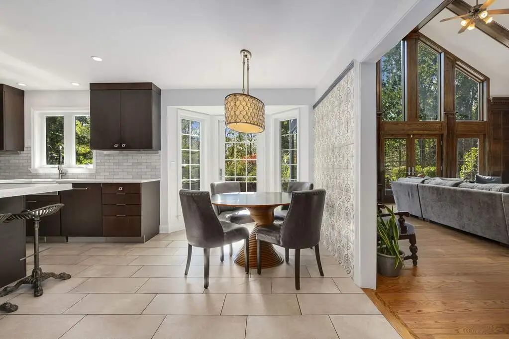 Nestled in Champion Forest Court, this serene Wheaton residence offers a seamless blend of natural beauty and contemporary luxury. A two-story, sun-filled family room with hand-carved wood paneling and limestone, imported from a Scottish estate in the 1920s, hosts an oversized limestone fireplace which embodies the heart of the home. A comprehensive two-year renovation by Donatelli Builders delivered a new roof, windows, and a fully updated interior, including all-new home automation, renovated Kohler baths, a new tankless water heater and a chef's kitchen. The kitchen features sleek quartz countertops, abundant storage, and an oversized central island-perfect for gourmet cooking and casual entertaining. This home offers two primary suites (both on the second floor), plus additional living spaces with newly painted walls and solid Harwood flooring throughout. Professional interior design enhances every room with bright light, and peaceful updated spaces. The partially finished attic provides a secluded retreat for reading, hobbies, or quiet work. Enjoy a beautiful, mature, professionally landscaped (and maintained) backyard on a double cul-de-sac lot. The expansive upper-level yard has a stone patio that runs the width of the home and is enclosed with a brick garden wall. The patio has 3 access points from the main floor. Perfect for outdoor cooking, birdwatching and entertaining. The expansive 3-car garage boasts an epoxy floor and easy parking. The full basement, and a comprehensive home automation system (including a whole-home gas generator, alarm system, exterior cameras, enhanced Wi-Fi, Ring doorbell, and exterior floodlights) ensure comfort and security. Located literally STEPS from the Prairie Path. Use the private maintained path, which you can access directly from the lower backyard; just up the hill, the Lincoln Marsh is an extension of your backyard. Close to the Wheaton Sports Center and the highly rated elementary school at the top of the hill. This home offers the perfect balance of seclusion and accessibility in a coveted Champion Forest location. First showings 11/8 12-2 Open HOUSE
