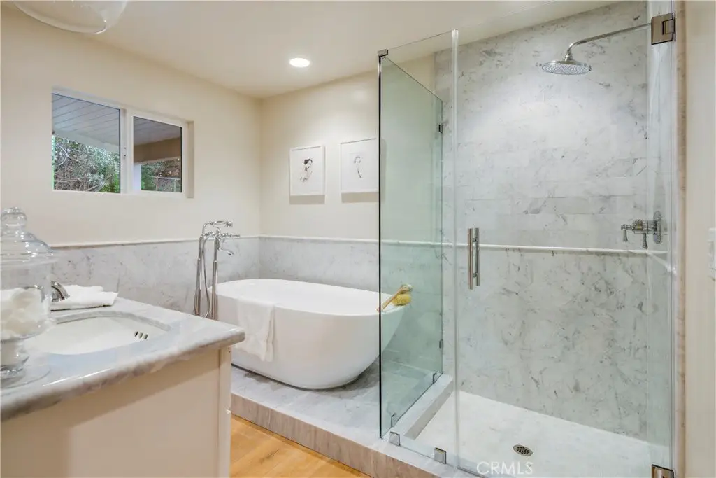 Set back off the street, on a sprawling blanket of grass, sits this spacious, one-level Ranch home. Extensively remodeled in 2015, this virtually new home features an excellent floor plan, centered around the beautiful kitchen. The adjacent family room, dining room and living room with fireplace all overlook the newly refinished pool and huge patio creating the ultimate summer entertainment area. The rear yard was professionally designed and includes numerous stack stone planters with lush landscaping and complimented with extensive lighting to entice any nighttime gathering. The master suite has a luxurious master bathroom and two walk-in closets. Wide plank hardwood floors, newer doors and windows, newer roof, newer kitchen and bathrooms. The front yard features a large covered front porch, a long driveway and a sprawling grassy play yard. Additional features include tankless water heater, newer AC system, upgraded electrical panel, new interior lighting, sewer line upgrade, hardwired for the Internet and so much more. Access to the award-winning Palos Verdes school district including Rancho Vista Elementary, Miraleste Intermediate School and the option to attend Peninsula or Palos Verdes high school. This Rolling Hills Estates home is a one-of-a-kind property sure to be at the top of everyone's list.