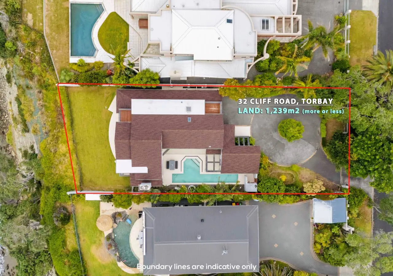 Step into a world of refined luxury and coastal grandeur perched on an expansive 1,239m² (more or less) cliff-top freehold site. This home offers an exceptional lifestyle opportunity that captures the essence of seaside living, making every day feel like a holiday. With sweeping, uninterrupted waterfront views to the islands of Auckland's Hauraki Gulf and one of the best vistas along the sands of Long Bay Regional Park, this property complements a privileged lifestyle most only dream of. Our overseas sellers have given very clear instructions to sell, offering this opportunity to the next fortunate family. Exceptional Design and Spacious Living - This impressive 400m² home has been meticulously designed to provide both luxury and lifestyle. The home caters effortlessly to family living and entertainment oceanside with dramatic seas views or around the privacy of our own landscaped pool. The thoughtful layout includes multiple independent living spaces, perfect for accommodating guests or providing separate areas for relaxation and activities. Entertaining is a dream from your generous designer kitchen and lounge, which flow seamlessly to oceanfront decking set amongst lush tropical gardens. The broad outdoor front verandah combined with the inner courtyard, complete with a 13-meter lap pool, provides classic indoor-outdoor flow. You will be impressed by the size and layout of the bedrooms and three well-appointed bathrooms. The exceptional master bedroom, appointed with its lavish ensuite and private balcony creating a private haven where you can wake to the sunrise across this ever-changing seascape. This is truly a privileged lifestyle. Fully fenced and tastefully landscaped, the property offers off-street parking for vehicles, a boat, jet ski, camper, and guests. Imagine your summer entertaining friends or relaxing by your private swimming pool, watching dolphins and other marine life, perhaps enjoying watersports directly in front of your own home, sailing, waterskiing, kite surfing, and kayaking, or simply playing with the kids on the sands of Long Bay Regional Park. You can literally be on the beach or in the water in minutes and return to this very special home. Just a stroll away from Torbay Village, cafes, and shops, as well as Winston's Cove, Waiake Beach, and the boat ramp. Escape the city's hustle, soak up the sun, and revel in the sensation of residing in a dreamlike holiday home. Built with cavity construction and extensive cliff stabilization this home is an exceptional opportunity. A building report and all council documents are available upon request. Our overseas sellers have given very clear instructions to sell offering you an exceptional opportunity for your family. Call for further information or to arrange your private appointment to view this remarkable property! Deadline sale: Closes on Wednesday 26 February 2025 at 2:00PM (unless sold prior)