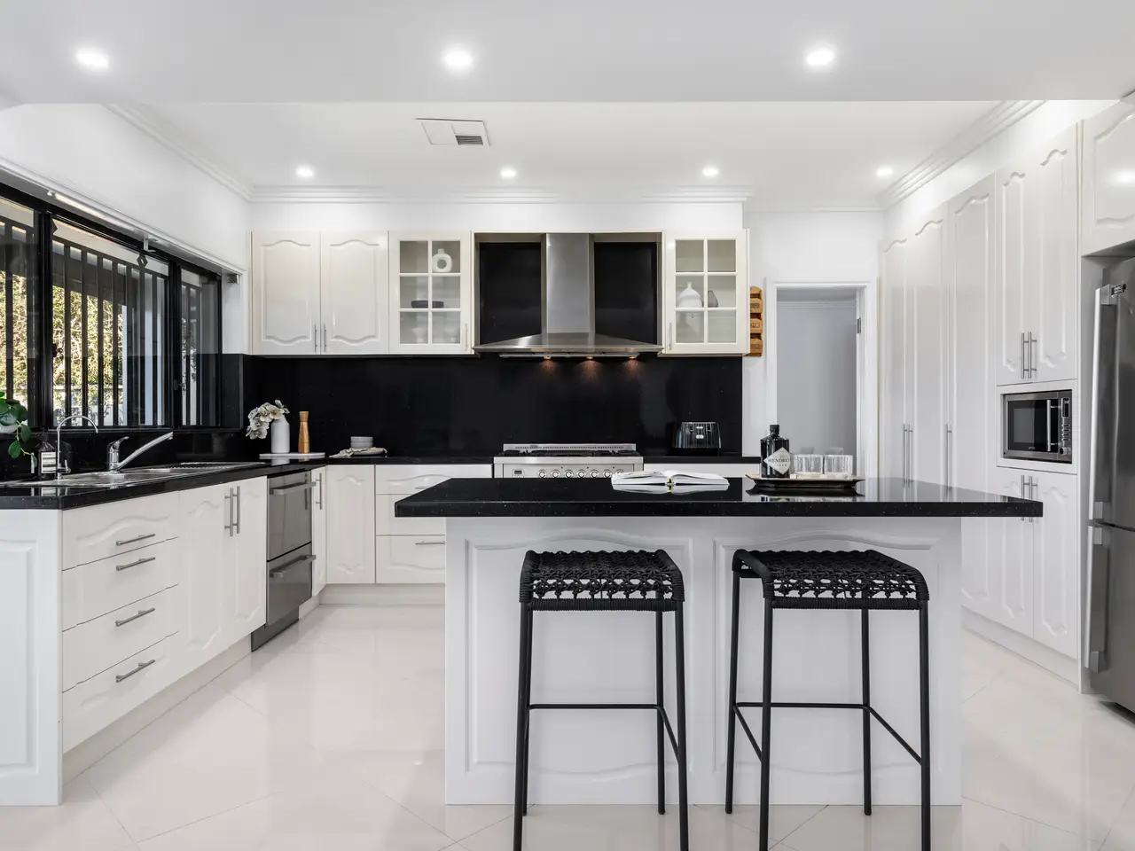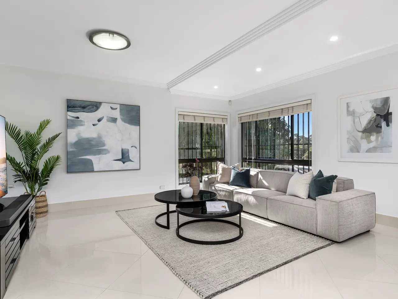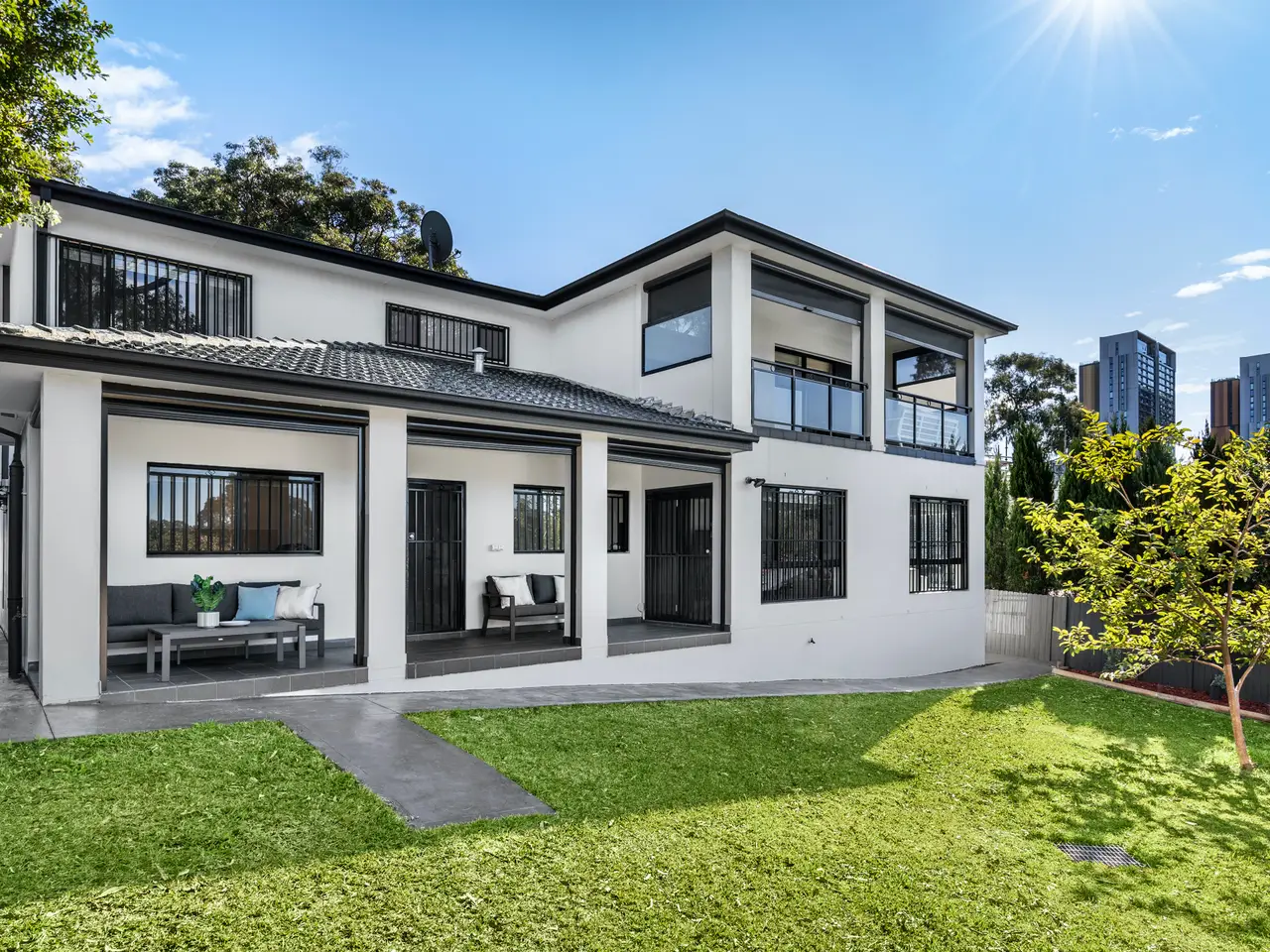 Designed and built to a luxury spec in a tranquil setting, this substantial dual-level home provides a lifestyle as elegant as it is effortless. With its perfect fusion of functionality and flair, it's just the right size for a larger family – flaunting three generous living areas, impressive master quarters, and picturesque backyard entertaining with views to the Chatswood skyline. Technology and comfort features abound, while prime proximity to quality schools, local cafes, city transport and Macquarie Centre delivers all the convenience you desire. – Grand double-height portico entrance with A/V intercom at the door – Low-maintenance tile and timber floors, glamorous lighting selections – Gourmet stone kitchen complete with island and 900mm Ilve gas range – Spacious master suite with private balcony; family bathroom with spa – Additional shower and W/C, Daikin ducted air, solar power, DLUG – Walk to restaurants and Lachlan Square, approx. 1km to Metro station – North Ryde Oval + RSL Club and great bush tracks on the doorstep