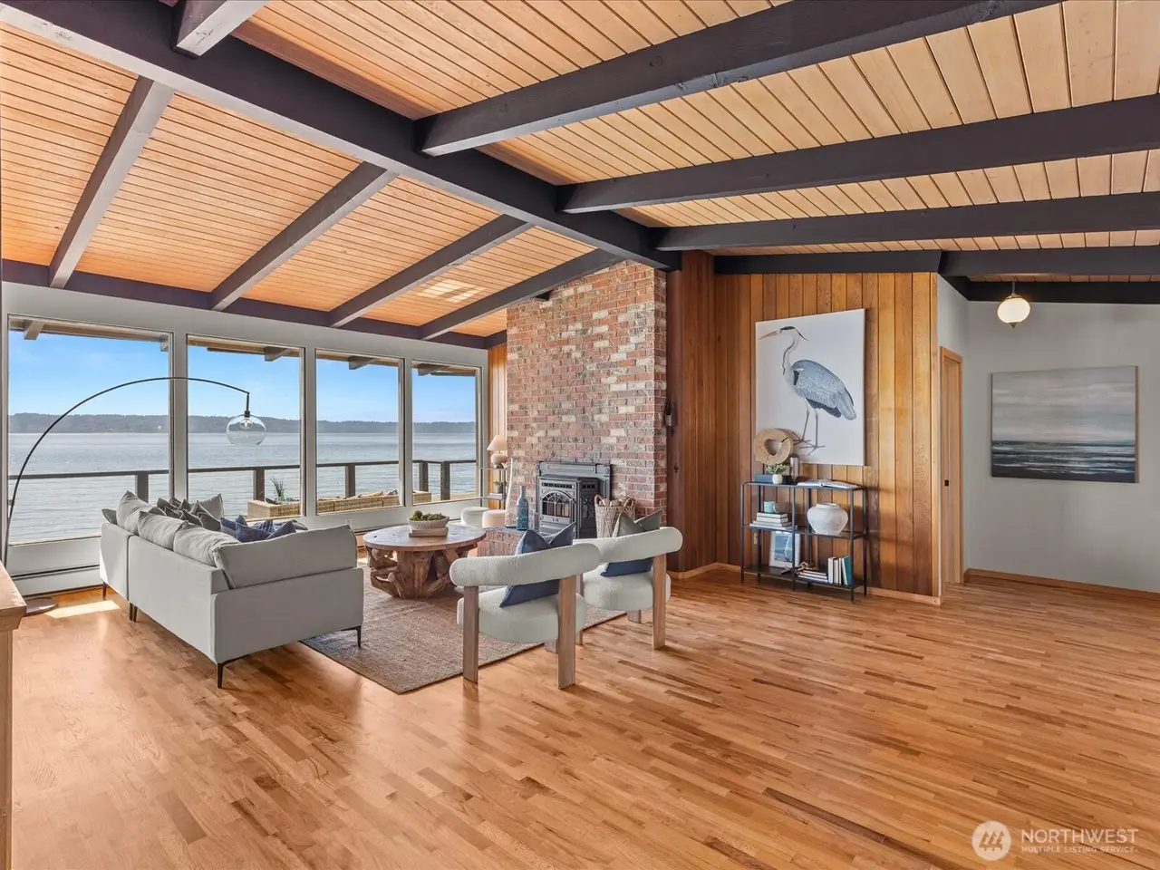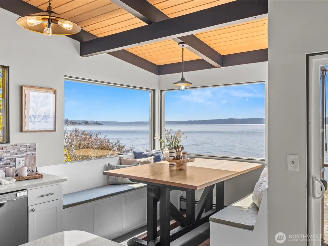 Tucked away in Seahurst, this waterfront haven offers over 180 of sweeping Puget Sound views and rare privacy on a coveted point. Unlike many homes in this area, you can drive up to your front door - no tram required. The beautifully updated kitchen features high-end appliances--double ovens, gas stove, built-in microwave--and cozy in-kitchen seating to enjoy sunrise with your coffee. Upstairs glows with refinished Red Oak floors and fresh paint, while the primary bath includes a heated mirror in the shower. Entertain on the main-level deck with front-row seats to orcas and seals. There's room for up to five vehicles, plus generator wiring and an outdoor shower--pure Northwest coastal luxury. 4th bedroom downstairs is non-conforming.