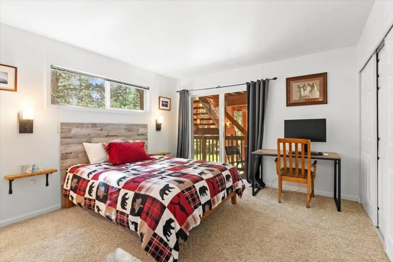 This home sits amongst an extraordinary alpine setting adjacent to greenbelt with the perfect amount of sun throughout. The main floor has cathedral ceilings with windows lining the entire back wall of the home's main floor allowing for a generous amount of sunlight into the home. There are two sliding glass doors onto an extended outside living area. The deck off of the main floor is made of Trex and runs the entire length of the home. The beautiful back lot backs up to protected land allowing forever natural beauty and privacy. In the winter, cozy up to the River Stone Fire Place which is a statement piece in this home. All three bedrooms are on the lower level and the primary suite that has a small private patio. There is a fun bonus loft above the living room that sleeps two adults in a queen bed and makes an excellent play space for children. Awake to the tree top views from the window right at the foot of the bed. A must have these days, there is a small office nook on the lower level that allows one to comfortably shut themselves away and work remotely while your guest are emerged in their vacation. The primary suite also has it's own separate private entrance and exit as there are stairs from it's private patio down to the back and side yard as well as to the covered cat walk on the lower front of the home with stairs leading to the garage and street. ADU! The 400 sq ft ADU is completely separate from the home has been brand newly remodeled. There is direct/separate entrance to and from this ADU and the garage & street level through a covered cat walk patio on the lower level of the front of the home and up a couple of stairs. This ADU also has it's own private patio and direct access to the side yard and back lot area of the property. This is a fantastic unit for guest or potential rental housing opportunities to share your property with others. Close to Northstar and the sandy-beaches of Lake Tahoe. National Forest Service trail system with biking, hiking and snowmobiling right around the corner.