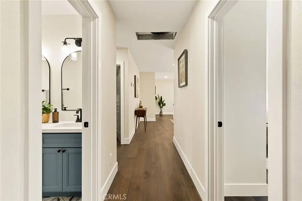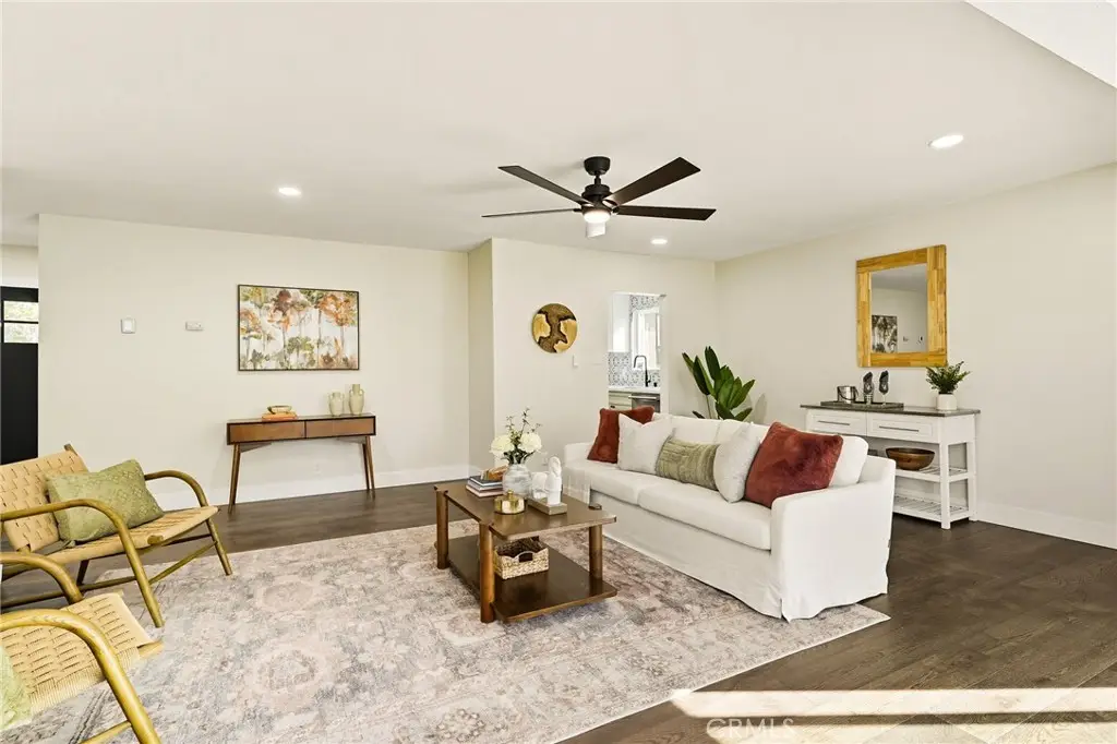 Welcome to this beautifully UPDATED 5 bedroom, 2-bathroom pool home. This home has an inviting curb appeal with an enclosed landscaped front yard and front courtyard area with new Saltillo tile. The kitchen has been updated with new two-tone cabinets, sleek counter tops, tile backsplash, stylish fixtures and stainless-steel appliances. The spacious primary bedroom has vaulted ceilings, a large walk-in closet with custom built-ins, and ensuite bathroom. Both the primary and hall bathroom feature new double sink vanities, stylish new fixtures, and custom tile work. Other features include freshly painted interior and exterior, new engineered hardwood flooring throughout the living area and bedrooms, new energy efficient vinyl windows, new plumbing and light fixtures, upgraded electrical panel, HVAC, new garage door and motor, and spacious indoor laundry room. This home is great for fun and entertainment with a great outdoor space. The private enclosed backyard has a large, covered patio, manicured yard and sparkling in ground pool and spa. There is a two-car garage and additional off-street driveway parking. Tax rolls show different bedroom and bath count and square footage.