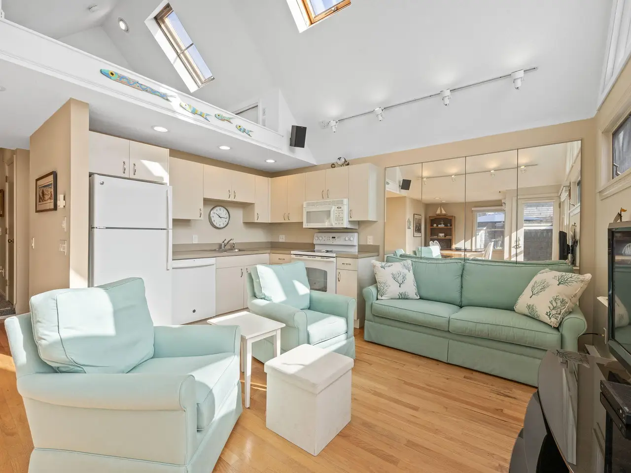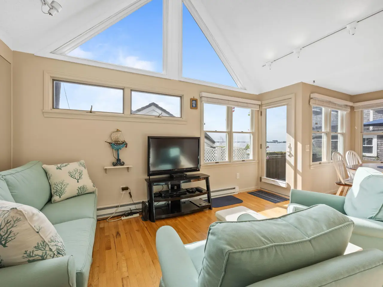 Here it is... no more searching for your perfect condo property ... a two bedroom, two full bath, 980 square foot condo on the waterfront! Located in the East End near St Mary's , this popular spot provides many amenities buyers look for in a Provincetown getaway and investment. The 4-unit association is professionally managed with reasonable fees. The Seller has even paid for a new roof and skylights to be installed soon . You will find the open living space of dining, living and kitchen with cathedral ceiling, full of light with custom cordless blinds. Enjoy excellent views of the harbor wile dining inside and out on the deck. The wraparound decking outside is generous and even allows for water views as well from the primary bedroom, complete with ensuite full bath w/shower.. The guest bedroom is generously sized as well with another full bath with shower/tub just outside the bedroom. Even the laundry and extra storage are tastefully located in a small enclosed area off the hall for convenience and noise reduction. An additional loft space in the cathedral ceiling area provides additional storage as well. The association allows rentals and pets. Seller offering financial stimulus to Buyers.