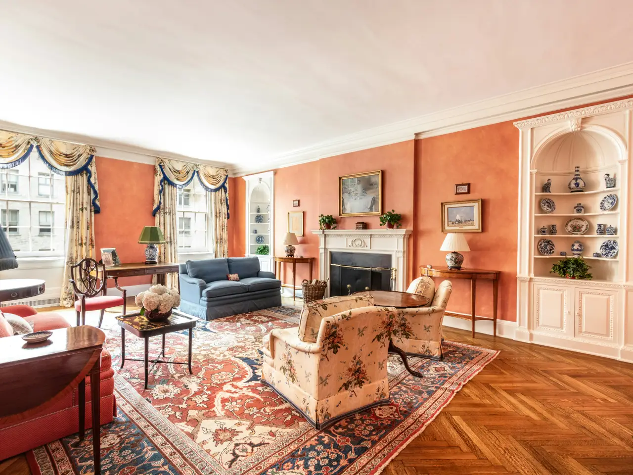 TURNKEY CANDELA 4 BED/4 BATH AT PARK & 72nd ST. Ideally located in one of Park Avenue's finest Rosario Candela Prewar Cooperatives at the corner of 72nd Street, this sun-flooded and beautifully renovated four bedroom/four bathroom residence has exquisite prewar detailing, grand proportions and magnificent architectural elements. The residence is in perfect move-in condition. A private elevator landing opens to an elegant square gallery, providing an impressive introduction to the home. Light streams in through 22 double-paned Pella windows spanning all 4 exposures Soaring ceilings enhanced by beautiful traditional moldings, tall doorways, elegant archways and pristine hardwood flooring may be found throughout. The spectacular 27 x 17 foot living room faces south and has a wood-burning fireplace enhanced by the original hand-carved mantelpiece flanked by twin inset arched bookcases designed by Rosario Candela. The adjacent library has additional custom bookshelves, beautiful crown moldings and a second wood-burning fireplace. A gracious and inviting 19 x 16 formal dining room with wonderful open city views over landmarked townhouses completes the entertainment rooms of the home. A sprawling and sundrenched 25 x 17ft corner chef's eat-in-kitchen features top-of-the-line appliances from Viking, Sub-Zero and Miele. Both the kitchen and adjacent pantry provide enormous amounts of cabinetry and storage. The pantry also has open city views, a Sub-Zero refrigerator/freezer with an ice-maker, and a Viking wine cooler. A separate windowed laundry room completes this wing of the home. The residence has four full bedrooms which are wonderfully sunny and have quiet open views to the east. Each of the bedrooms has a renovated bath en-suite. The bathrooms have top-of-the-line fittings and marble floors with radiant heat. The oversized primary bathroom has double sinks, classic marble walls and counters , and a walk-in shower. The fourth bedroom is located in the north wing of the residence and is currently being used as a study and fitted with handsome built-ins and a desk. There is a large windowed storage room assigned to the apartment, which could also function as a home office. In addition, there is smaller storage room immediately adjacent. Built in 1927, the limestone and brick Italian Renaissance building is one of the most distinctive buildings on Park Avenue. Residents of this prestigious white-glove cooperative enjoy the highest levels of service and privacy, as well as a recently renovated and enlarged gym. There is a 3% flip tax payable by the buyer, and the building now permits up to 50% financing.