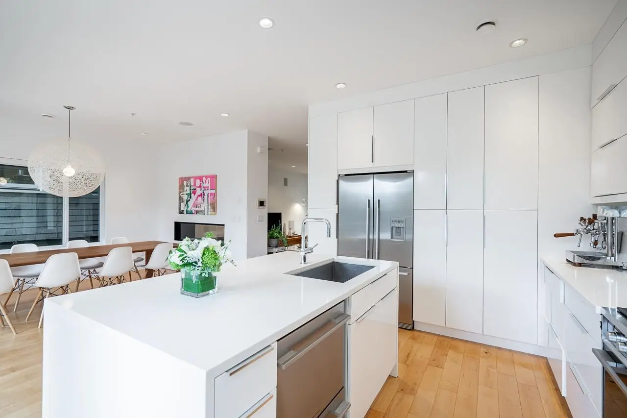 Step into this exquisitely built custom home with stunning designer kitchen & abundant outdoor spaces. The thoughtful layout is perfect & the contemporary Scandinavian design combines style & functionality. At the heart of this home is a breathtaking kitchen, perfect for culinary enthusiasts, outfitted with high-end stainless steel appliances, custom cabinetry, & luxurious stone countertops. An oversized island provides additional workspace & seating. The sleek, open design ensures that the kitchen flows into the adjacent dining room & a striking double sided gas fireplace connects you into the living area. French doors bring you to the front & back decks & into the low maintence Zen Garden. Oversized 2 car garage as well.