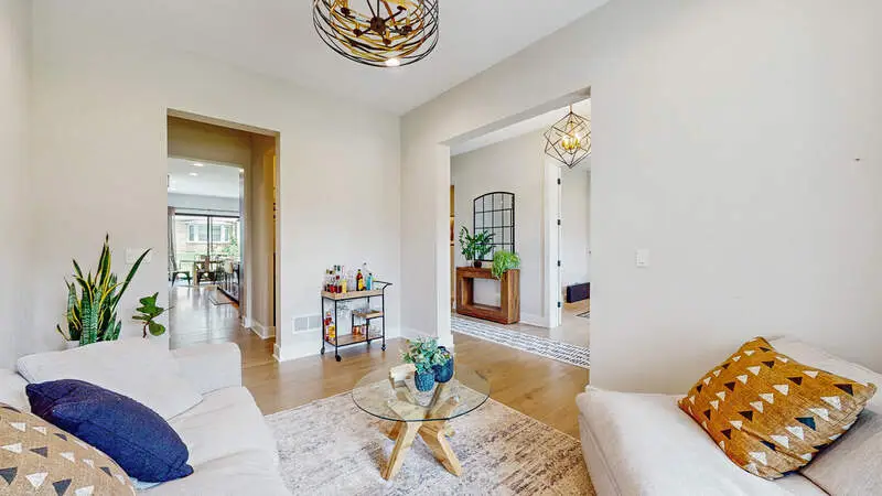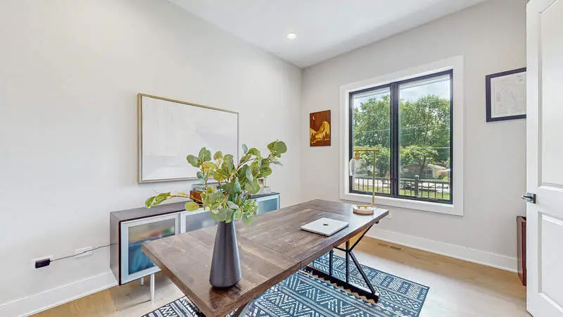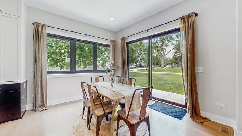Better than new custom luxury home located on a desirable corner lot at the Eagle & Bauer intersection, just 10 blocks from downtown Naperville. Built only 8 months ago, this modern home offers over $350,000 in high-end upgrades, an exceptional blend of luxury, functionality, and location, at a price point that simply can't be replicated with new construction today. The home is situated on a dead-end street with a private driveway and a spacious backyard featuring a patio that overlooks Eagle Drive. Designed for today's lifestyle, some of the new construction upgrades included are Hardie-board siding with NichiHa accent cladding, larger bedroom sizes, high-end appliances, premium hardwood floors with a custom light-stain finish, Pella Signature Series black-framed windows, an accordion window that opens to the patio, teak-tiered ceilings w/ ambient lighting, upgraded HVAC w/ a whole-house air-purification system, smart home capability all with a spacious open-concept layout filled with natural light. The designer kitchen is a true centerpiece, featuring Dacor appliances, a hidden walk-in pantry, a butcher block accent, upgraded-thick quartz countertops, and an accordion-style bar window that opens to the patio. The spacious main floor includes a flexible front living or dining room, a private office with French doors, a built-in workstation nook, and a large mudroom with custom cubbies. The fireplace is clad in durable indoor Hardie board and serves as a sleek focal point in the family room. Smart home infrastructure is fully wired and ready for integration with ELAN or Control4, including indoor speakers, smart lighting, and plug-and-play outdoor security camera connections. Upstairs, the primary suite features tray ceilings, dual walk-in closets with upgraded custom cabinetry, and a spa-inspired bathroom that boasts a teak ceiling accent with ambient lighting and an oversized tri-head shower system. Two bedrooms share a Jack-and-Jill bath, while the fourth bedroom has a private en-suite bathroom. Additional features include a stylish powder room with a vintage wall-mounted sink, a full basement with 9-foot ceilings, and large egress windows that allow for up to two additional legal conforming bedrooms. There are also rough-ins for a bathroom, wet bar, or kitchen, which could make for a perfect in-law suite or entertainment area. The home blends modern custom design with unmatched functionality, all within walking distance to parks, dining, and shopping in downtown Naperville. Privacy fence installation is currently being coordinated with neighbors.