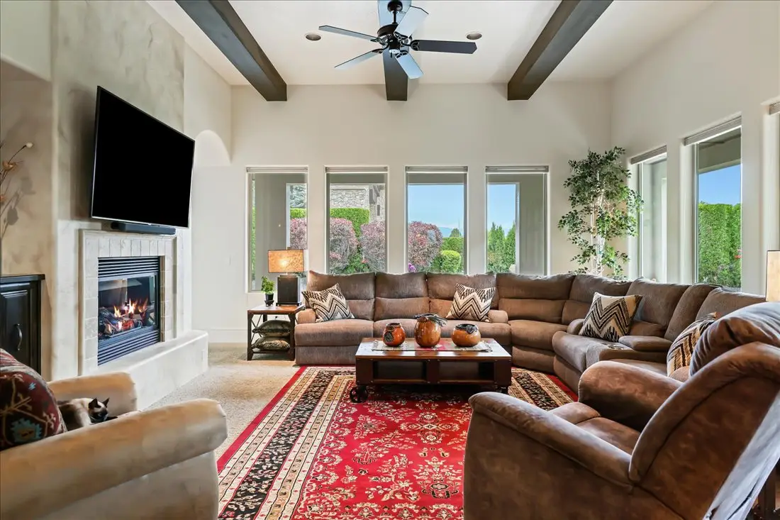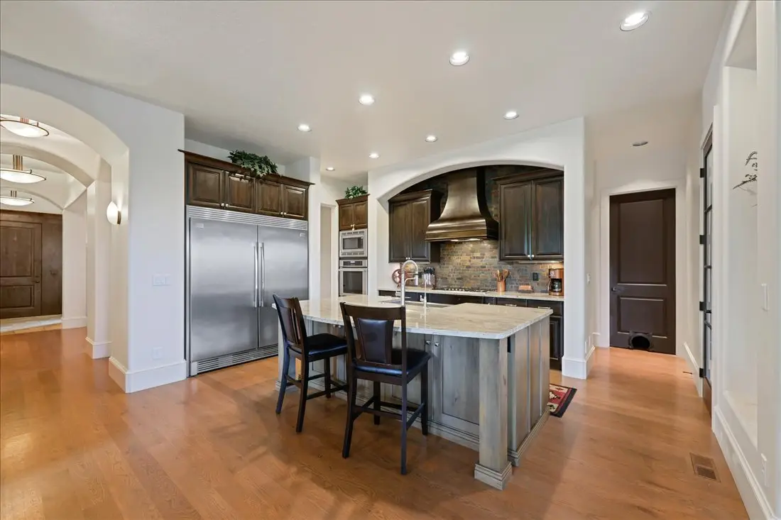 Experience refined luxury in Eagle’s premier Corrente Bello community. This thoughtfully designed home offers timeless craftsmanship, modern convenience, and stunning views of Bogus Basin. The open-concept layout is filled with natural light and features a gourmet kitchen with Thermador appliances, a 65" built-in refrigerator/freezer, oversized island, and double pantries. The main-level primary suite is a private retreat with a spa-like bath, soaker tub, walk-through shower with dual heads, and a huge walk-in closet with utility room access. Two additional bedrooms share a Jack-and-Jill bath, while an upstairs bonus room with half bath adds flexibility. Notable upgrades include central vacuum, water softener, reverse osmosis system, new exterior paint, epoxy-coated garage floors, and an oversized 4-car garage. Enjoy the wrap-around patio, private hot tub, and low-maintenance landscaping. Community pool, cabana, tot lot, bocce court, and walking paths complete the package!