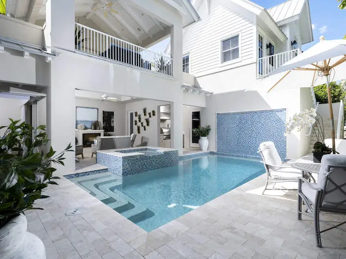 Mustique of Old Naples a great private location just steps for the 5th Avenue action. As you approach the front entry door you will notice the beautifully manicured garden. This stunning custom-built home by Waterside Builders was finished in the spring of 2014. And looks as new as the day the present owners bought. Custom finishes, gourmet Kitchen are just part of the highlights of this 4-bedroom 4 bath and 2 half bath pool home. first and second level entertaining areas featuring a fireplace and summer kitchen on the pool level. One block from Fifth Ave S. and a short 5 blocks to the beach. The 4th bedroom/cabana is a guest house over the garage with its own private entrance. Wow! This a must see. You will be amazed with the finishes in this beautiful residence that you will want to call your home.