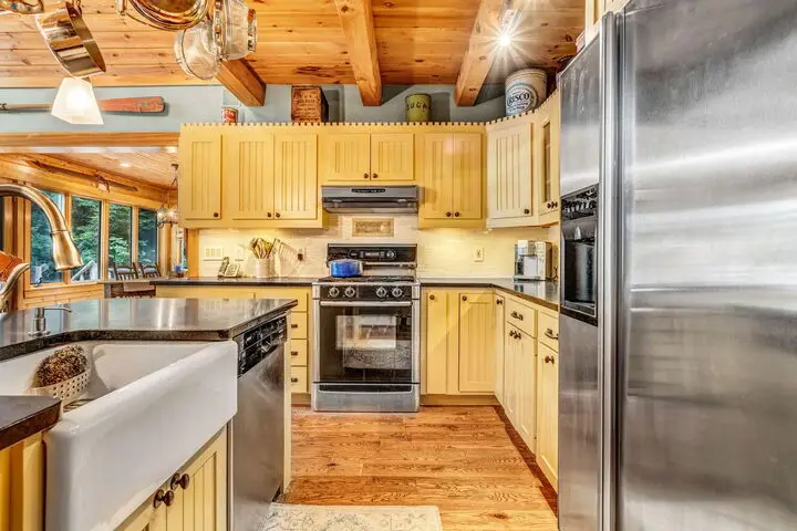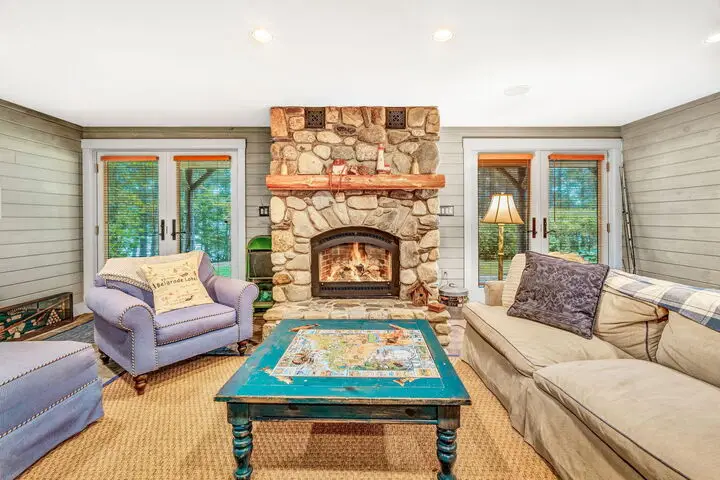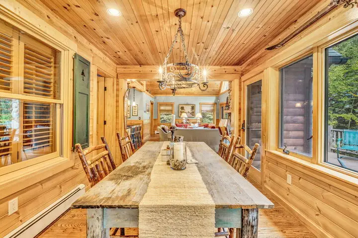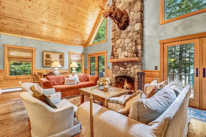 GREAT POND First time offered — a rare opportunity to own a custom-built, year-round log home on Great Pond, the most celebrated of the Belgrade Lakes! Set on nearly an acre in one of the lake's most highly desired neighborhoods, this 4-bedroom (3BR septic), 4-bath retreat combines natural materials, artisan craftsmanship, beautiful gardens & modern comforts. With 100 ft of deep-water frontage, private dock & sunrise views, the property offers both privacy & connection to one of Maine's most iconic lakefront communities. Welcoming foyer opens to a light-filled great room where soaring cathedral ceilings, wood-burning stone fireplace & wall of windows frame unobstructed lake views. The open dining & kitchen area features custom cabinetry, stone counters & center island, flowing seamlessly to the expansive lakeside deck. Primary ensuite includes radiant heat, steam shower, walk-in closet & a private deck wired for a hot tub. Two additional bedrooms & full bath complete the main level. Upstairs, an ensuite guest bedroom offers privacy with a separate loft suitable for a home office or additional guests. The daylight walkout level was designed for gathering, featuring a family & media room with gas fireplace, a game room with pool/ping pong and built-in Murphy bed. Full kitchenette/large laundry room with three refrigerators—full-size, wine & beverage—supports entertaining. The oversized custom-tile shower with stone floor offers spa-level comfort. Walkout access leads to a bluestone patio framed by professionally landscaped gardens, stonework & outdoor lighting. Walk to ''The Mountain'' trailhead, access Maine's snowmobile trail system or enjoy world-class golf at nearby Belgrade Lakes Golf Course. Sugarloaf Ski Resort is just over an hour away. A short walk brings you to the Belgrade Lakes Village with its charming General Store, restaurants, and wine & cheese shop. Less than 30 minutes to Waterville or Augusta, 60 minutes to Sugarloaf & under 90 minutes to Portland.