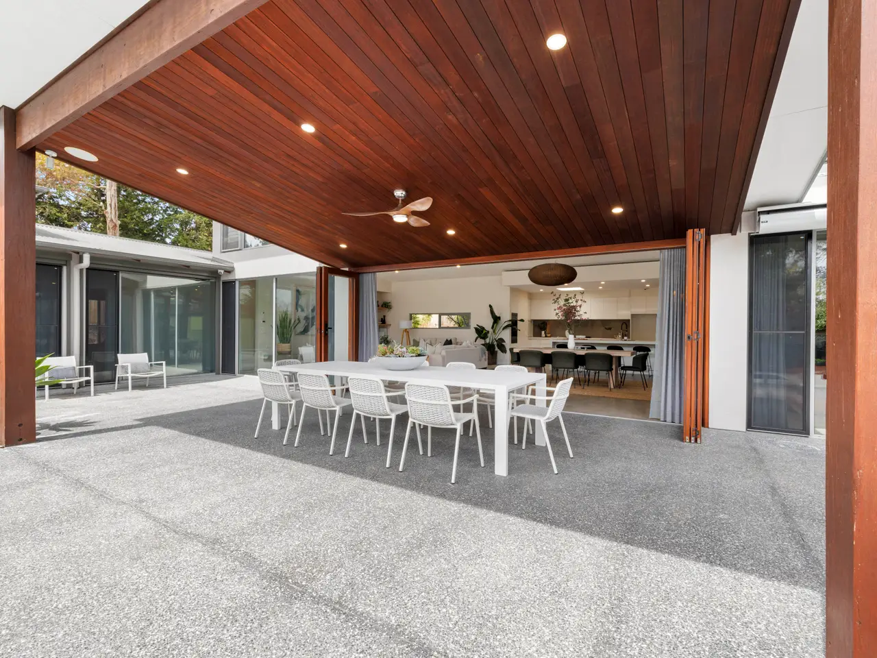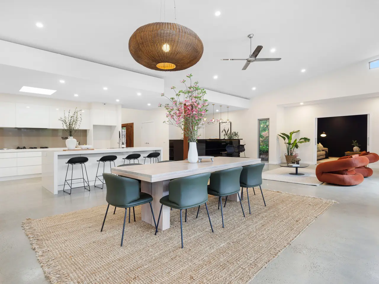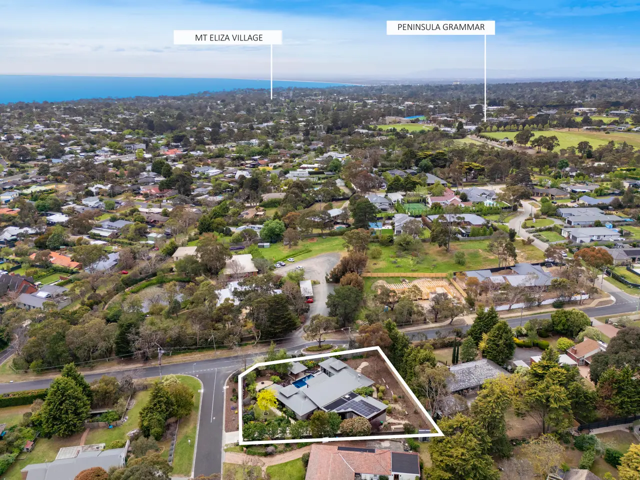 ~ Come and experience the lifestyle at 1 Cameron Way, Mt Eliza Saturday 8th November, 2-2:45pm, champagne and cheese tasting on arrival~ A masterfully executed blend of contemporary architecture and resort-style living, this exceptional c2011 residence showcases the very best of modern luxury. Distinguished by its environmentally conscious design, the home's deliberate north-facing orientation harnesses optimal natural light, while the thoughtful architecture works seamlessly with the site's natural conditions-evidence of the meticulous planning that defines this exceptional residence. The home's statement façade, rendered in sophisticated neutral tones and feature stone, sits beautifully within its leafy surroundings. Set back from the street via a private driveway, the substantial 1,937sqm (approx.) grounds reveal a landscape of genuine distinction. The recent professionally landscape designed gardens are a highlight in themselves: beautifully composed with specimen Japanese maples, ornamental pears, and layered subtropical plantings that evoke the tranquility of a serene retreat. Enter to discover gleaming polished concrete floors and an impressive sense of scale, as six-metre ceilings soar overhead and draw the eye toward the stunning centrepiece: a solar and gas-heated in-ground pool with integrated spa, beautifully appointed poolside pavilion, and sweeping entertaining terrace finished in newly laid premium polished concrete. The pool area has been enhanced with a new pump system and elegant waterfall feature, while frameless glass balustrades ensure uninterrupted views across the manicured landscaped gardens. The home's pavilion-inspired layout creates an effortless connection between indoors and out. Living spaces flow seamlessly through newly installed timber bi-fold doors to the magnificent alfresco area, where a timber Skillion ceiling and integrated fan provide comfortable shelter for entertaining on the grandest scale. This impressive outdoor space, with its generous polished concrete surface, becomes the natural gathering point for summer entertaining by the pool or relaxed evening occasions under the stars. The gourmet kitchen features Caesarstone benchtops throughout, centred around a substantial island bench with integrated sink and dishwasher, complemented by premium new Smeg built-in oven and convection microwave. A stylish wet bar with expansive wine storage sits adjacent, perfect for effortless hosting. The open-plan dining area and lounge, warmed by a new contemporary gas fireplace, connect to a separate rumpus and fully fitted theatre room, creating versatile spaces for family life and entertainment. The accommodation is thoughtfully zoned for privacy and functionality. The luxurious master suite occupies its own private wing, complete with walk-in robe, stone-appointed ensuite featuring double vanity, and a striking terrazzo bathtub positioned to overlook a secluded courtyard. Separately zoned, three additional generous bedrooms are serviced by a well-appointed family bathroom with separate powder room. A dedicated home office provides a quiet workspace, while a substantial laundry with rear access completes the practical layout. Recent substantial investment in premium infrastructure and finishes sets this property apart. A new hydronic underfloor heating system with contemporary boiler delivers luxurious warmth throughout the cooler months. A comprehensive automated irrigation system, recently installed throughout, ensures the gardens maintain their immaculate presentation year-round whilst expansive newly laid exposed aggregate pathways wind through garden rooms complementing this landscaped masterpiece. Energy-efficient LED lighting has been installed throughout, while comprehensive Crimsafe security screens and doors provide robust protection without compromising aesthetics. Security is further enhanced by a cutting-edge alarm system featuring night-time facial recognition capability, with access controlled via beautifully crafted custom wrought iron feature gates that make a striking first impression. Further appointments include reverse-cycle air conditioning, ceiling fans, plantation shutters, strategically placed highlight and louvre windows for natural ventilation, and a heavy-duty in-ground water tank. The double lock-up garage provides secure internal access and ample storage. Positioned among the Peninsula's most prestigious addresses, this exceptional property sits moments from Peninsula Grammar School and Toorak College, the boutique shops and cafes of Mount Eliza Village, and the pristine coastline of Moondah Beach. More than just a residence, this is a carefully crafted sanctuary offering year-round luxury living in one of the region's most sought-after locations.