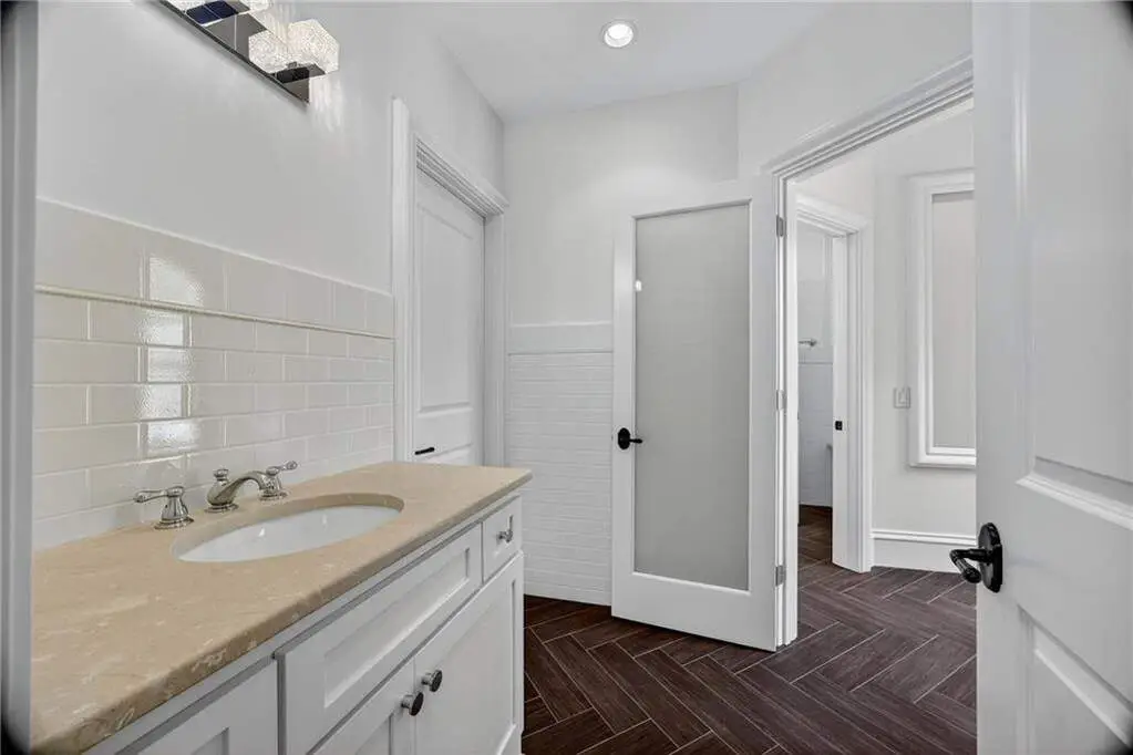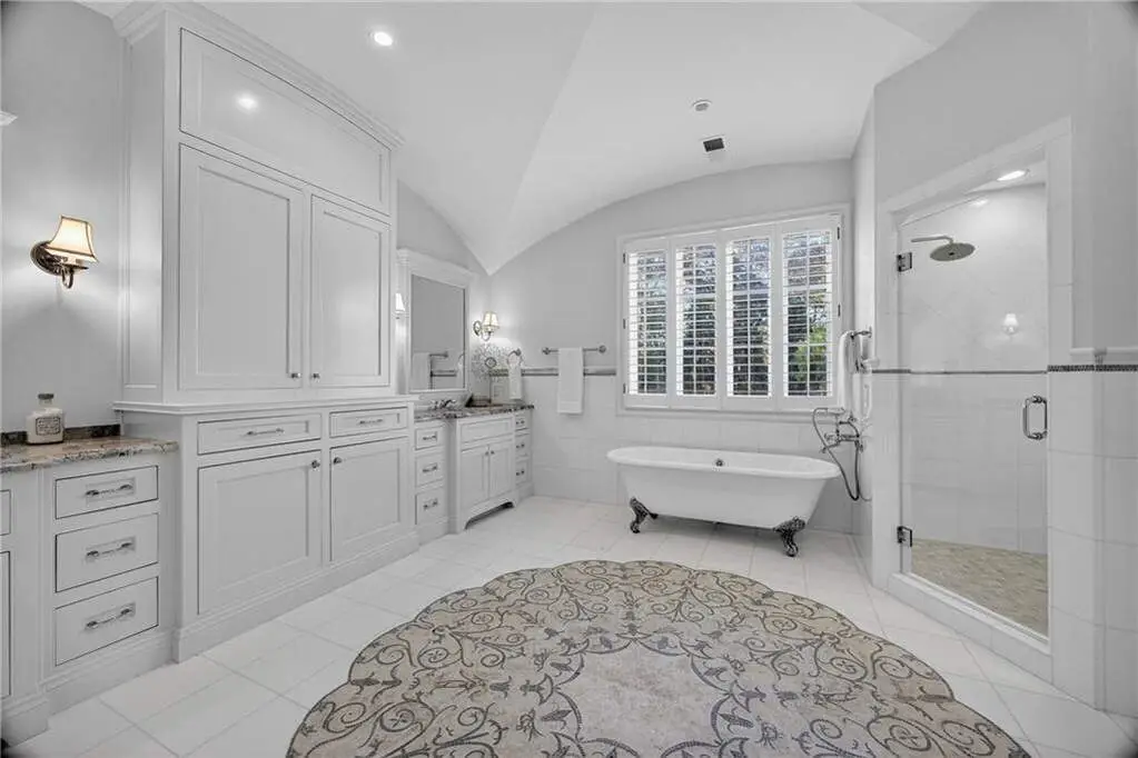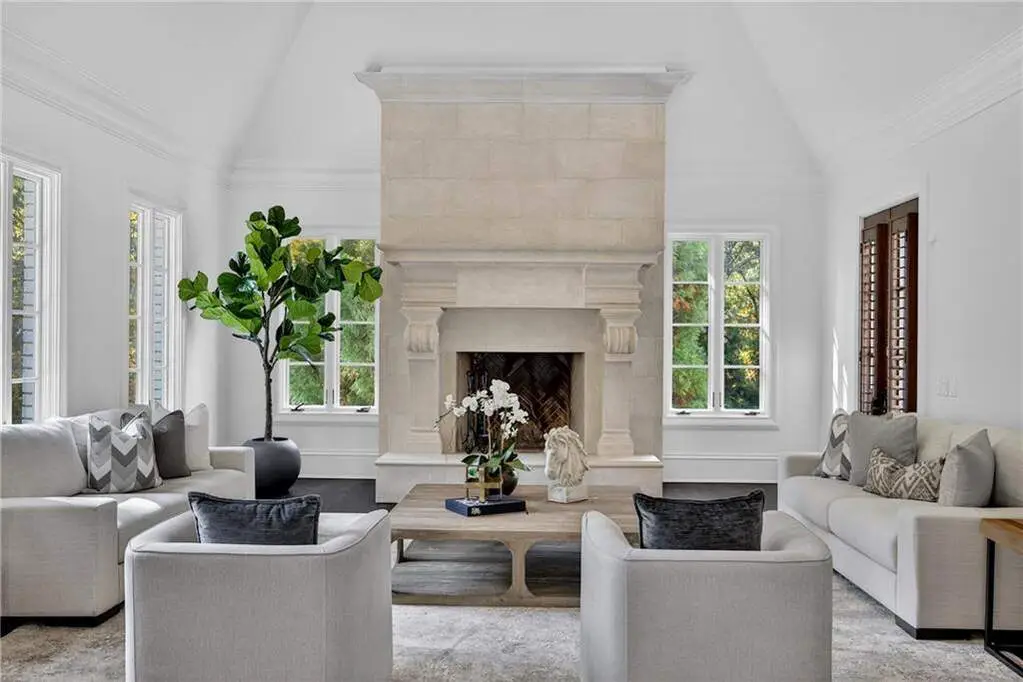 Located on a quiet cul-de-sac in one of Buckhead's most coveted neighborhoods, this stunning custom home combines timeless architecture with modern luxury. Behind stately gates, the residence features elegant symmetry, a slate roof, and beautifully landscaped grounds. Inside, light-filled living spaces showcase exceptional craftsmanship, from arched French doors to rich millwork and designer finishes. The chef's kitchen impresses with marble counters, professional-grade appliances, and a striking copper hood, huge granite island opening to inviting living and dining areas. The fireside primary suite on the main level offers vaulted ceilings and a spa-like marble bath with dual vanities and a soaking tub. Multiple terraces overlook the private, wooded backyard with a heated pool, creating a perfect setting for entertaining and relaxation. Newly refinished dark walnut hardwoods flooring and fresh paint throughout. Finished daylight terrace w/ bed/ bath, large flex space, storage, bar area. This exceptional home blends privacy, sophistication, and proximity to Buckhead's best shopping, dining, and top-rated schools.