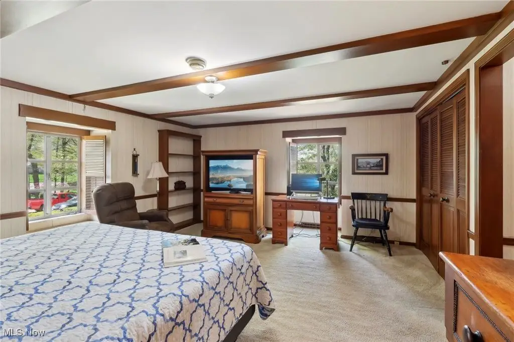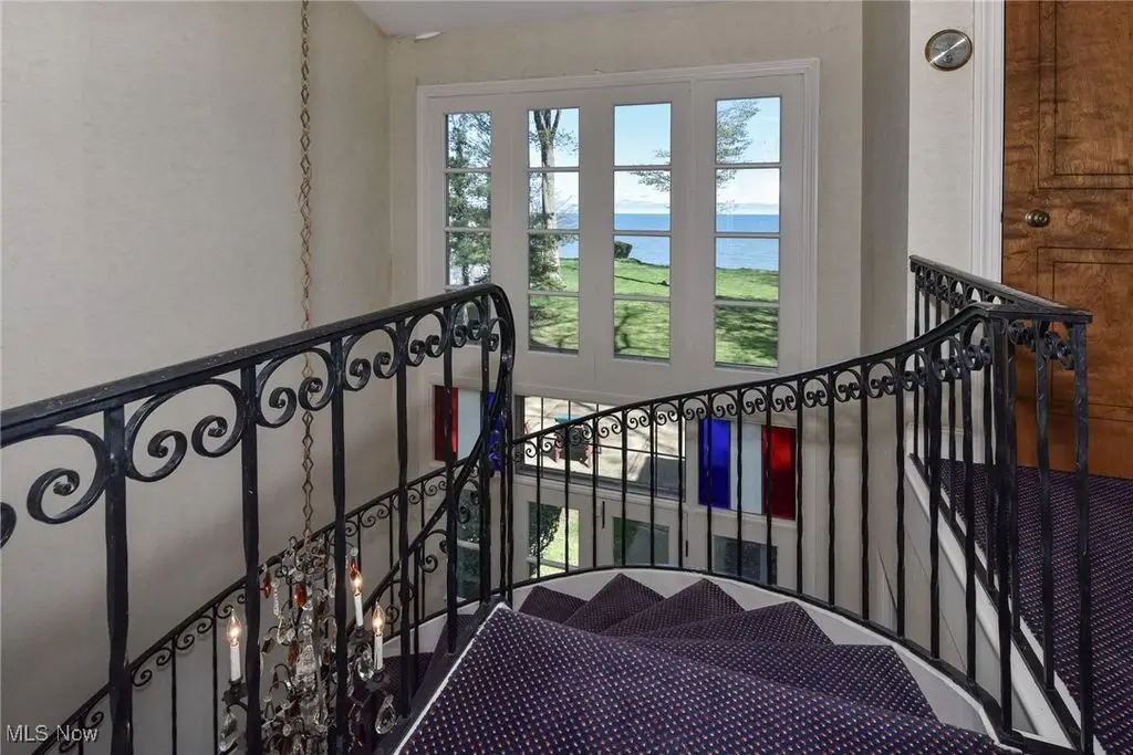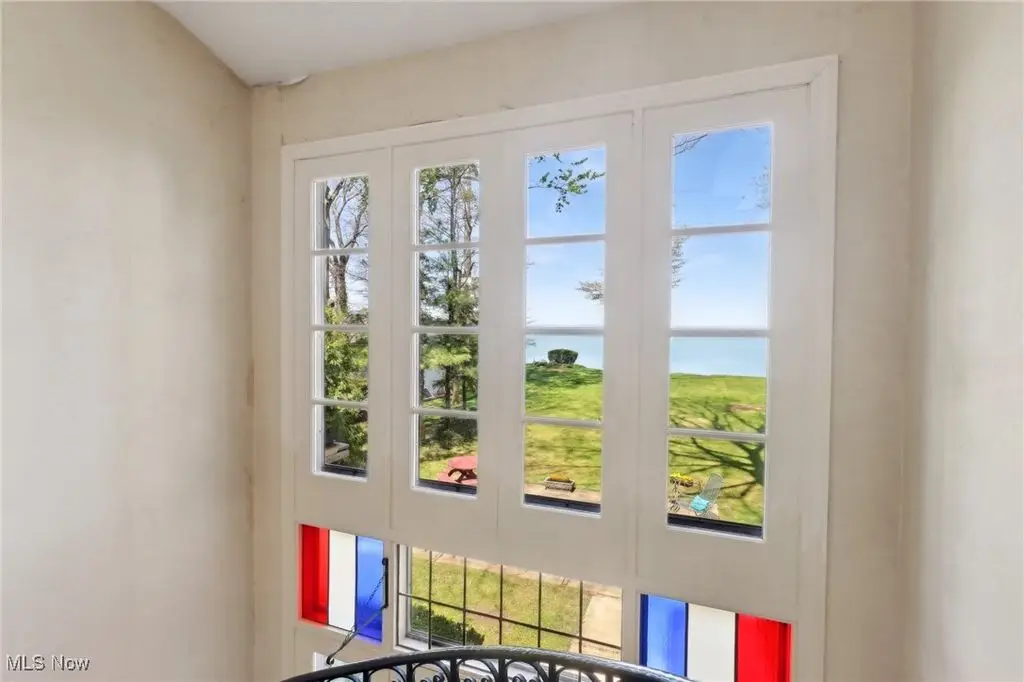 Unveil the majesty of Lake Erie with this timeless and elegant Country French estate, offered for the first time in over fifty years. Tucked away on more than an acre of beautifully landscaped grounds, this exceptional property offers an unmatched combination of privacy, charm, and breathtaking lake views from nearly every window. As you arrive, the home's classic architecture and serene setting immediately captivate, with a gracious front courtyard welcoming you in. Step inside to find a grand curved staircase and expansive windows, highlighted by a stunning stained-glass feature that frames the water beyond. The formal living room invites gatherings around a warm fireplace, where sunset views paint the room in soft hues each evening. A marble-topped built-in buffet adds character to the formal dining room, where French doors open to a tranquil patio - perfect for outdoor dining. The family room offers a cozy retreat with a beamed ceiling, sandstone fireplace, and generous space for relaxing or entertaining, all enhanced by views of the lush property and shimmering lake. The bright, functional kitchen provides ample storage and counter space for the home chef. Upstairs, the spacious primary suite is a sanctuary with ever-changing lake vistas, a private ensuite bath, and abundant closet space. A hallway bath and two additional bedrooms, complete with built-in bookcases, offer comfort and charm, while a fourth bedroom with its own bath provides the ideal setup for guests, teens, or in-laws. With multiple patios, an enchanting lakefront yard, and a sense of serenity woven into every corner, this once-in-a-lifetime property offers a rare opportunity to own a piece of lakefront paradise.