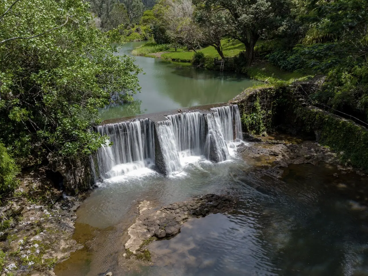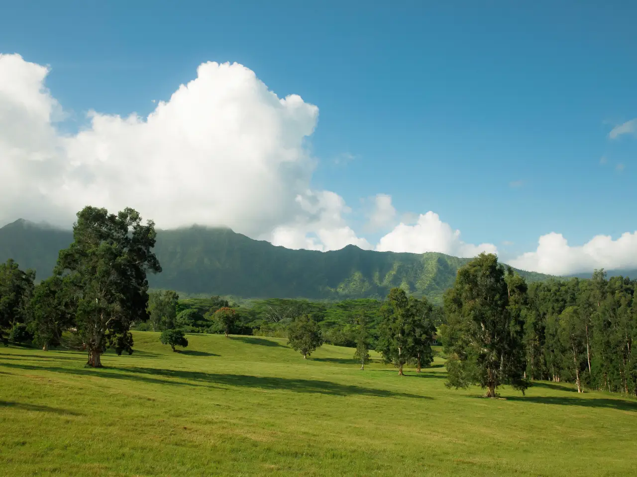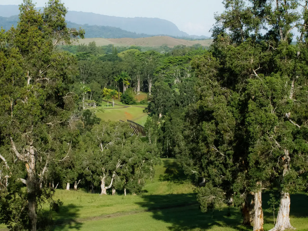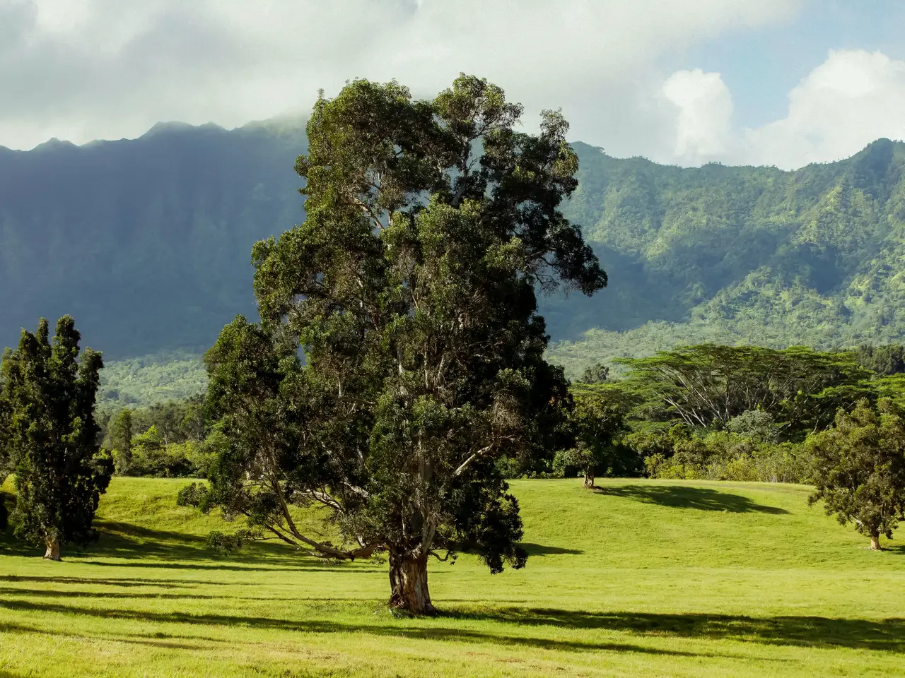 At the base of Mount Namahana, Halaulani spans more than sixty-three acres of rolling pastures, forest edge, and stream valley on Kaua‘i’s North Shore. Accessed by a private truss bridge, the property unfolds across open meadows, ridgelines, and valleys bordered by thousands of feet of deep-flowing, swimmable stream. The land features broad pastures, a mature eucalyptus grove, and varied riding terrain with panoramic mountain views. A historic stone dam and established water features highlight the land’s natural character and scale. Halaulani offers a rare combination of size, beauty, and seclusion in one of the North Shore’s most scenic settings. It is a landscape shaped by water, land, light and sky; quiet, natural, and enduring.