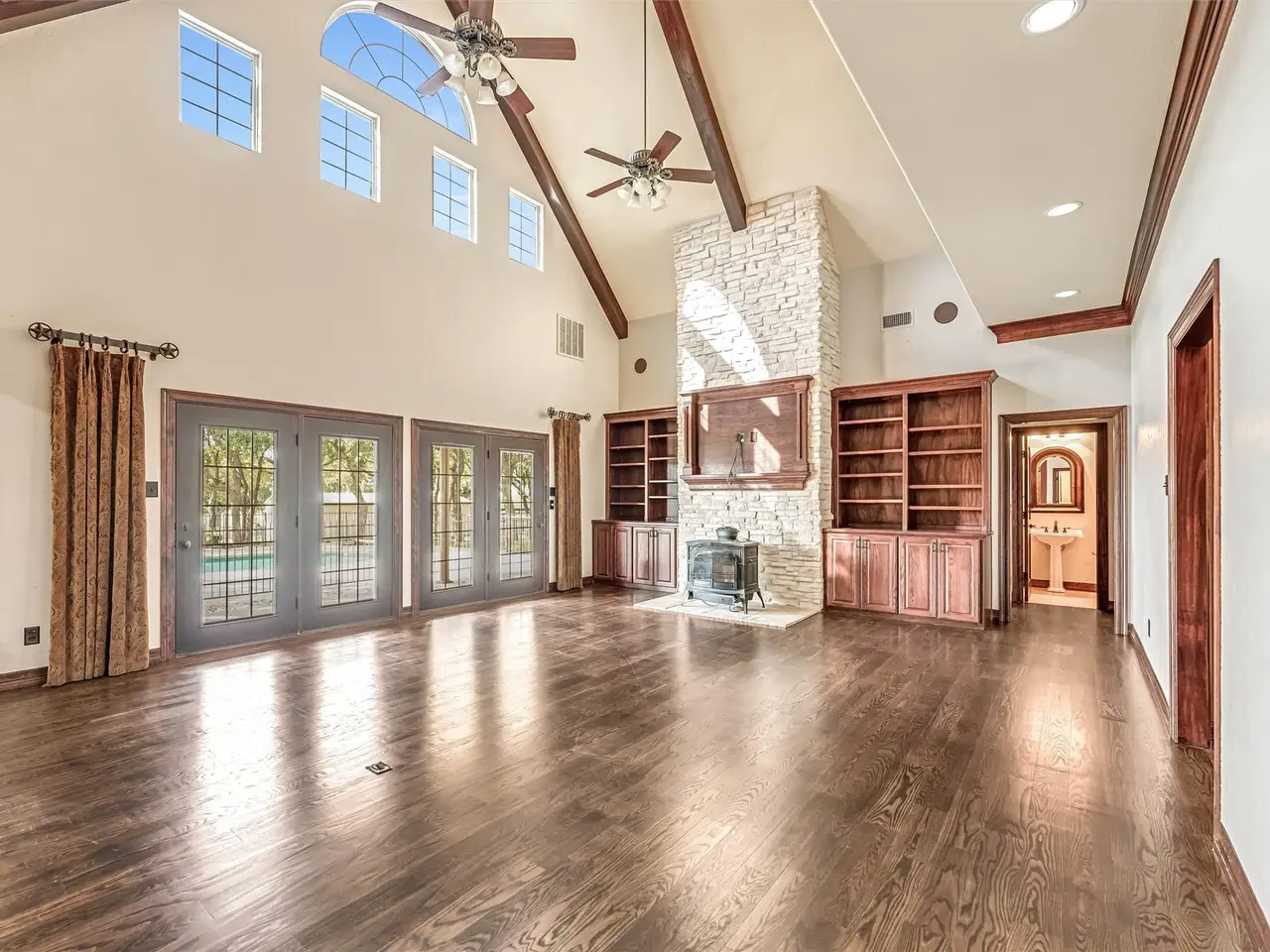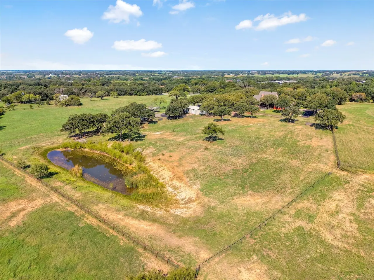 This exceptional Weatherford estate combines elegance, function, and equestrian living - all just 29 miles from Dickies Arena with easy access to I-20. The 18.65 acres are fully fenced with an automatic gate, horse turnouts, and a hay field that produced 54 bales on the second cutting this year. The home offers 3,600 sq. ft. with soaring ceilings and beautifully defined rooms. The chef’s kitchen features top-end appliances and connects to a formal dining room that’s ideal for holiday gatherings. The primary suite offers a spa-inspired steam shower, while three additional bedrooms provide plenty of space for family or guests. Outdoors, the amenities are designed with both comfort and utility in mind. An insulated horse barn includes three stalls, a concrete footer wash rack with hot and cold water, and automatic roll-up doors. The backyard oasis features an in-ground pool with diving board and hot tub. For added convenience, there are concrete dog kennels, a blacktop circle driveway, and a three-car garage with bonus room and half bath above. An insulated metal shop with its own efficiency apartment adds valuable versatility. Bring your horses, bring the family, and simply unpack. This estate is turn-key and ready for you to enjoy in time for the holidays.