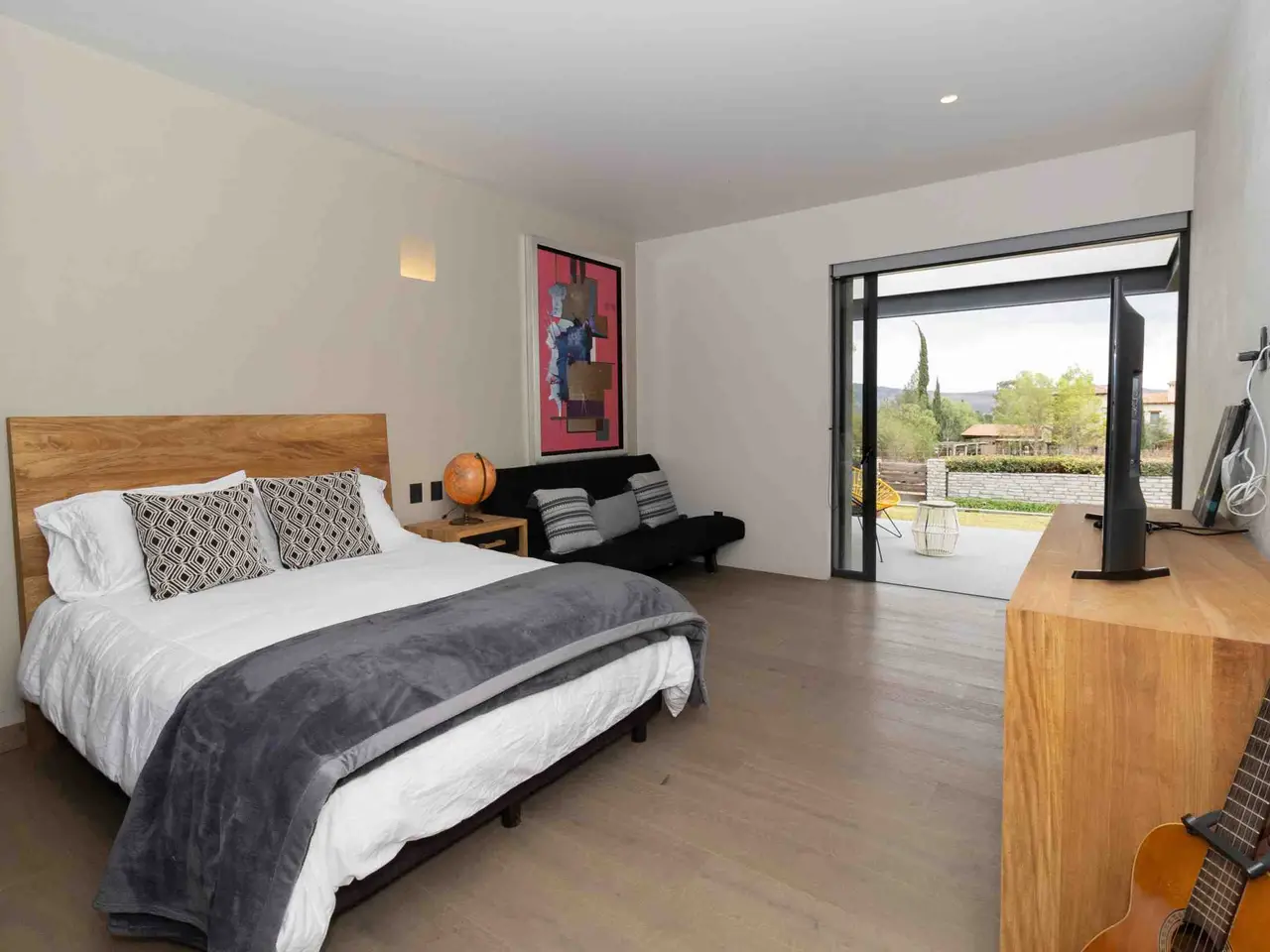 Welcome to Refined Living at Viñedo Santísima Trinidad Discover a world of sophistication and tranquility in this exceptional home, thoughtfully crafted for wine aficionados, polo enthusiasts, and anyone seeking the allure of luxurious country living. Situated within the exclusive community of Viñedo Santísima Trinidad, this stunning single-story residence boasts captivating views of your private vineyard, fragrant lavender fields, and picturesque olive groves. Property Features: Spacious Comfort: Four beautifully appointed bedrooms, each featuring its own en-suite bathroom, ensure the utmost comfort and privacy for you and your guests. Elegant Living Spaces: The open-plan living and dining areas flow effortlessly onto an expansive terrace, perfect for savoring seamless indoor-outdoor living. Entertain or unwind while taking in the breathtaking surroundings. Outdoor Paradise: Relax in your private pool, surrounded by serene landscaping, and enjoy the ultimate escape in your personal oasis. Exclusive Community Amenities: Life at Viñedo Santísima Trinidad offers far more than a home: Indulge in gourmet cuisine at the charming lakeside restaurant. Rejuvenate at the on-site spa, offering peace and serenity. Welcome visitors with the convenience of a boutique hotel just steps away. A Lifestyle Like No Other: More than just a residence, this property places you in a vibrant community where luxury living meets cultural and recreational opportunities. From wine-tasting experiences to sports and cultural events, every day offers something extraordinary. Your Sanctuary Awaits Ready to experience the magic of Viñedo Santísima Trinidad? Schedule your private tour today and step into a home where timeless elegance and modern comfort come together to create the ultimate retreat.