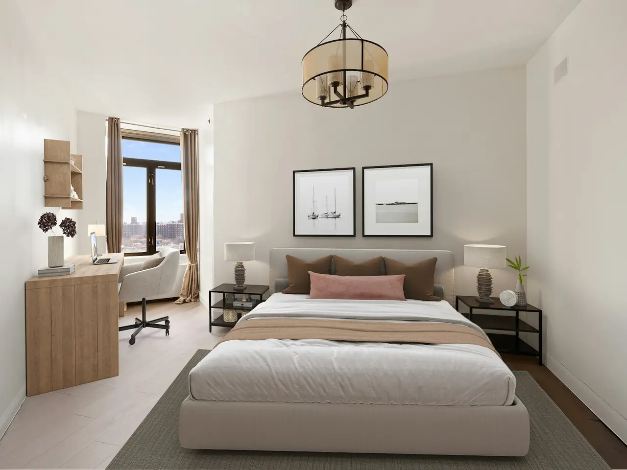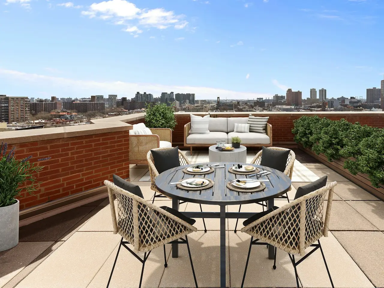 Welcome to this exciting penthouse at The Lenox, one of Harlem's original luxury condominiums. This spacious 2 bedroom (plus bonus room!) in move-in condition is highlighted by an incredible 546sf private roof deck. On the main floor, you'll find a well-appointed kitchen open to the living room creating a loft-like ambiance, perfect for modern living. 10" ceilings enhance the sunny space, which is complemented by a cozy wood-burning fireplace and eastern city views. Descend a proper staircase to the lower level, which has two east-facing, king-sized bedrooms, plus a versatile and sizable bonus area, offering flexibility for use as an office, guest room, or home gym. The primary bedroom has a huge walk-in closet and an en-suite bathroom. The second bedroom is spacious with East City views. The top level has your private outdoor space, a true oasis perfect for entertaining or simply enjoying stunning skyline views. The apartment also features a full-size washer and dryer, PTAC heat and air-conditioning units, new flooring throughout and tremendous closet space (8 closets in total, plus storage under the stairs). Residents of 380 Lenox enjoy a range of amenities, including a 24-hour doorman, live-in superintendent, fitness center, common roof deck, and parking garage. The location can't be beat, with easy access to subways, Whole Foods, Trader Joe's and all the incredible restaurants and shops along historic Lenox Avenue. Plus, enjoy the benefit of incredibly low taxes, thanks to a 25-year 421a tax abatement that runs through 2033. Don't miss the chance to call this exceptional apartment your new home!