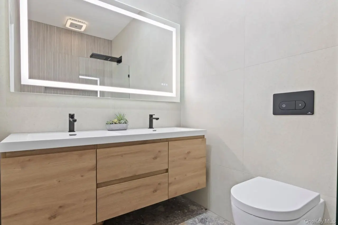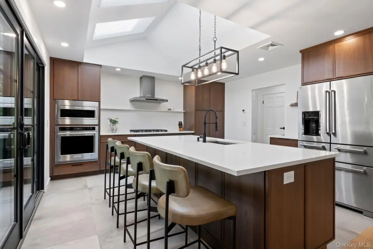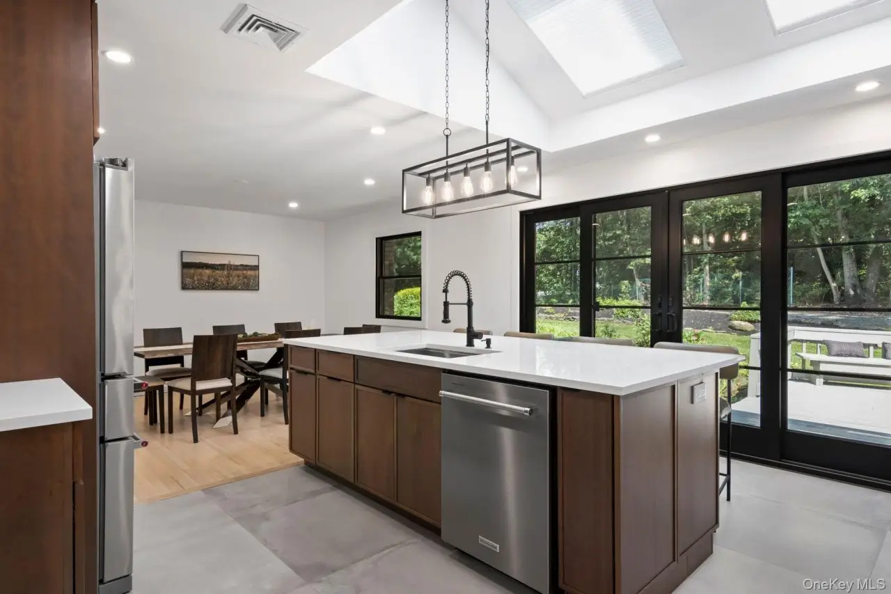 Newly renovated Modern ranch sitting on 1.2 acres offers a perfect blend of privacy and contemporary charm. Sweeping driveway lined with mature trees and lush greenery gradually reveals the home. Radiant heated polished concrete finish-flooring throughout, High quality elements chosen for its beauty, functionality. Executive Gourmet kitchen is a chef's dream, complete with flat front custom cabinetry, stainless steel appliances, and a large center island that's perfect for both meal prep and casual dining. Large windows and four sliding glass doors blur the line between indoor and outdoor living, opening onto a grand private backyard decks and patio. The spacious family living area, with dramatic ceiling height and 3 skylights, offers a perfect spot to unwind, while French sliding glass doors lead to a large patio-ideal for entertaining or enjoying quiet moments overlooking the sprawling, manicured grounds surrounded by specimen trees and shrubs. Spa like Bathrooms, designed to evoke a sense of calm and luxury, these bathrooms feature floor-to-ceiling custom porcelain tiles, textured stone accents add depth and a natural touch. The walk-in showers, complete with horizontal linear drains and no doors, offer an open, airy feel. Built-in shelving provide convenient storage, keeping your space organized and clutter-free peaceful retreat from the stresses of daily life. Adding to the modern aesthetic are wall-hung toilets with sleek wall-mounted push-button flush systems. Fog less LED mirrors with built in Bluetooth above the walnut vanities ensure a clear reflection at all times. The lower level boasts 8 Ft ceilings and beautifully finished ample living space, ideal for an entertainment media area, large gym and a private guest suite with a modern bathroom that exudes spa-like tranquility with sleek fixtures including a heated towel warmer and a luxurious Jacuzzi tub, its the perfect place to unwind after a workout with separate service entrance. Central Vac System throughout. Oasis outdoor living and future expansion potential. Come home to one level + of all new renovated Modern elegance in a secluded setting of Luxury, privacy. Close to beaches, transportation, parks, highways, village, schools, restaurants and unlimited shopping location. You have arrived in unparalleled Luxury, location, design and space here. Appearance is Diamond at this residence.