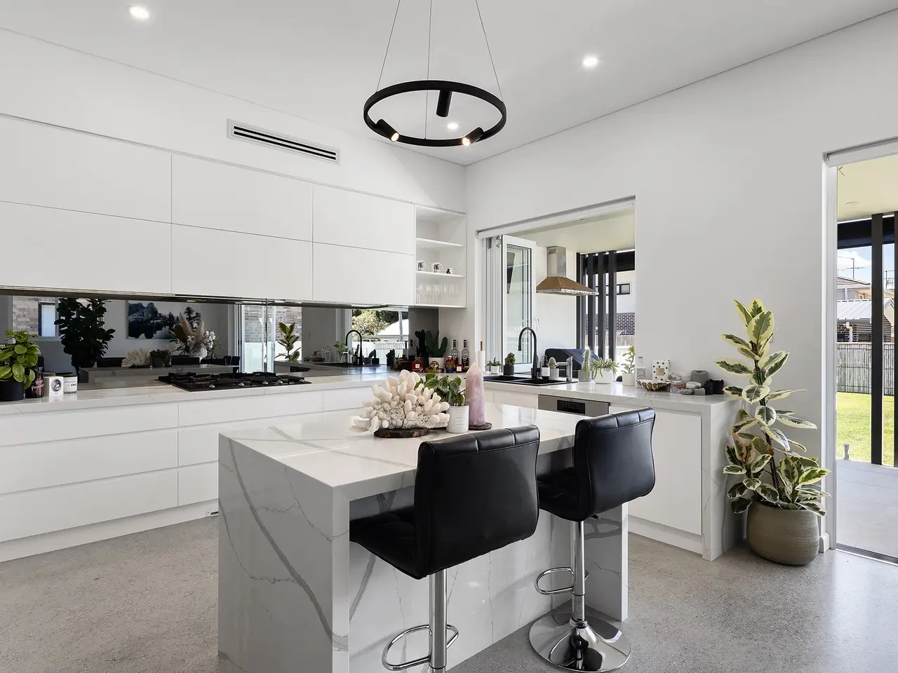 • Central island kitchen with servery window