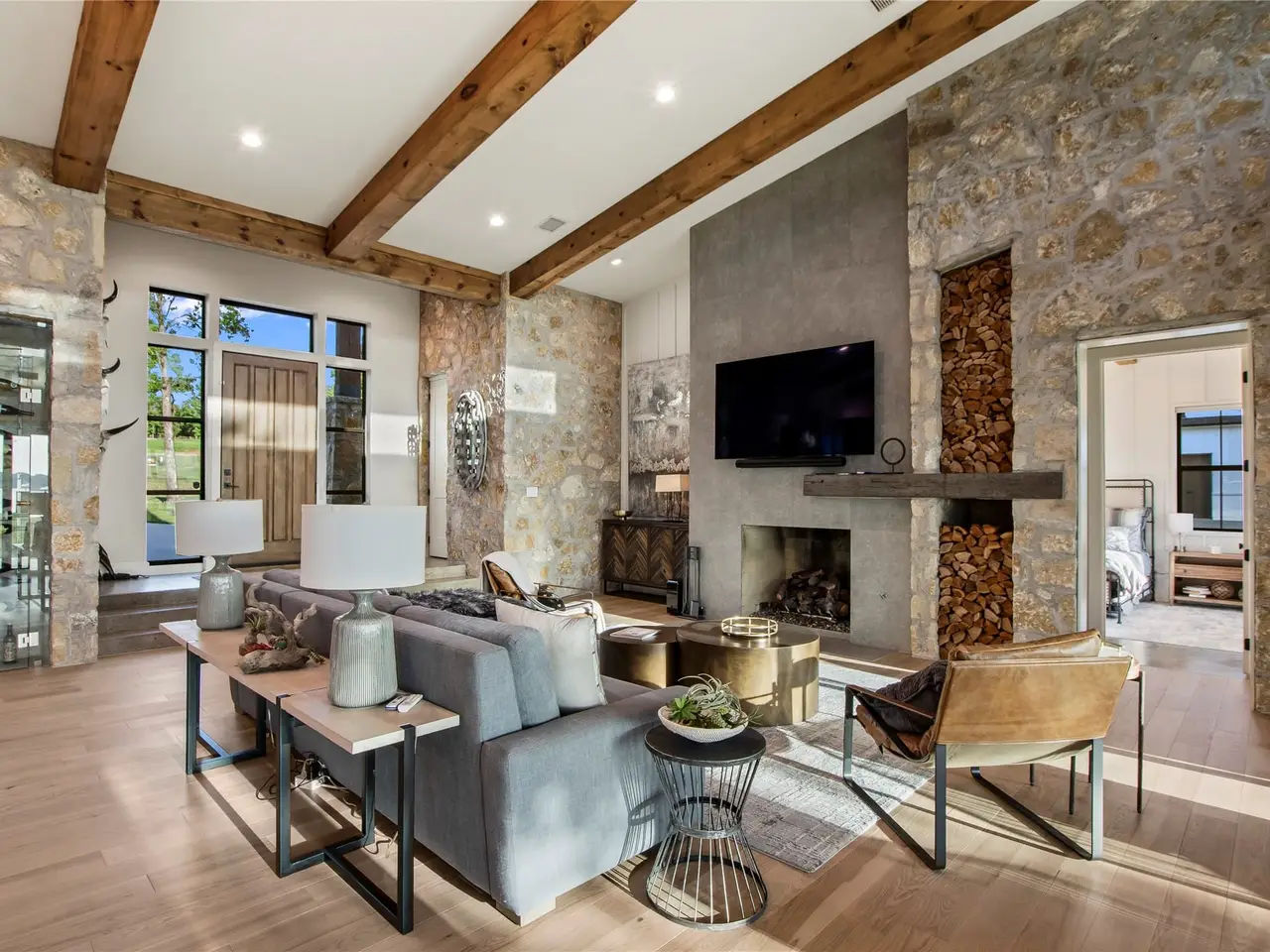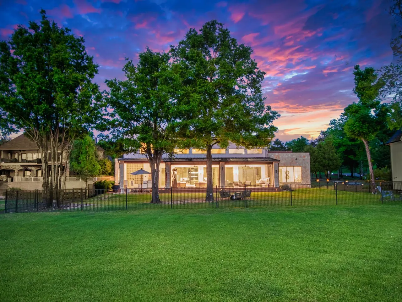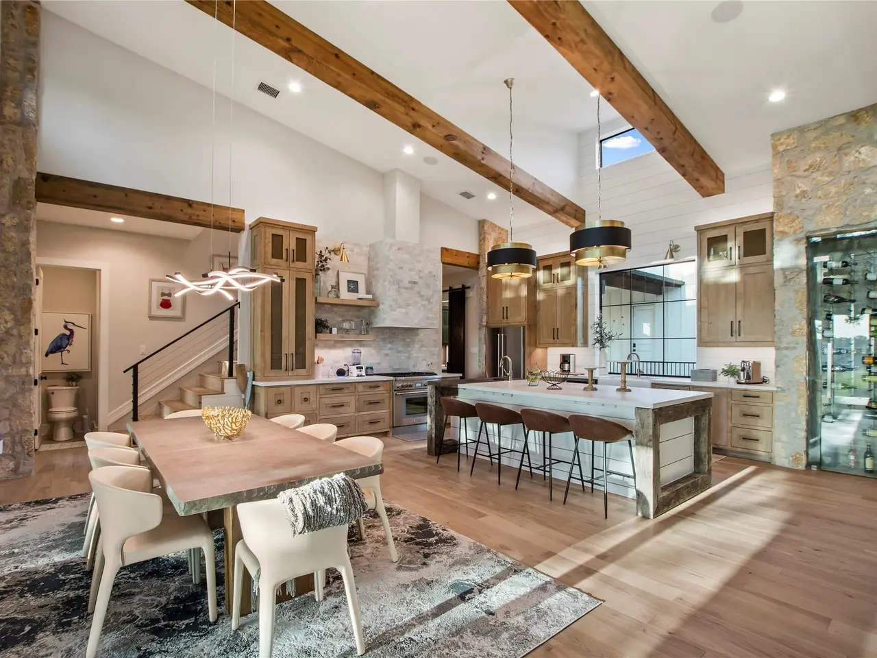 Welcome to your dream lakefront escape in The Bluffs, a prestigious gated community on Cedar Creek Lake. Situated on a beautifully landscaped acre lot, this modern retreat blends natural materials like stone, wood, and iron to create an inviting, luxurious atmosphere. Inside, the home is bathed in natural light thanks to soaring wood beamed ceilings and a dramatic wall of windows framing picturesque lake views. The chefs kitchen is a true showstopper, featuring a professional Thermador propane gas range, island seating, farmhouse sink, built-in ice maker, and a striking glass door wine cellar, perfect for entertaining. Genuine hardwood floors flow throughout, leading to a first floor lakeside primary suite with wood beam ceilings and spa like ensuite bath offering dual vanities, a walk in shower, and a relaxing soaker tub. Three more additional guest bedrooms, two with built in bunk beds for added flexibility. Outdoor living is just as impressive, with multiple entertainment areas designed for true lake life. A large covered composite deck with automatic screens provides the ideal setting to enjoy the view, mosquito free. The wrought iron fenced yard is perfect for kids and pets, while the private boathouse includes automatic lifts and covers for both a boat and personal watercraft, making lake access effortless. Residents of The Bluffs enjoy a waterside clubhouse, community firepit, and picnic areas. Located in a prime spot on the lake once home to a waterski school, this area is beloved for its smooth waters, fishing, and recreational fun. Sold furnished with a few exclusions. Watercraft available separately. Additional boat slip in community marina available for $55,000.00.