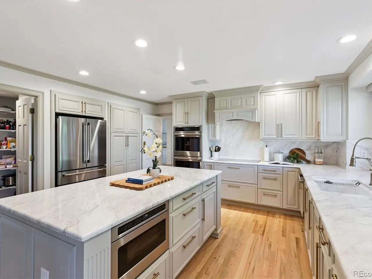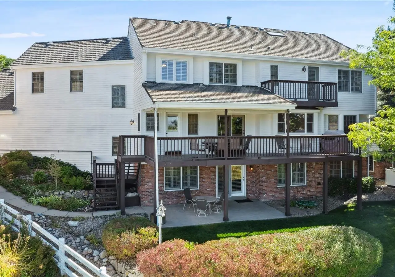 Executive Home in Homestead at Willows End. Nestled on a private circle backing to open space with sweeping Front Range views, this stately brick residence combines timeless architecture with modern luxury. A rare layout offers four bedrooms on the same floor, each with an en suite bath, plus a private fifth guest suite on the lower level. The expansive primary retreat includes a private deck, dual walk-in closets, and a luxurious five-piece bath. The newly remodeled 2025 gourmet kitchen features custom cabinetry, dolomite counters, a large island, walk-in pantry, and GE Café appliances, including an induction range, dual ovens, vent hood, under-counter microwave, and dishwasher. The breakfast area opens to a covered deck overlooking the professionally landscaped yard and open space. Plantation shutters and a whole-house surround sound system allow you to control light and sound throughout the home. Refinished hardwood floors connect the bright main level, which includes a private office, dining room, living room with tray ceiling and fireplace, and a sunken family room with built-in shelving and hearth. Two powder rooms, a large mudroom with a secondary front entry, and a second stairway leading to a bonus room—ideal for a studio, playroom, or secondary home office—add exceptional functionality. The finished walkout basement is designed for entertaining, complete with a wet bar, media center, built-in speakers, and space for billiards. A large fifth bedroom provides separation and privacy for guests, while additional unfinished areas offer space for a workshop, storage, and mechanical systems, including dual HVAC units, A/C, a whole-house generator, and a utility room. Residents enjoy priority membership applications to Homestead in the Willows amenities, including pools, tennis courts, community events, and direct trail access to 120 acres of South Suburban open space. Conveniently located minutes from DTC, Greenwood Village, and The Streets at South Glenn, and served by award-winning Cherry Creek Schools—Homestead Elementary, West Middle, and Cherry Creek High. A rare opportunity to own a refined retreat that perfectly blends elegance, lifestyle, and location.